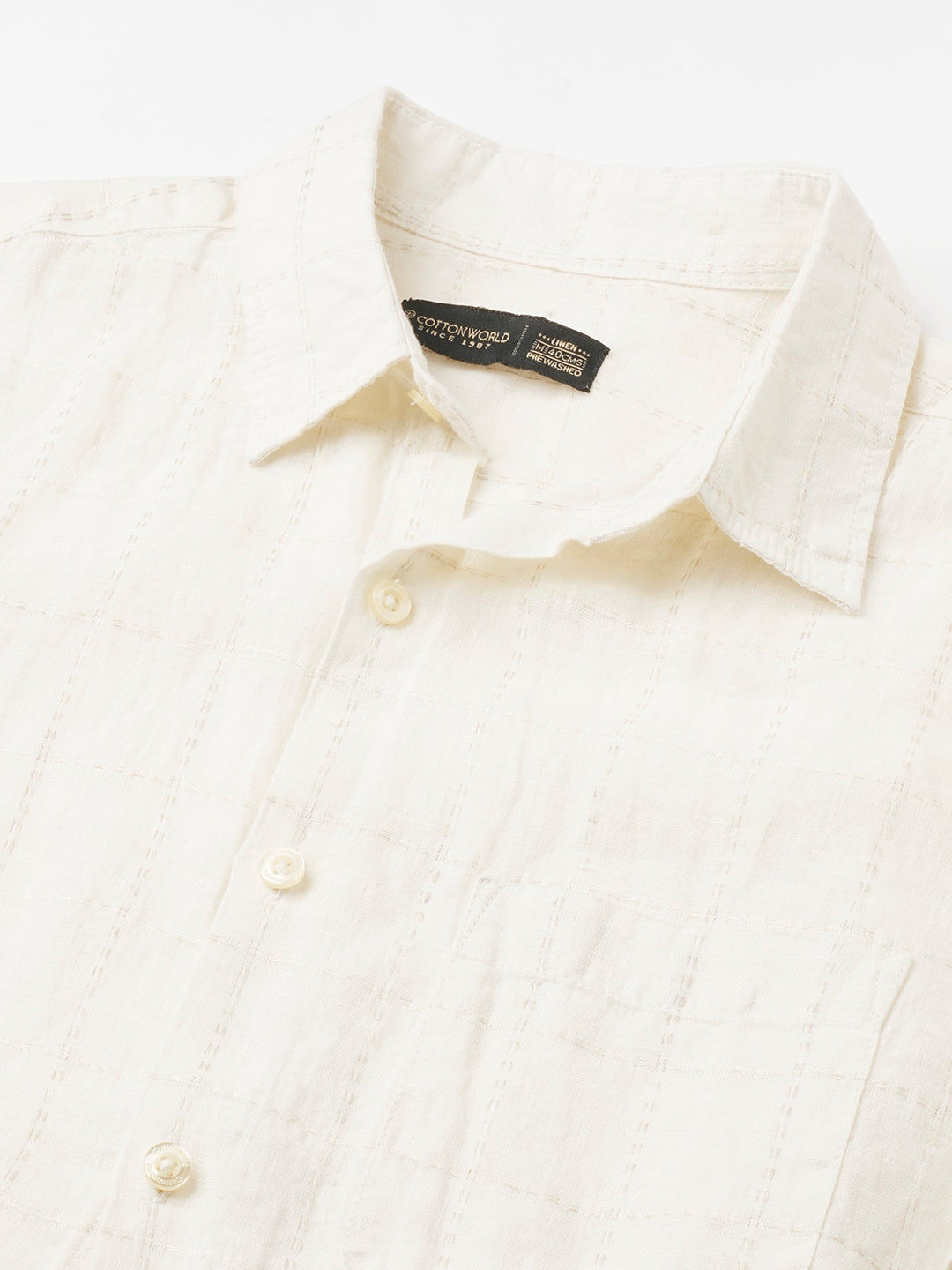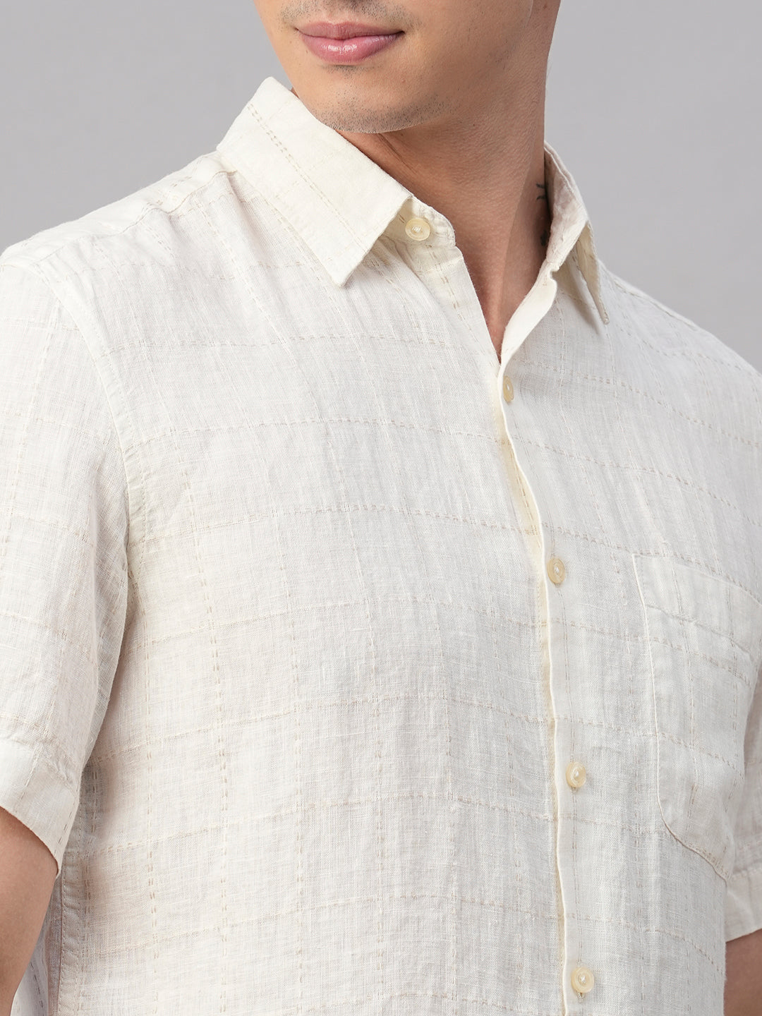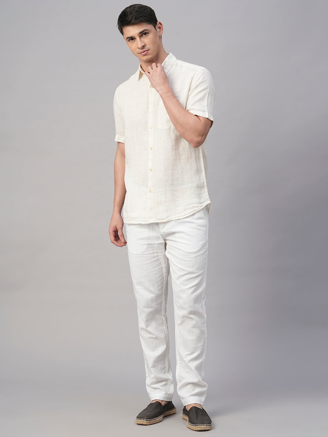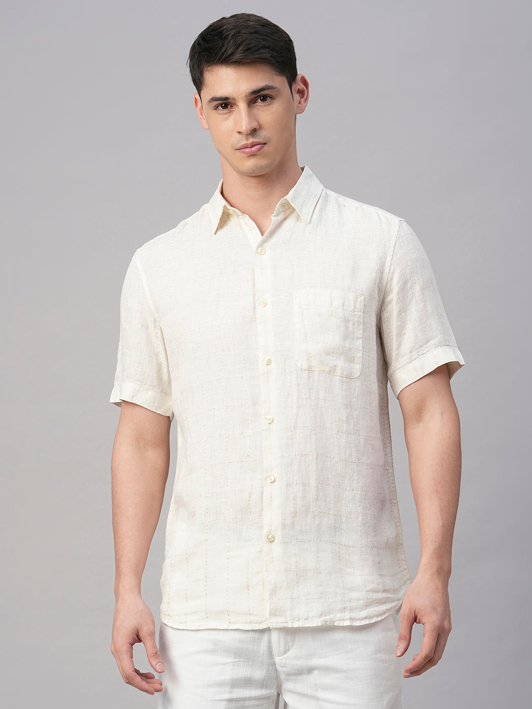 Men's Offwhite 100% Linen Regular Fit Shirt