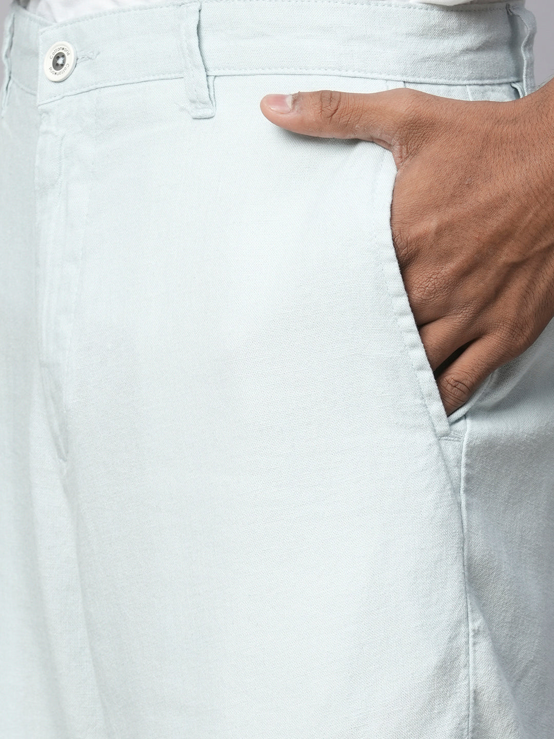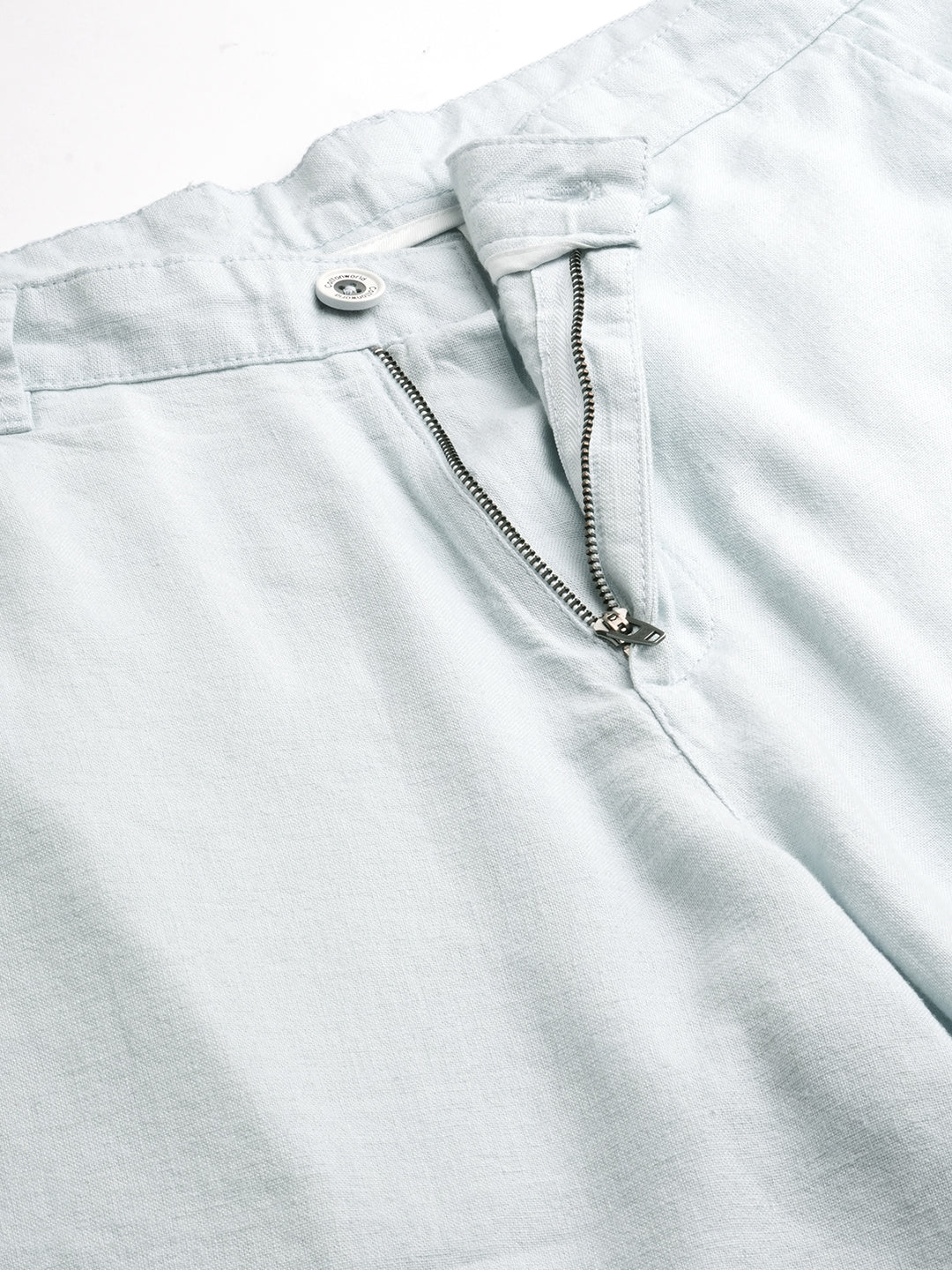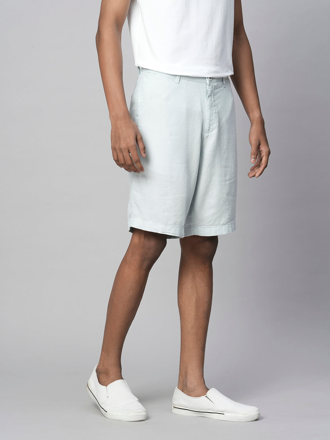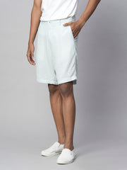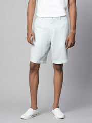 Men's Light Blue Linen Viscose Regular Fit Shorts
