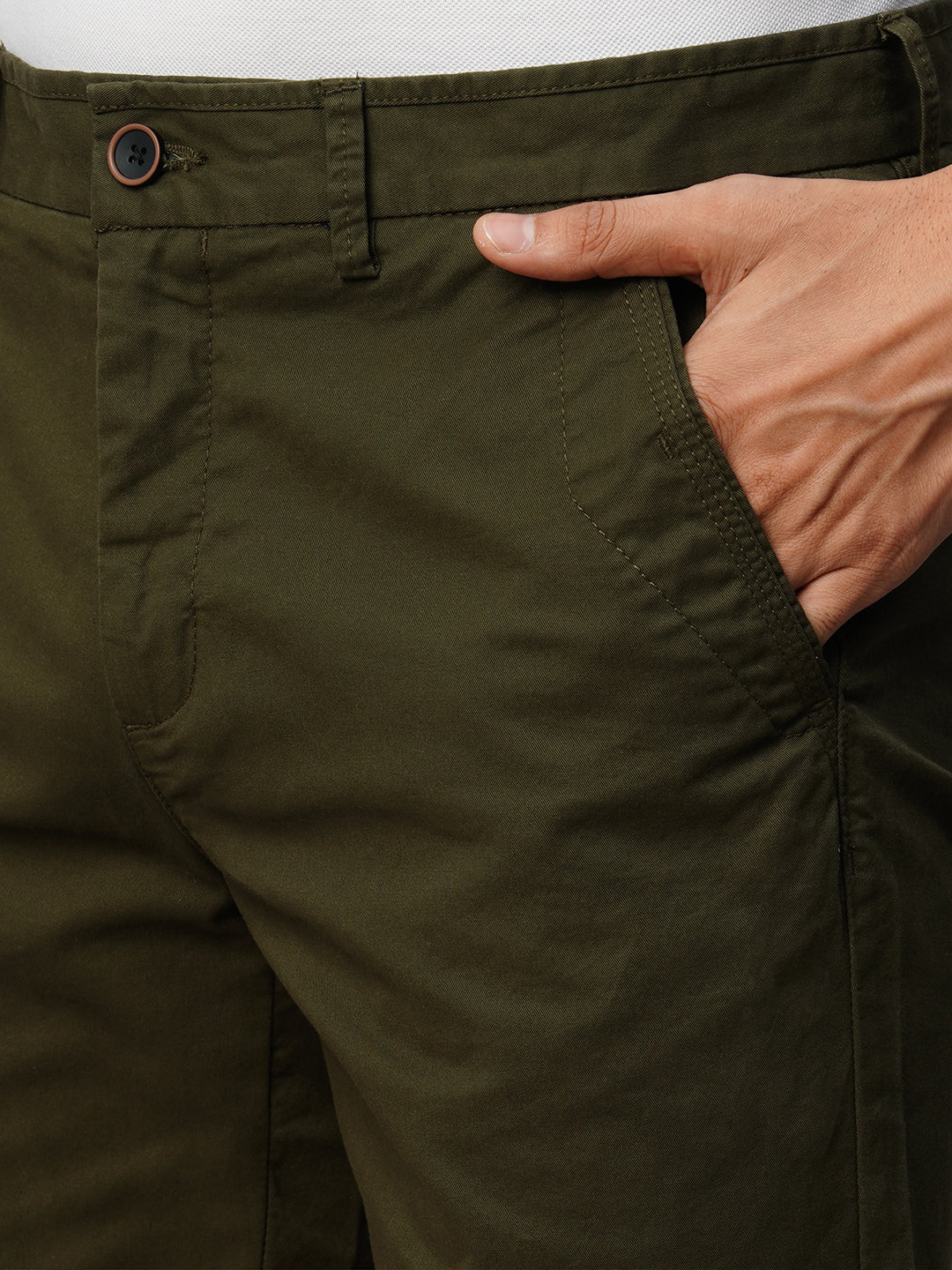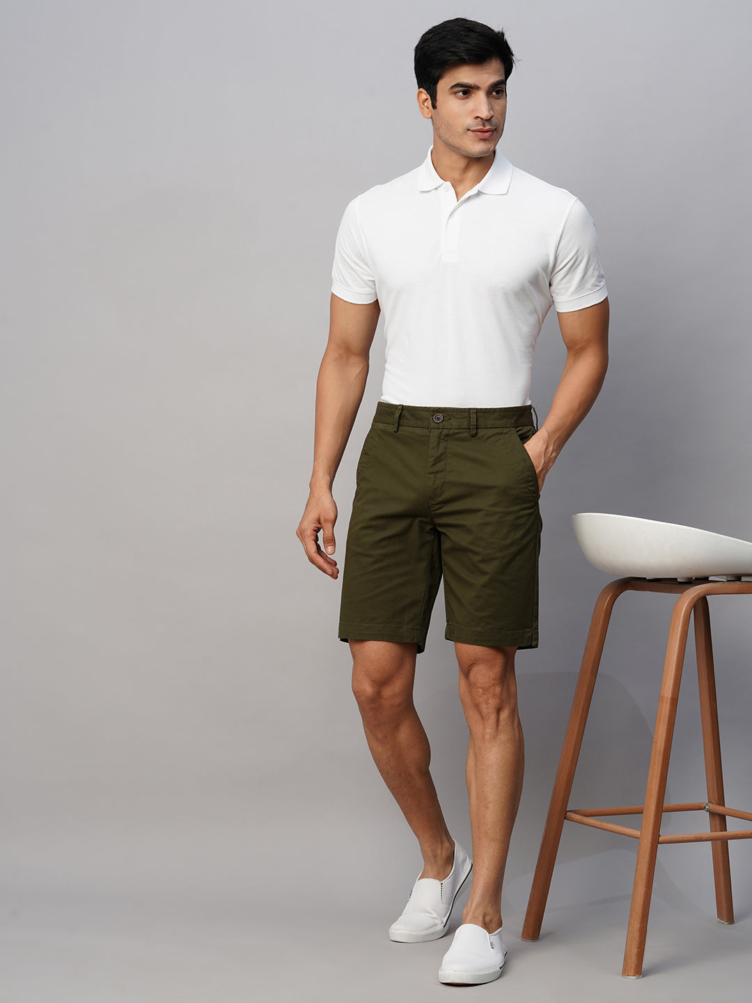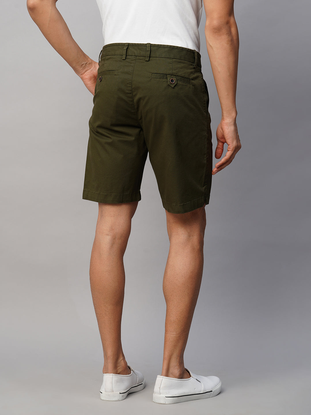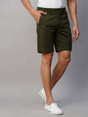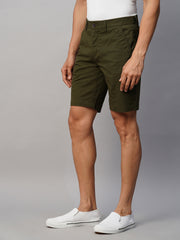 Men's Olive Cotton Lycra Regular Fit Shorts