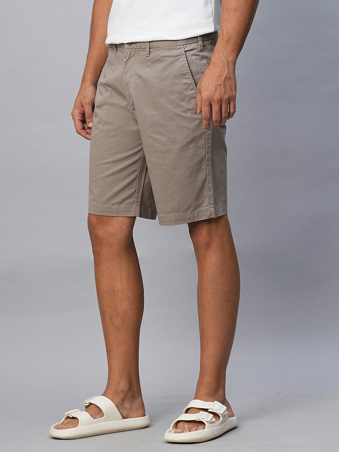 Men's Lt Brown Cotton Lycra Regular Fit Shorts
