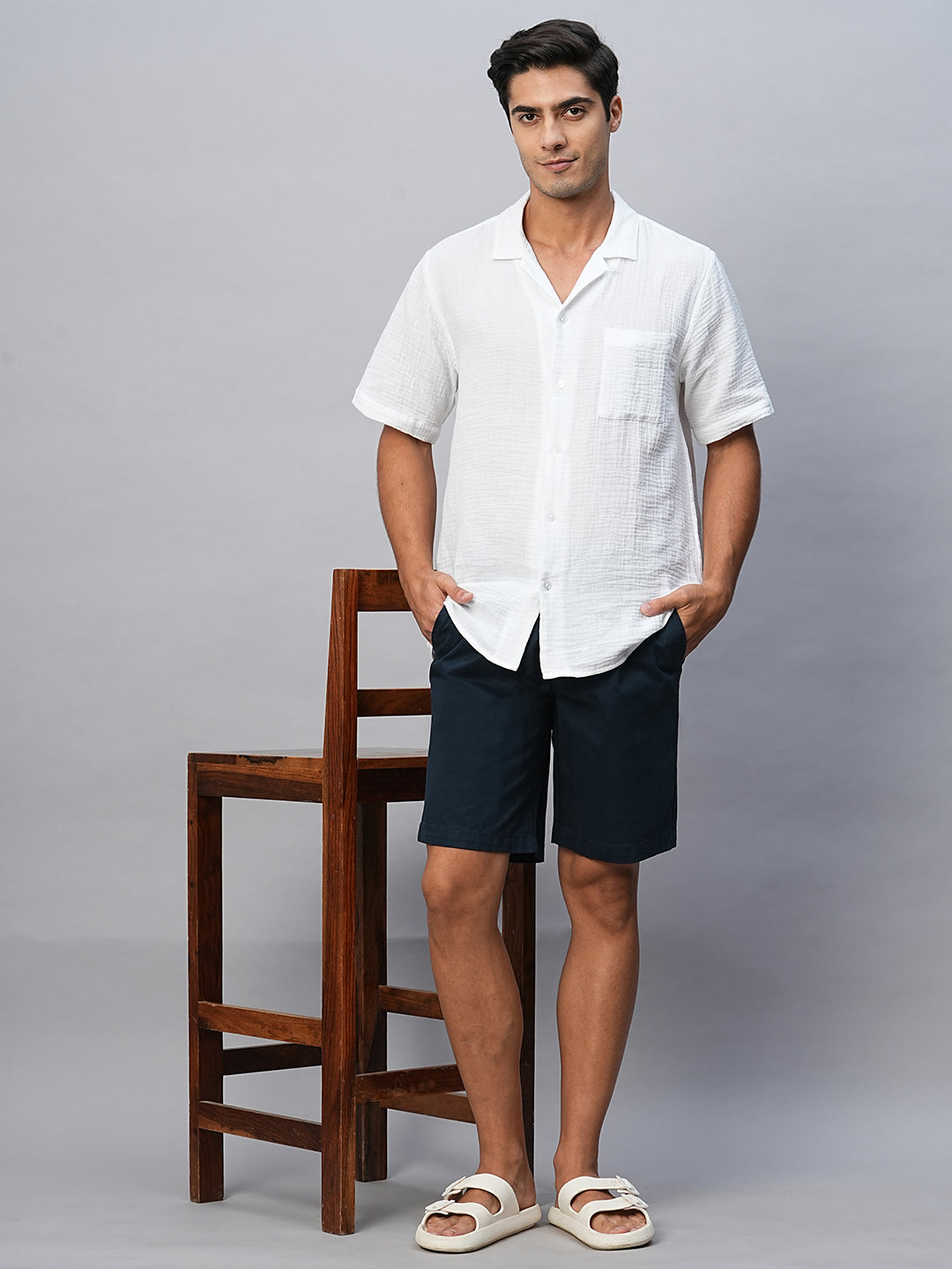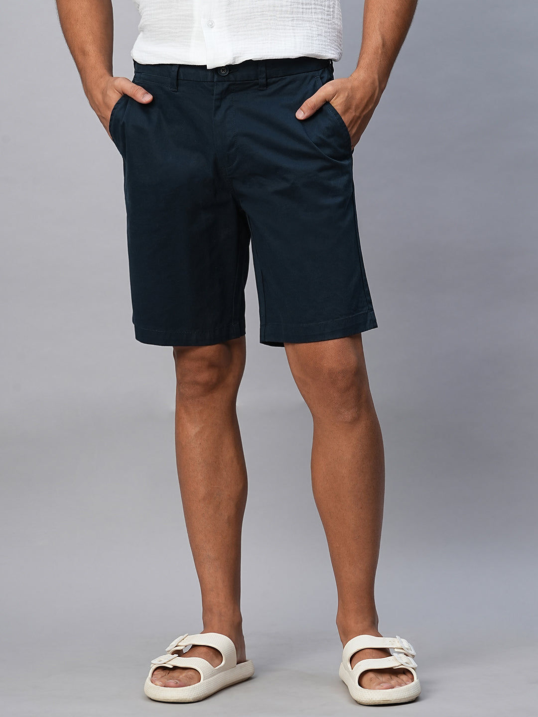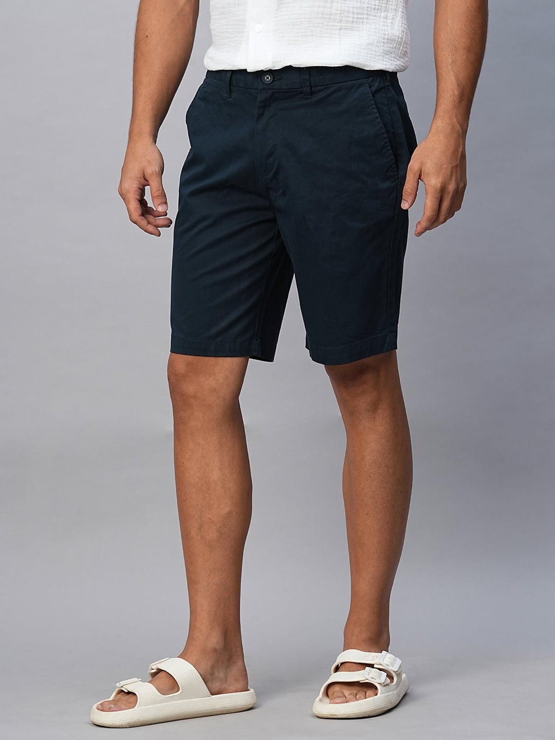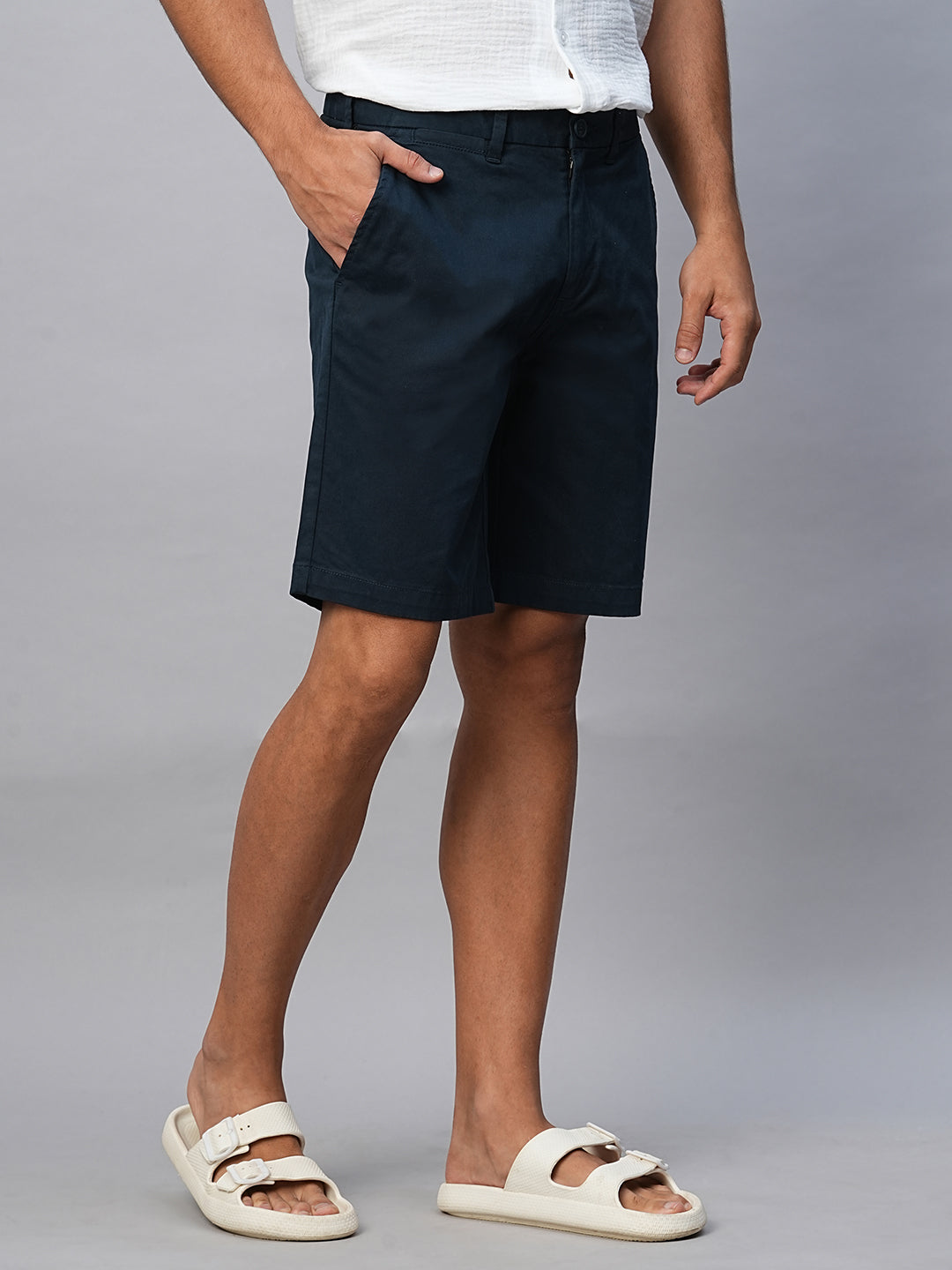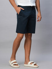 Men's Navy Cotton Lycra Regular Fit Shorts