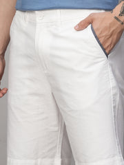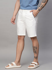 Men's White Cotton Regular Fit Shorts
