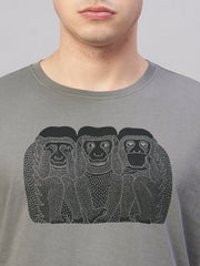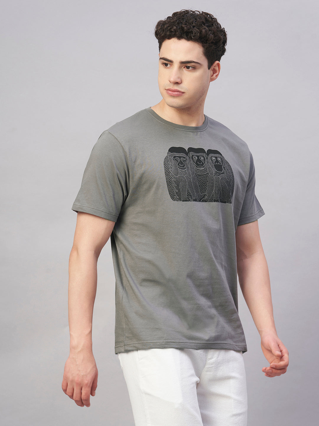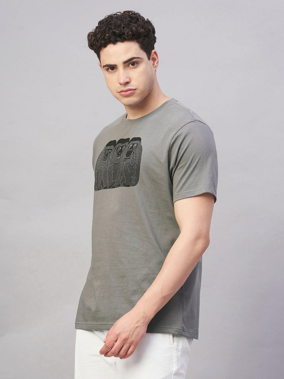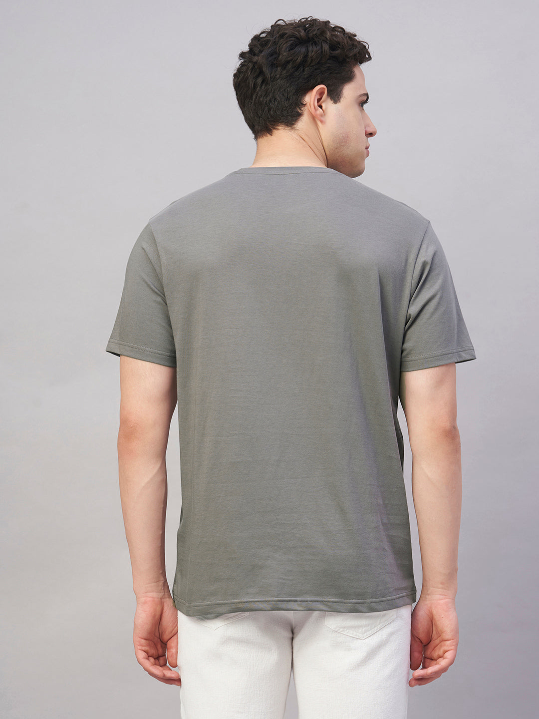 Men's Grey 100% Cotton Regular Fit Tshirt