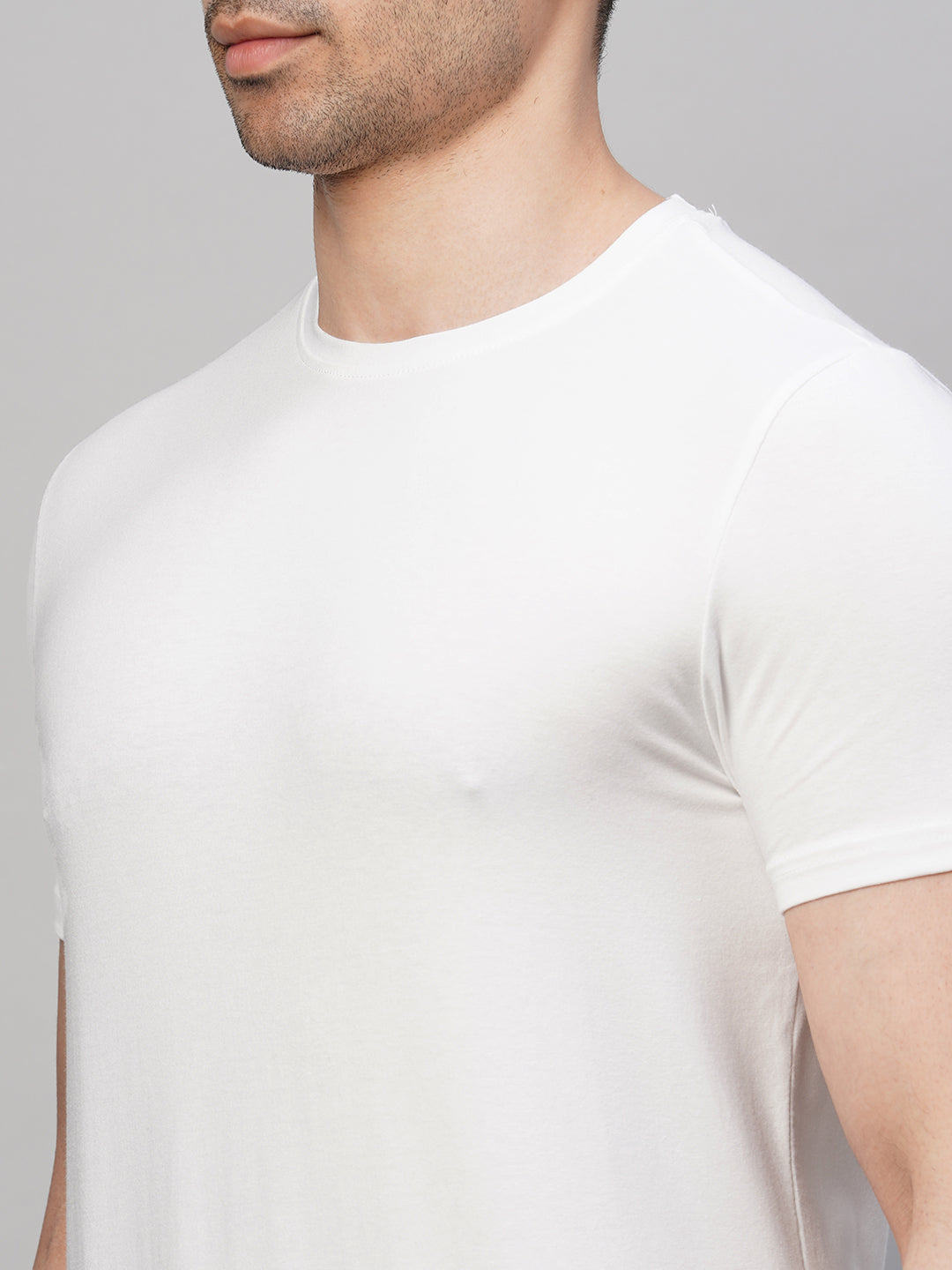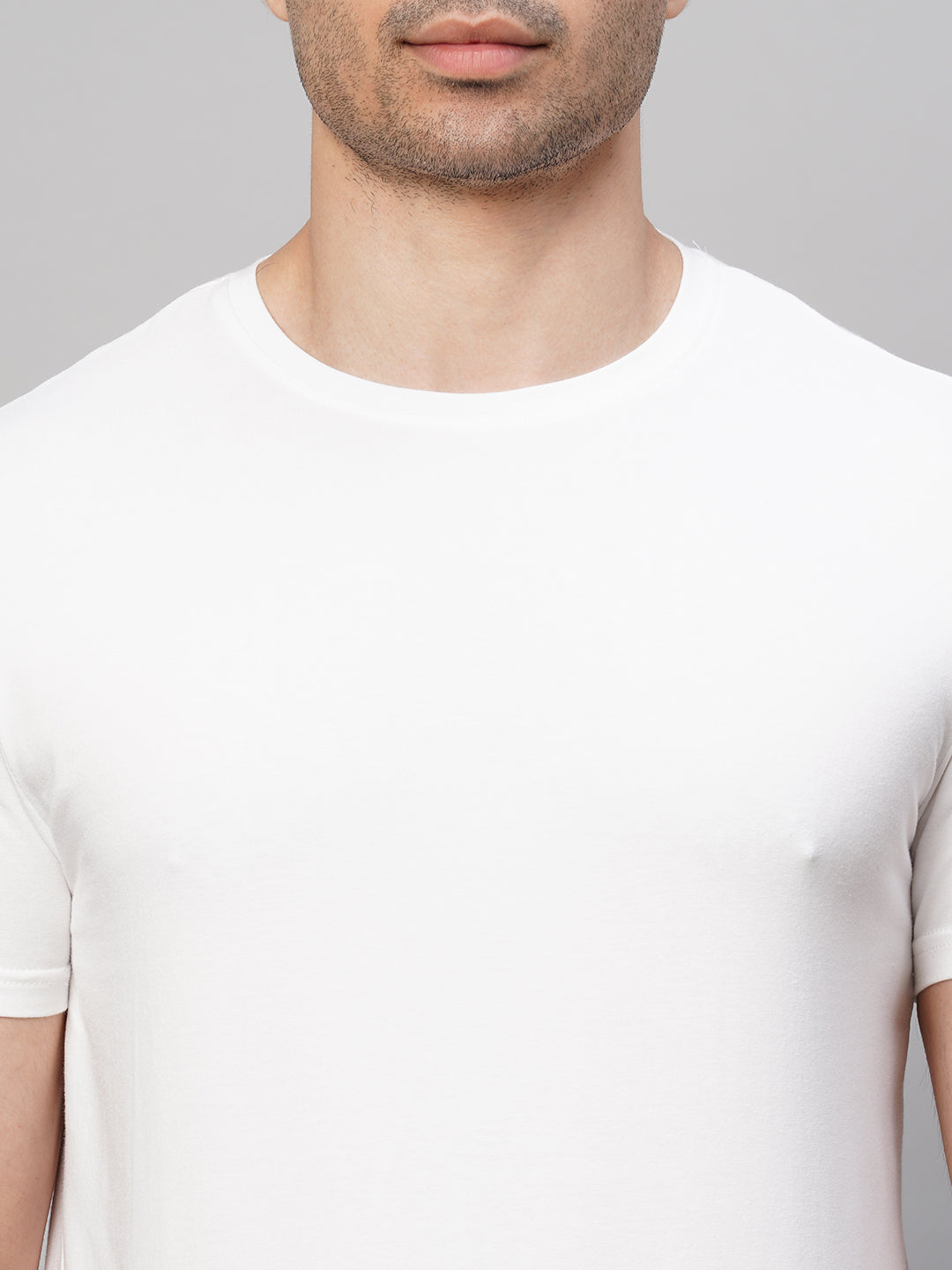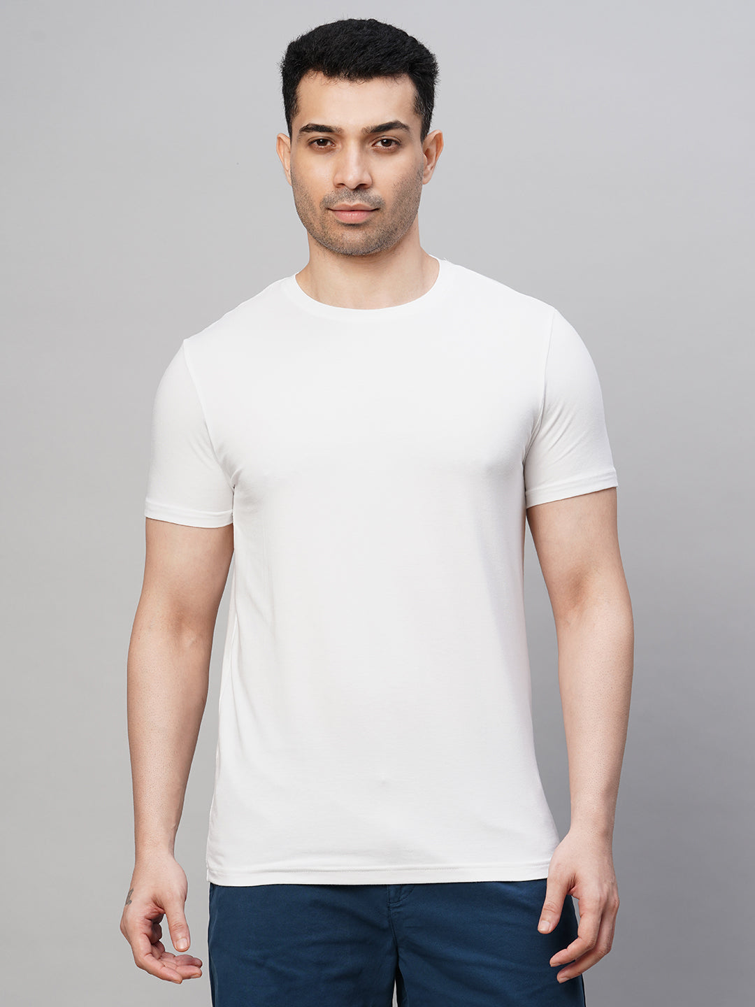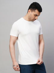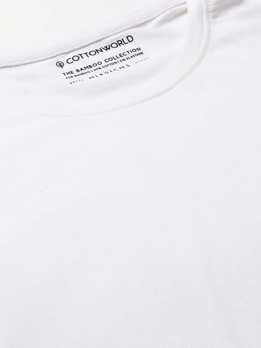 Men's White Cotton Bamboo Elastane Regular Fit Tshirt