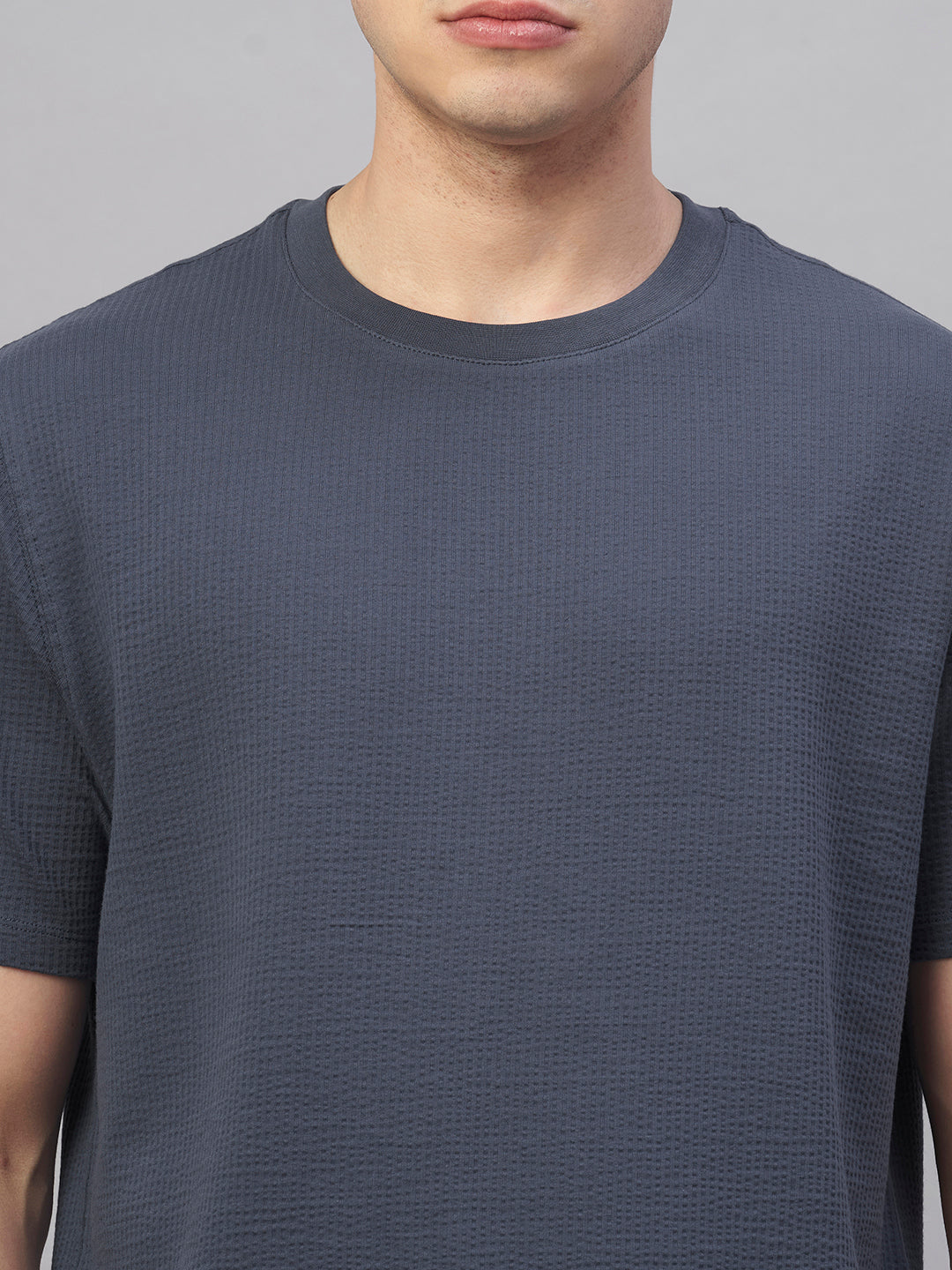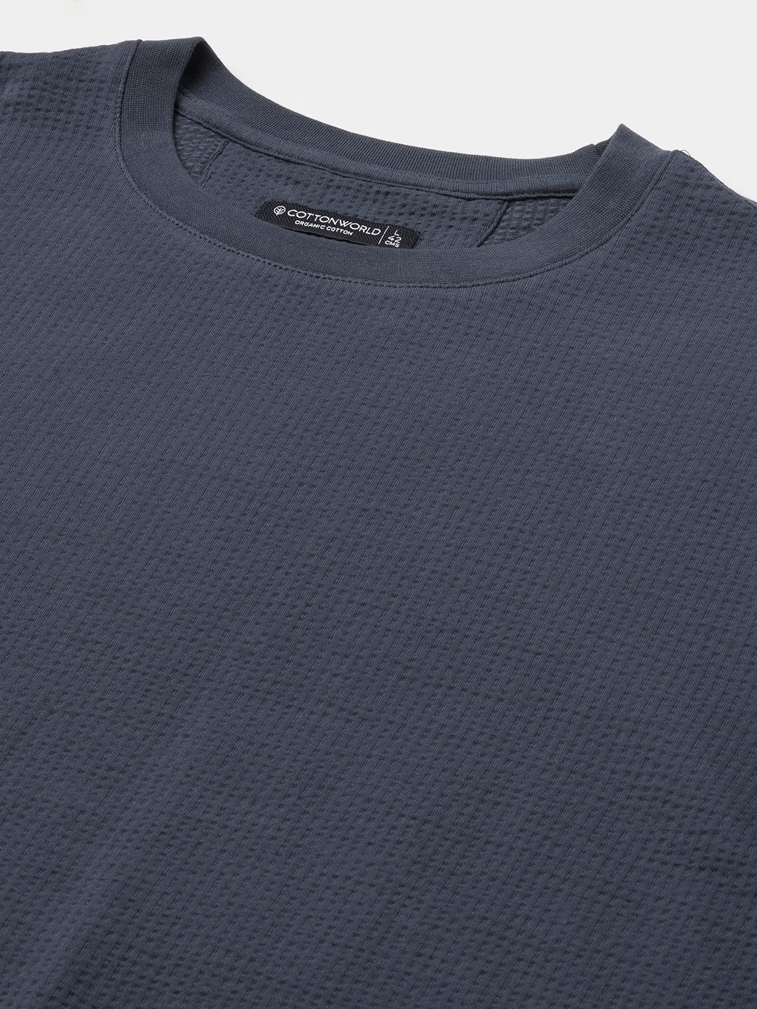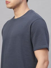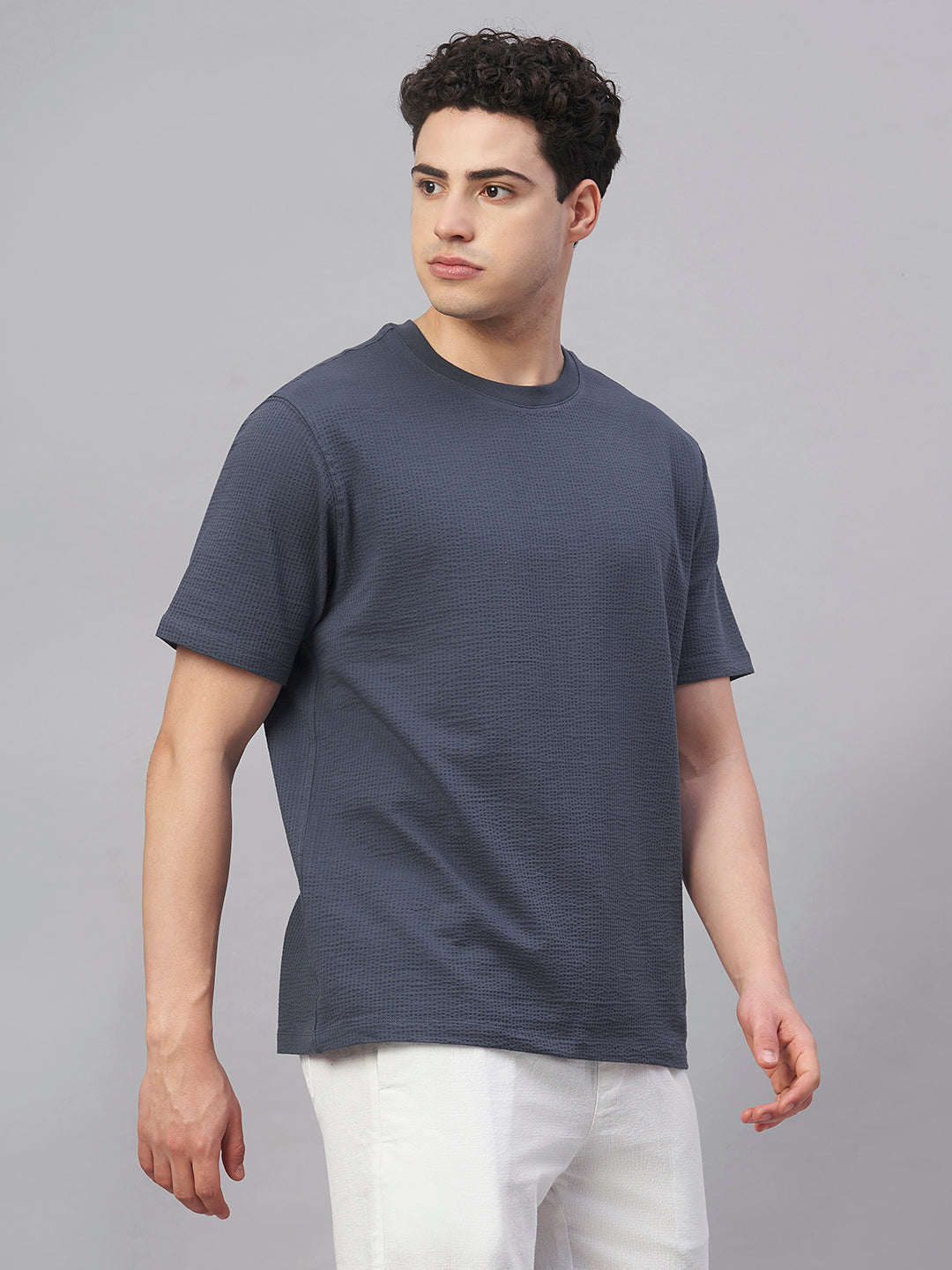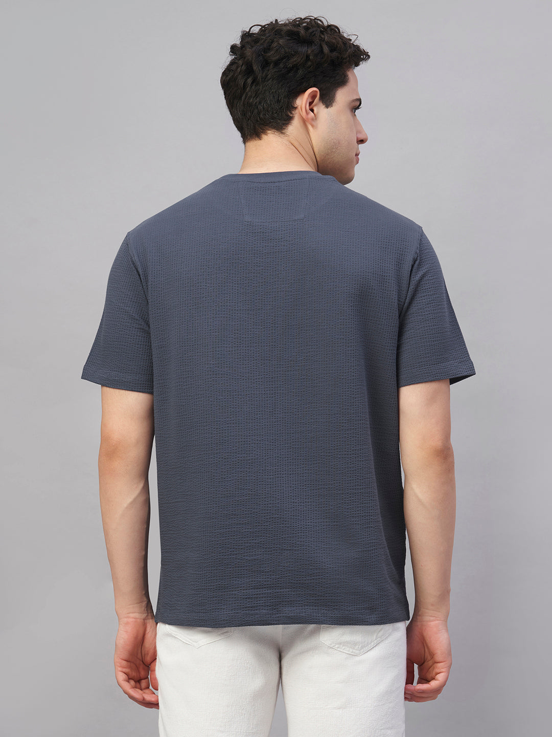 Men's Blue Cotton Elastane Regular Fit Tshirt