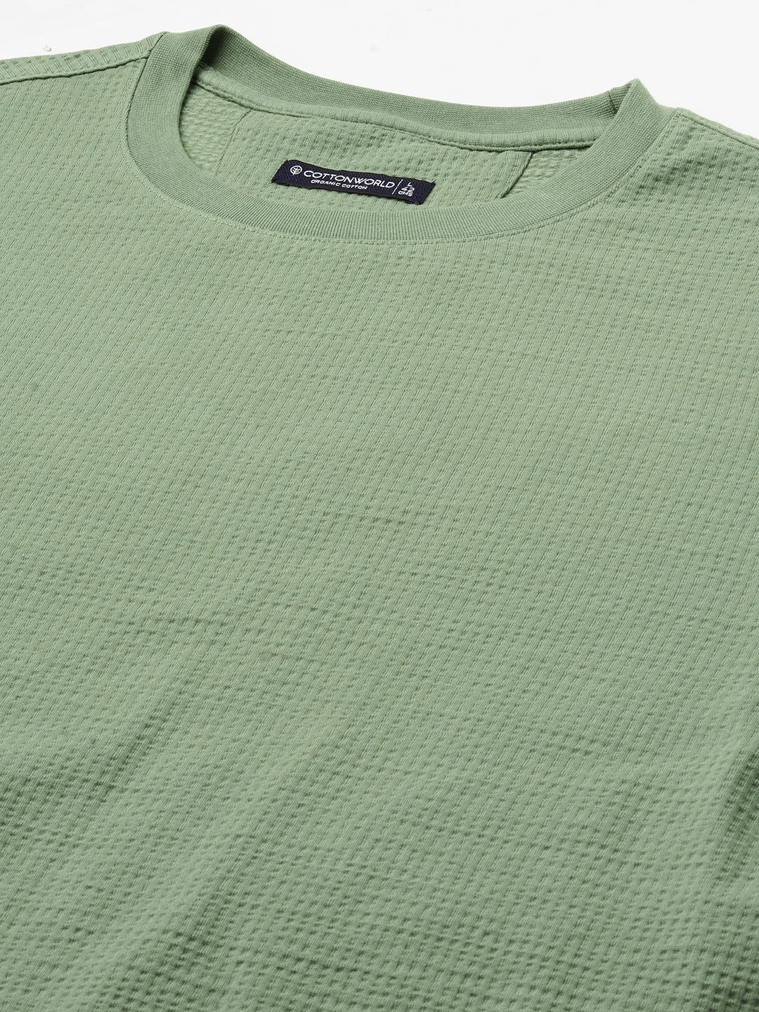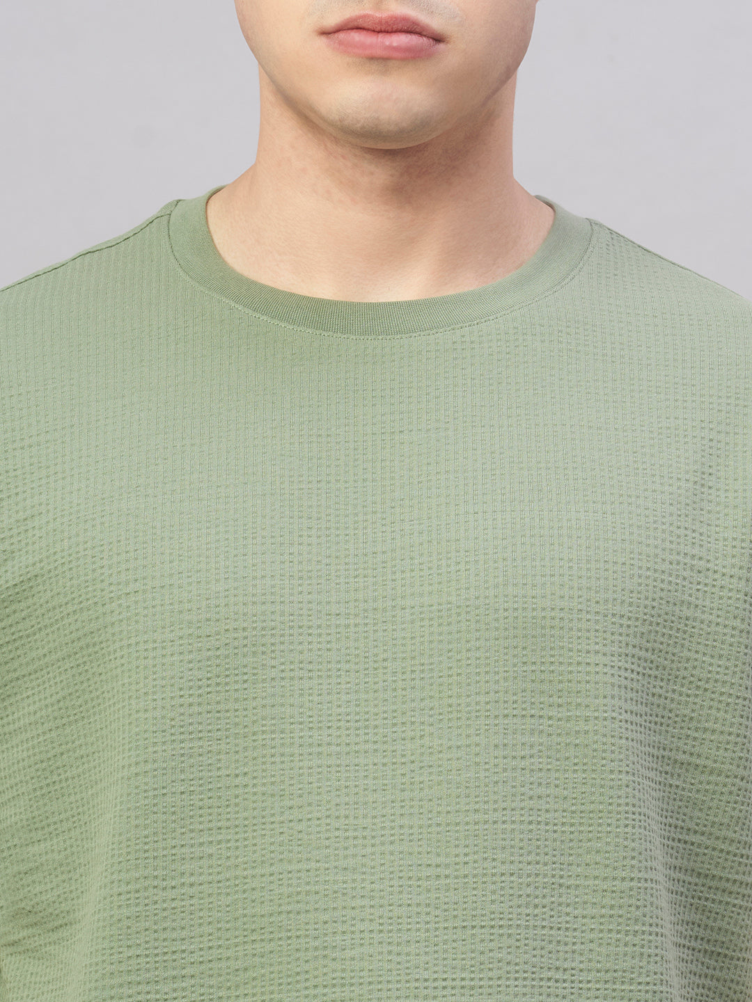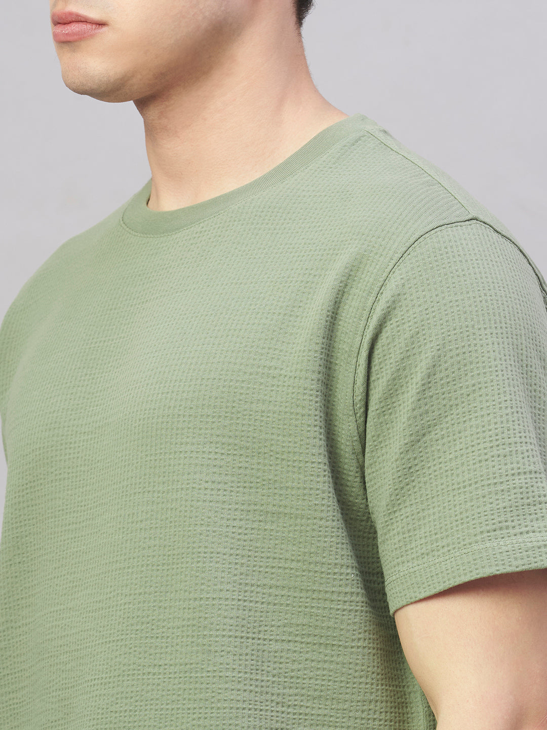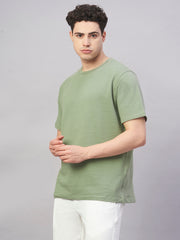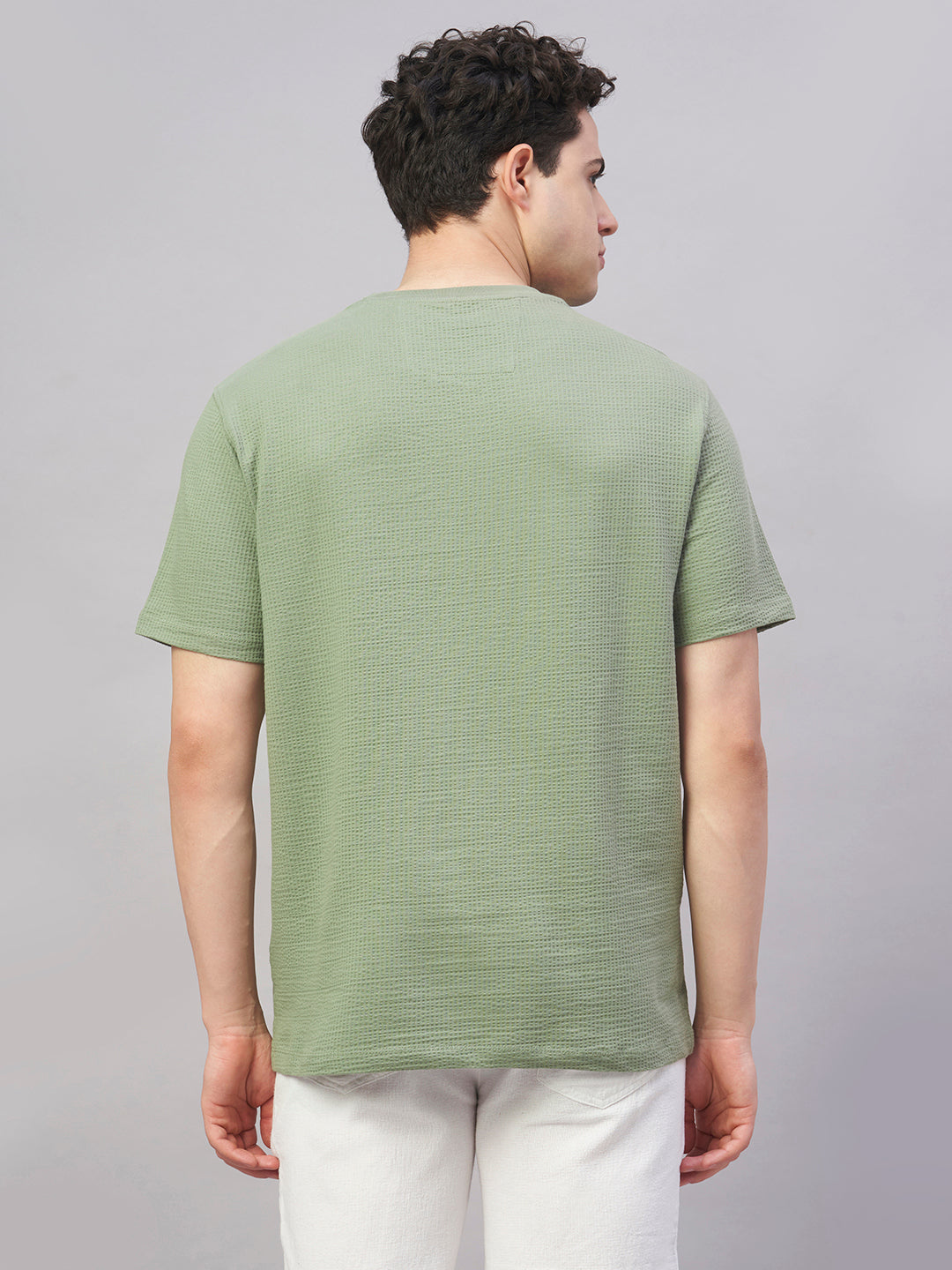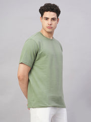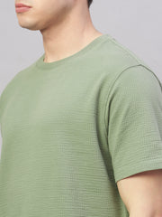 Men's Green Cotton Elastane Regular Fit Tshirt