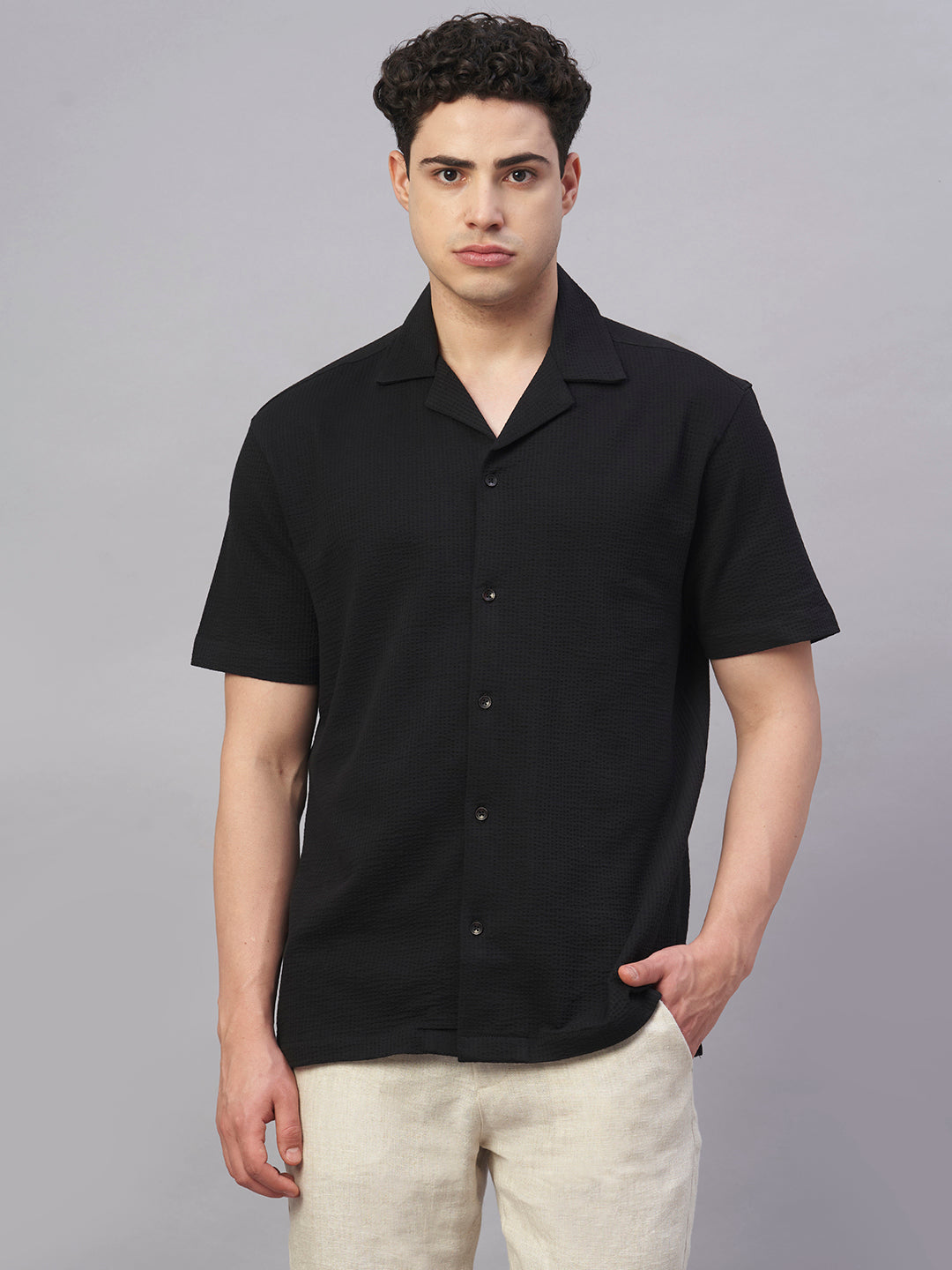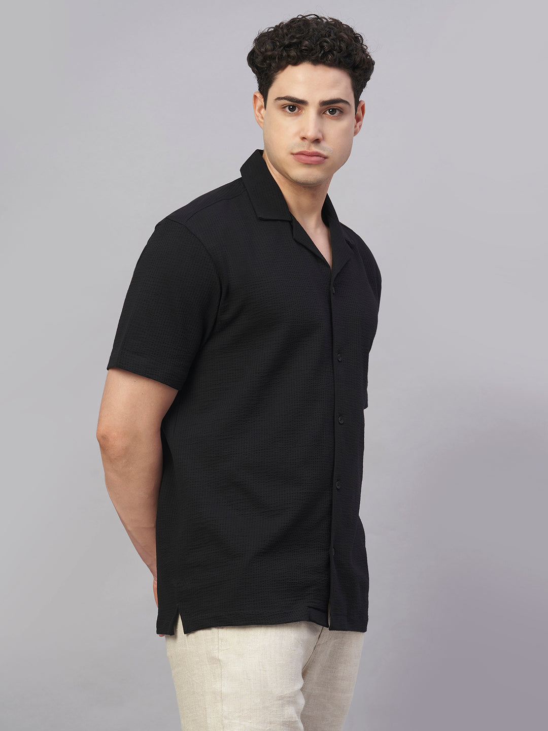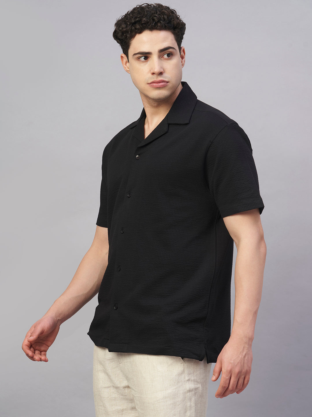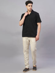 Men's Black Cotton Elastane Regular Fit Tshirt