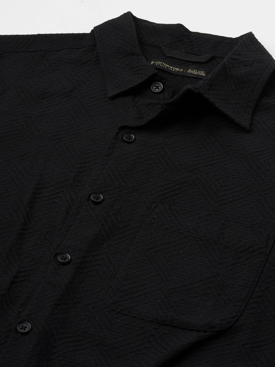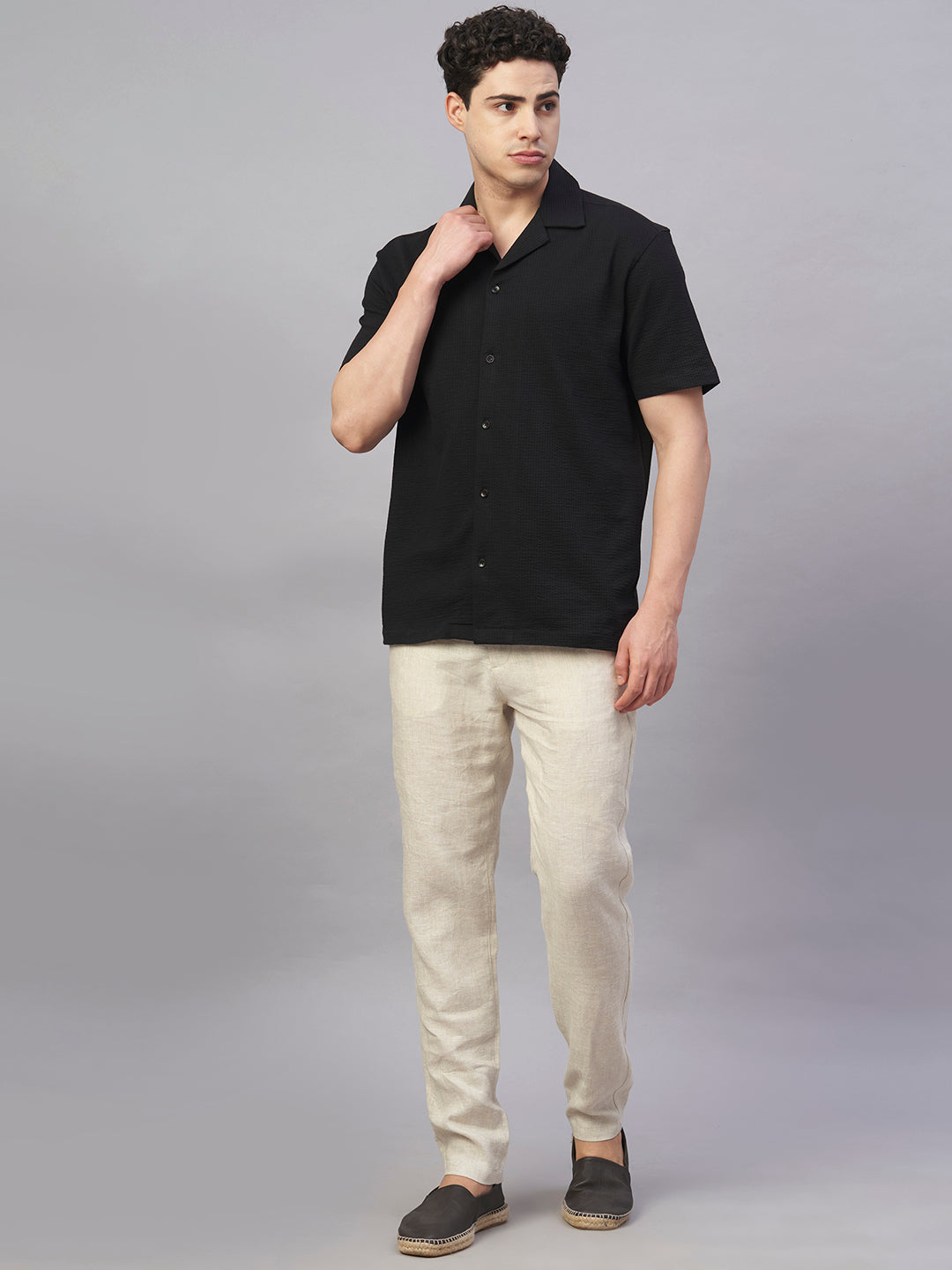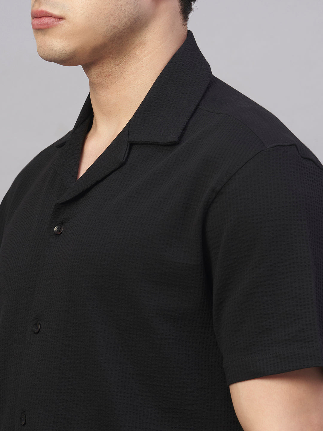 Men's Black Cotton Elastane Regular Fit Tshirt