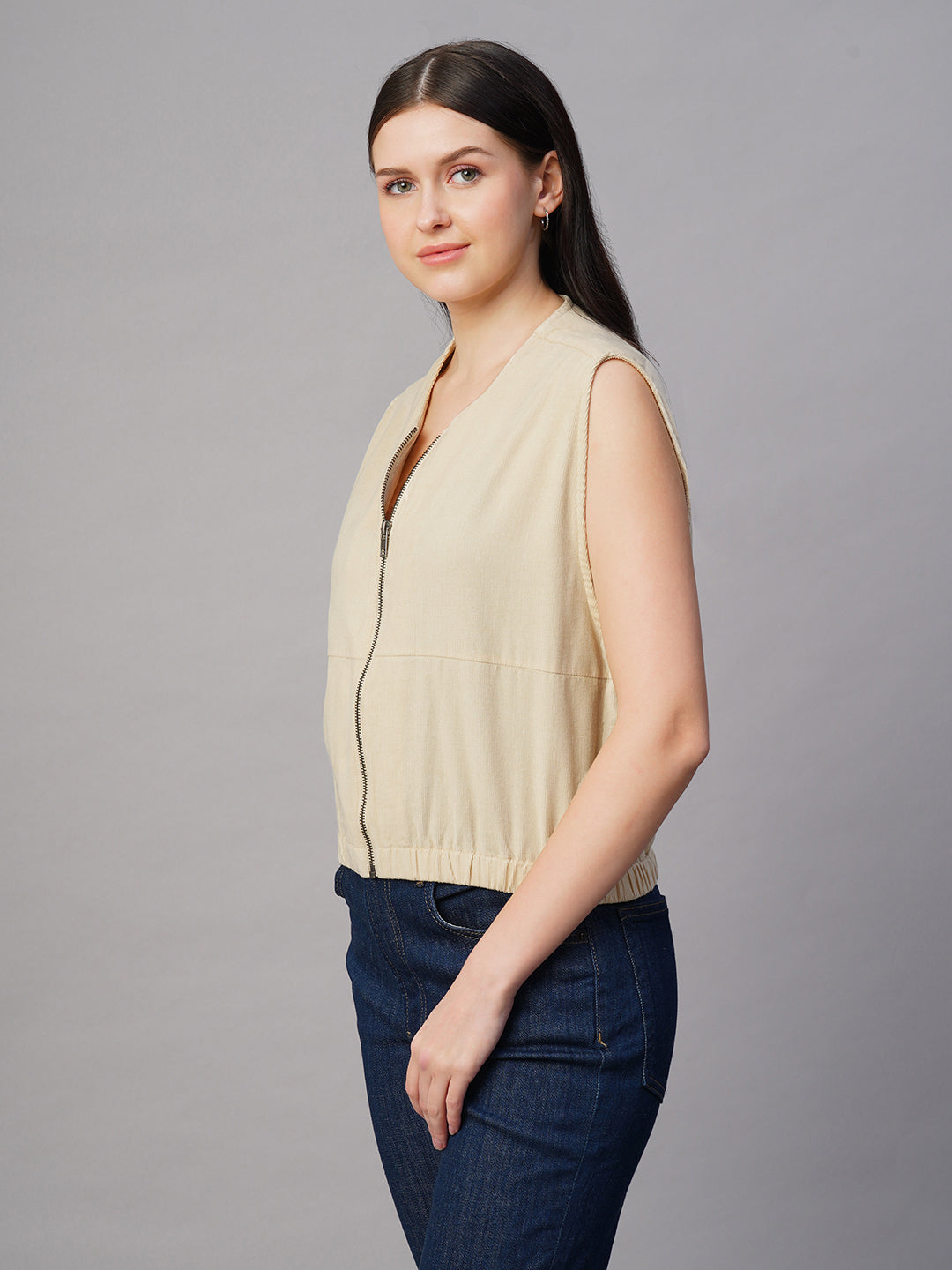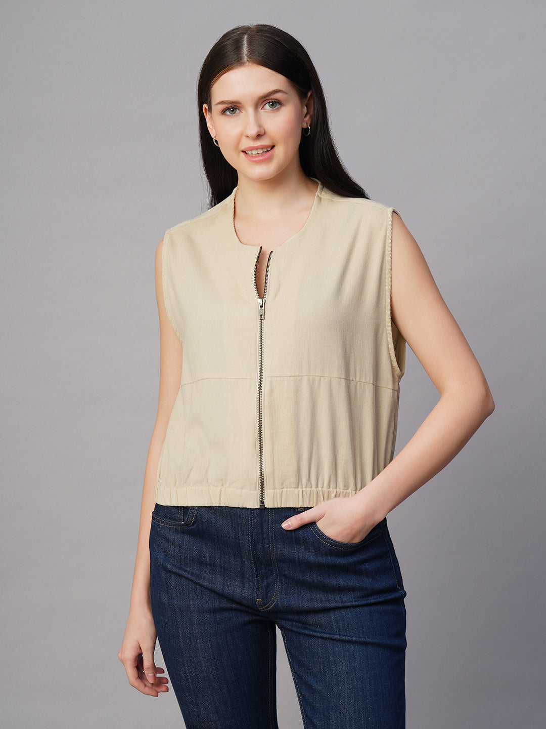 Women's Corduroy Offwhite 100% Cotton Boxy Fit Jacket