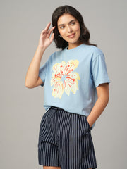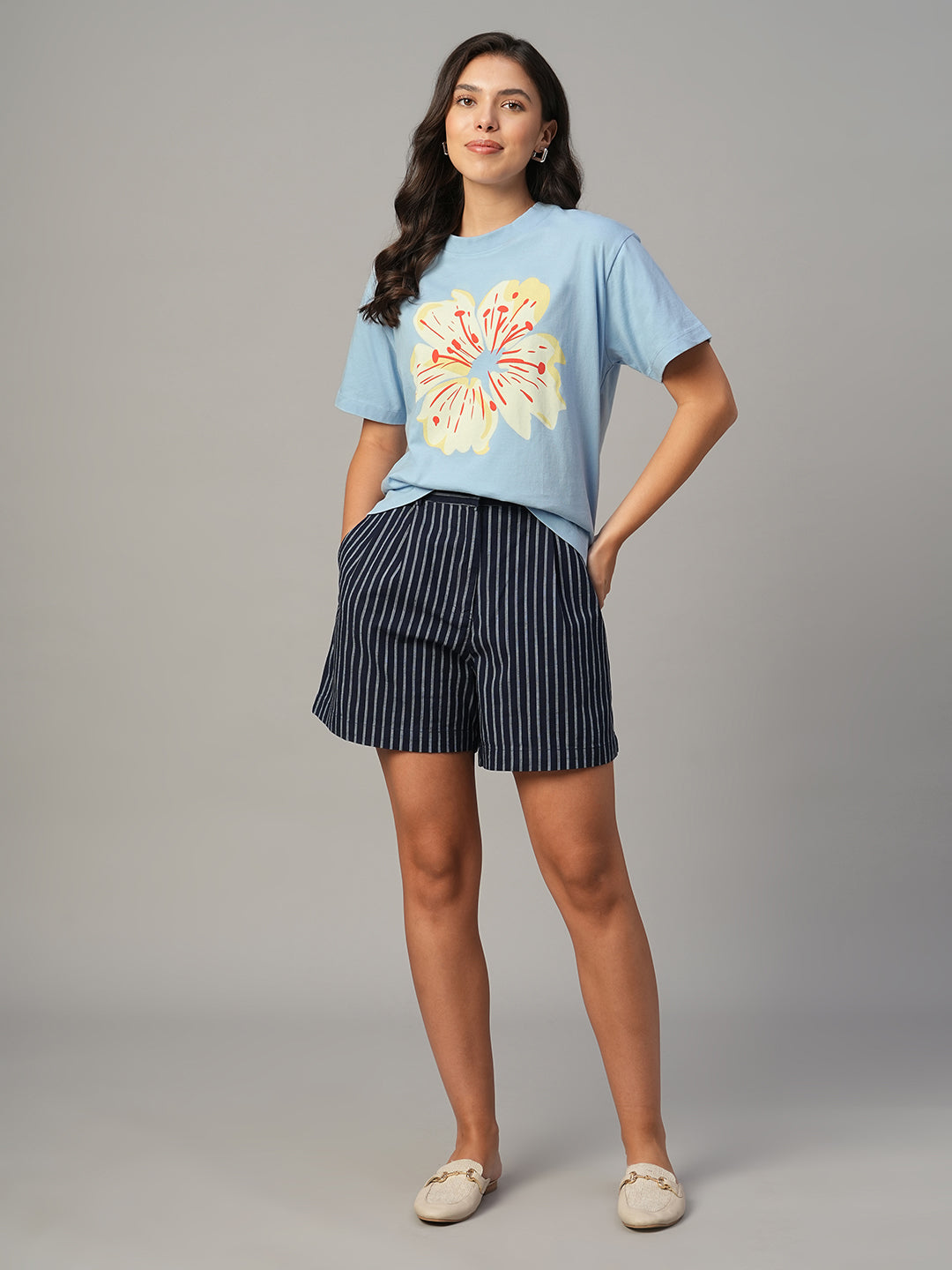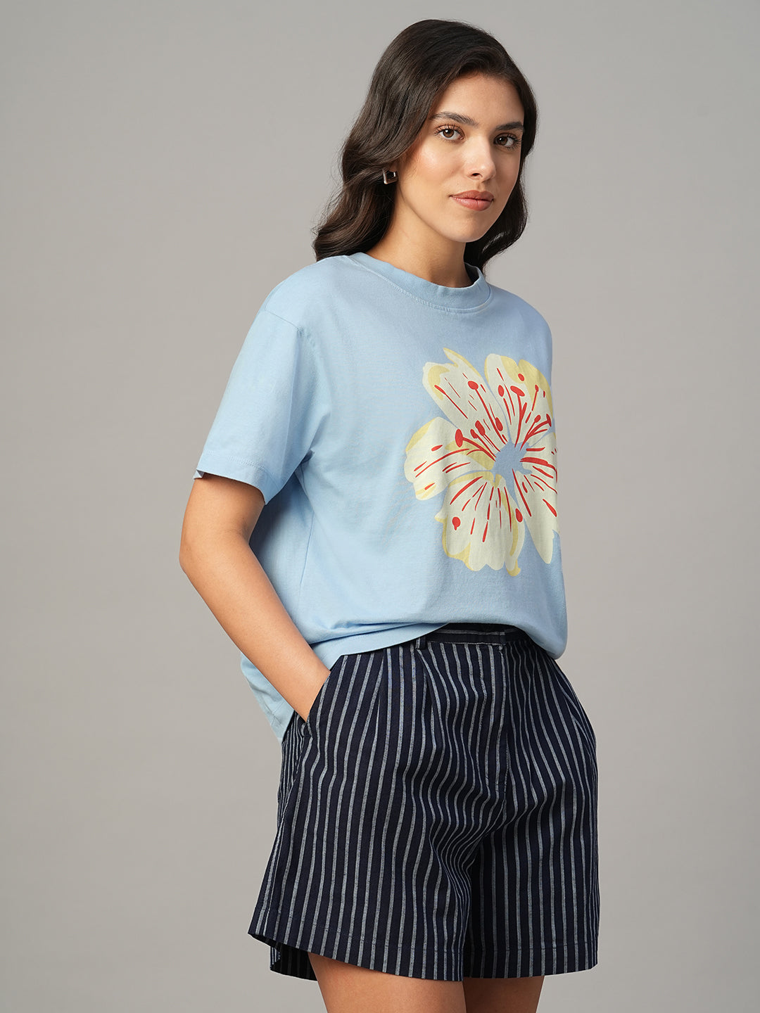 Women's Blue 100% Organic Cotton Regular Fit Tshirt