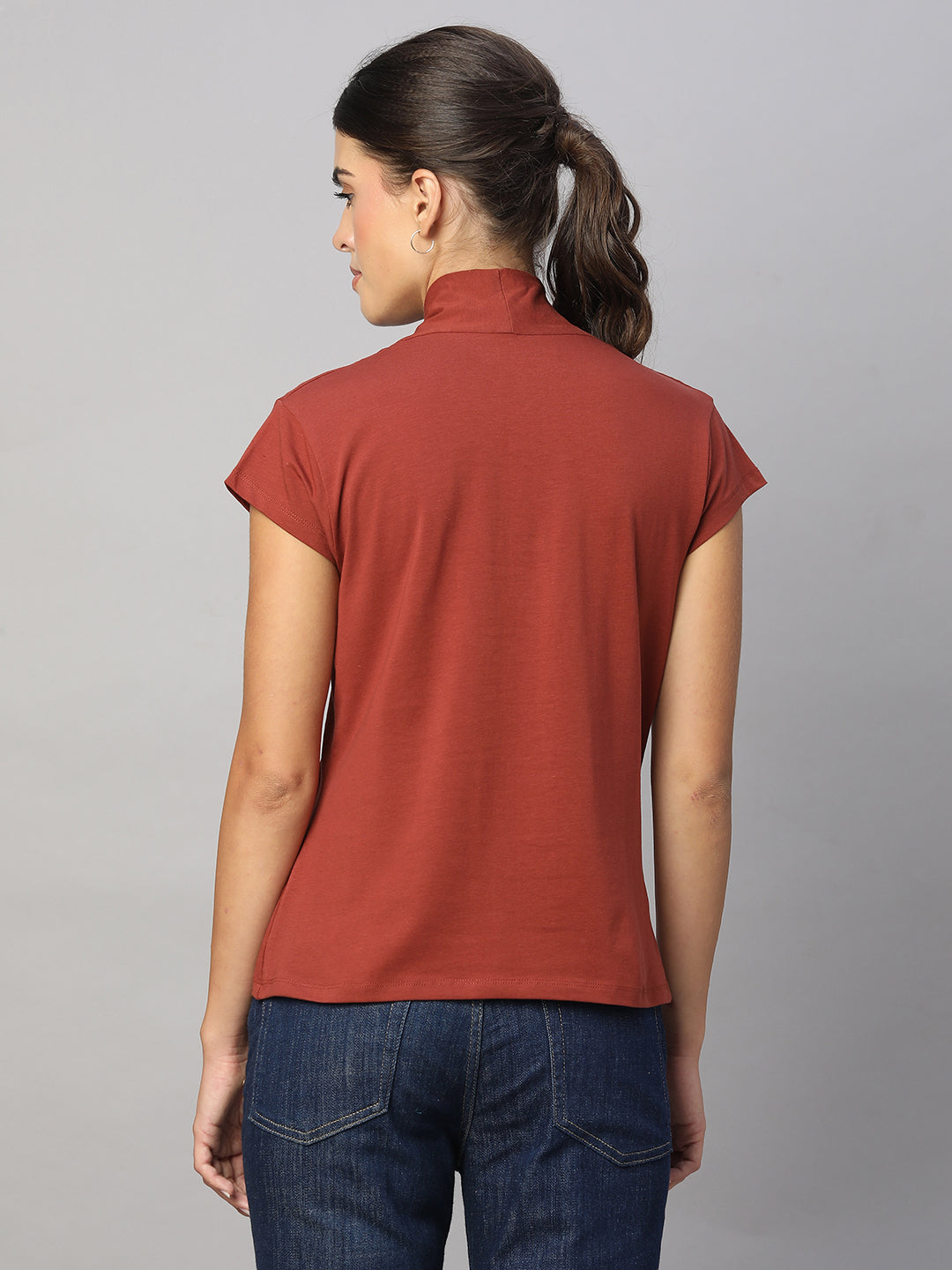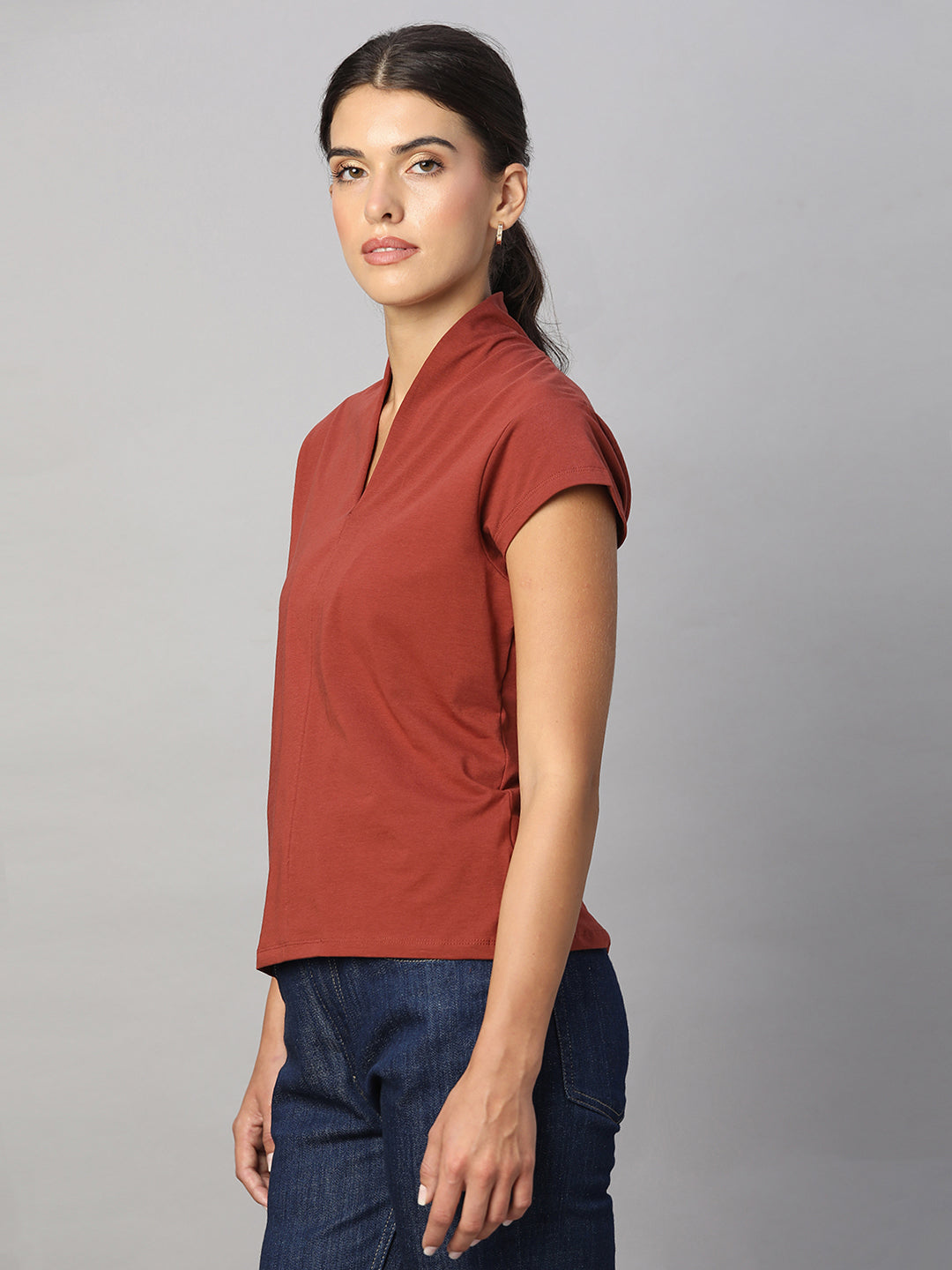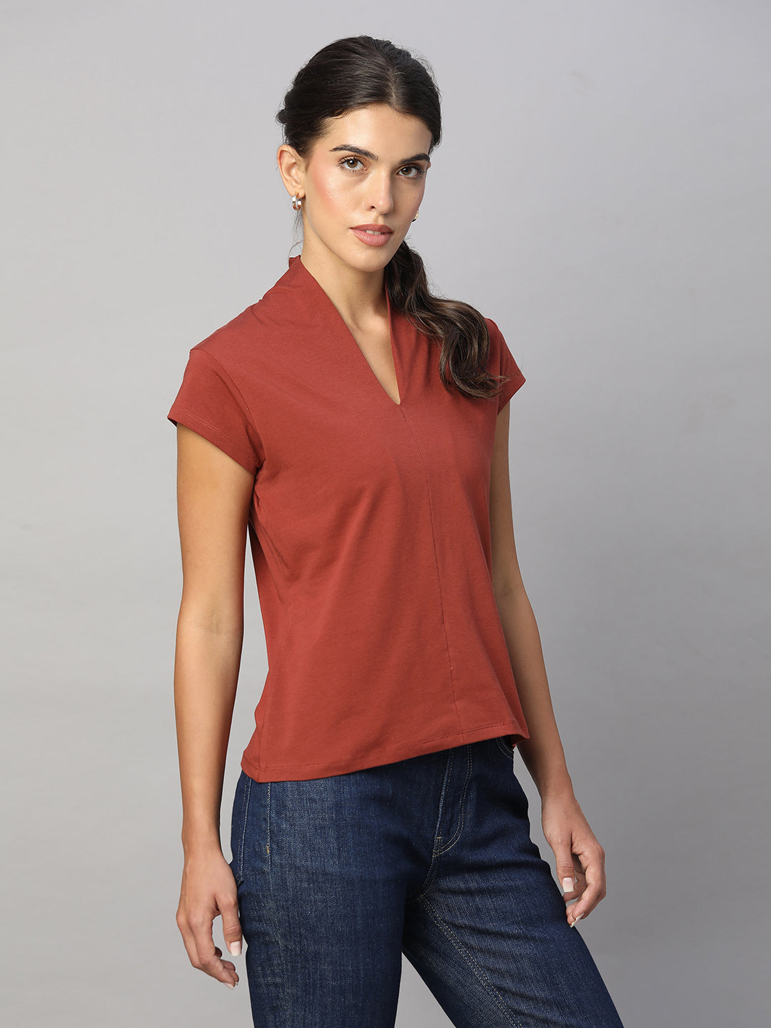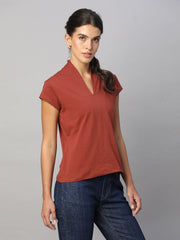 Women's Brick Cotton Elastane Slim Fit Tshirt