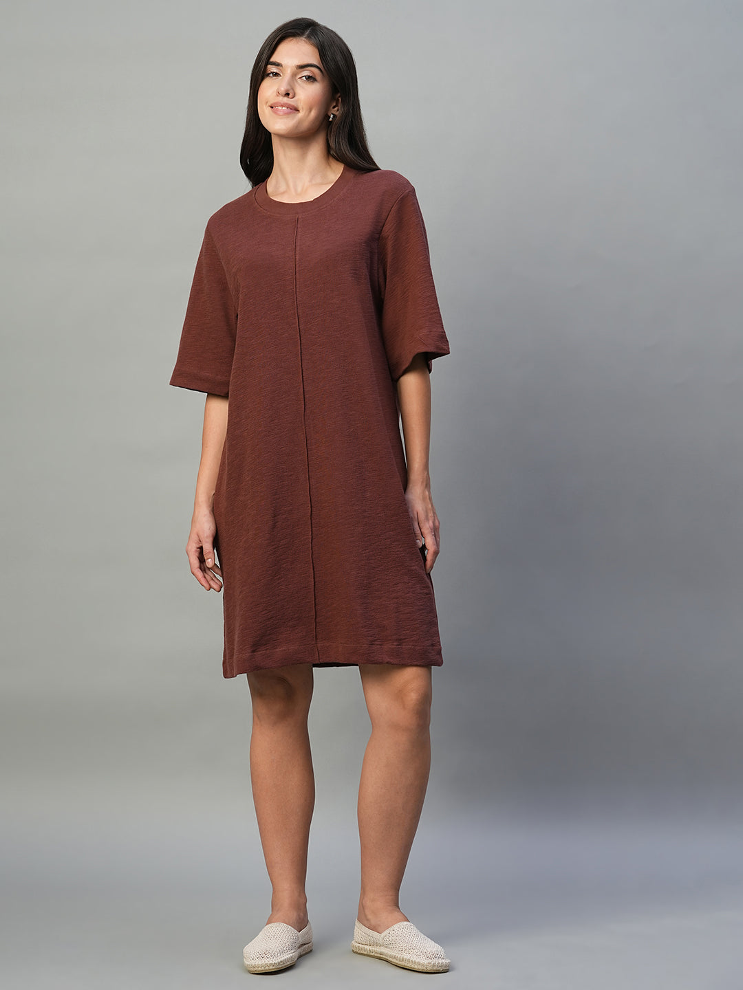 Women's Wine 100% Cotton Regular Fit Knit Dress