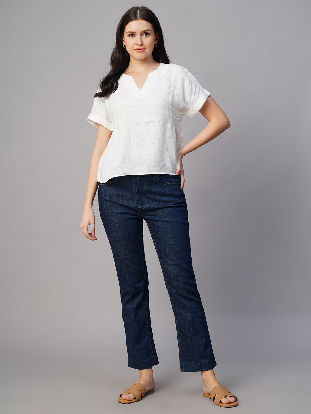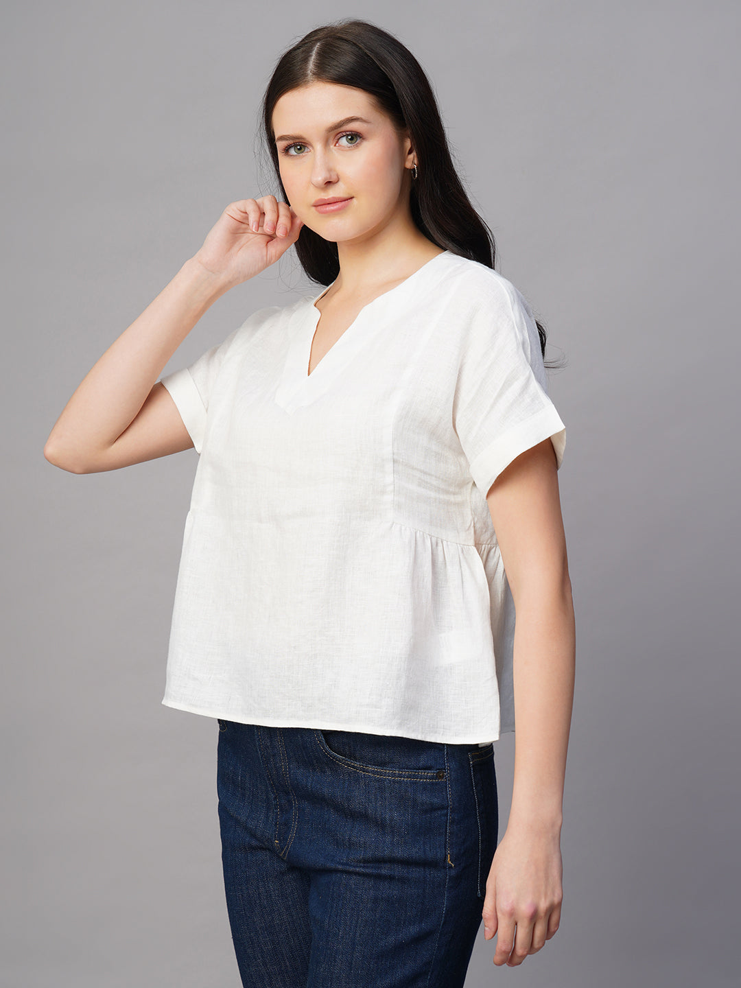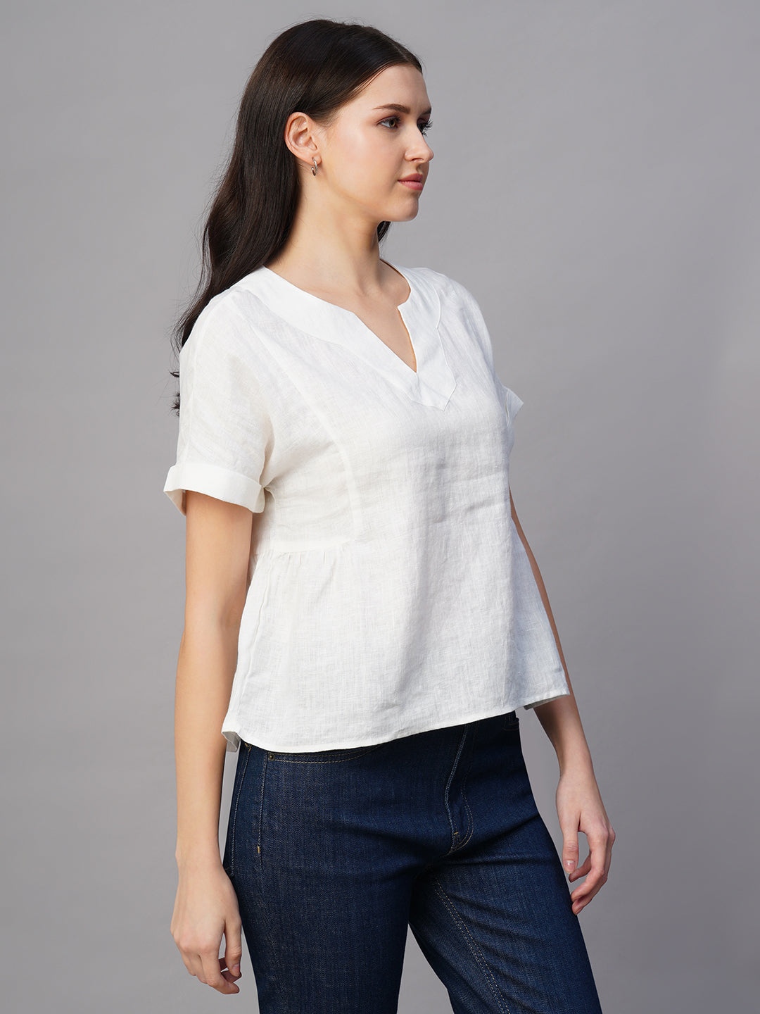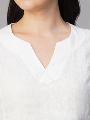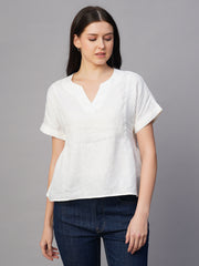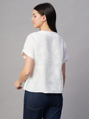 Women's White Linen Excel Regular Fit Blouse