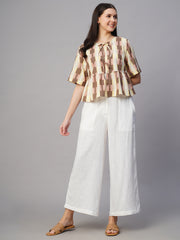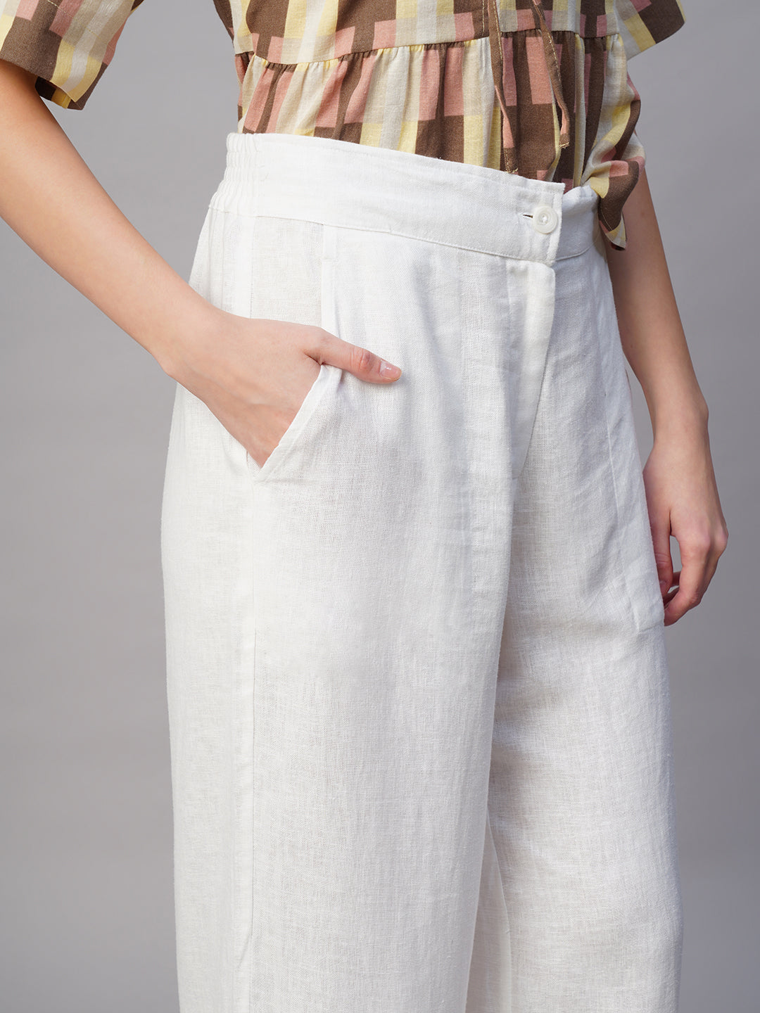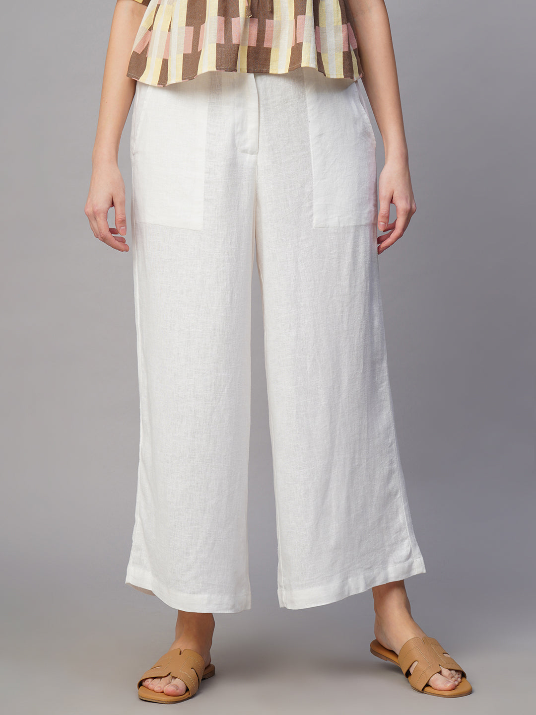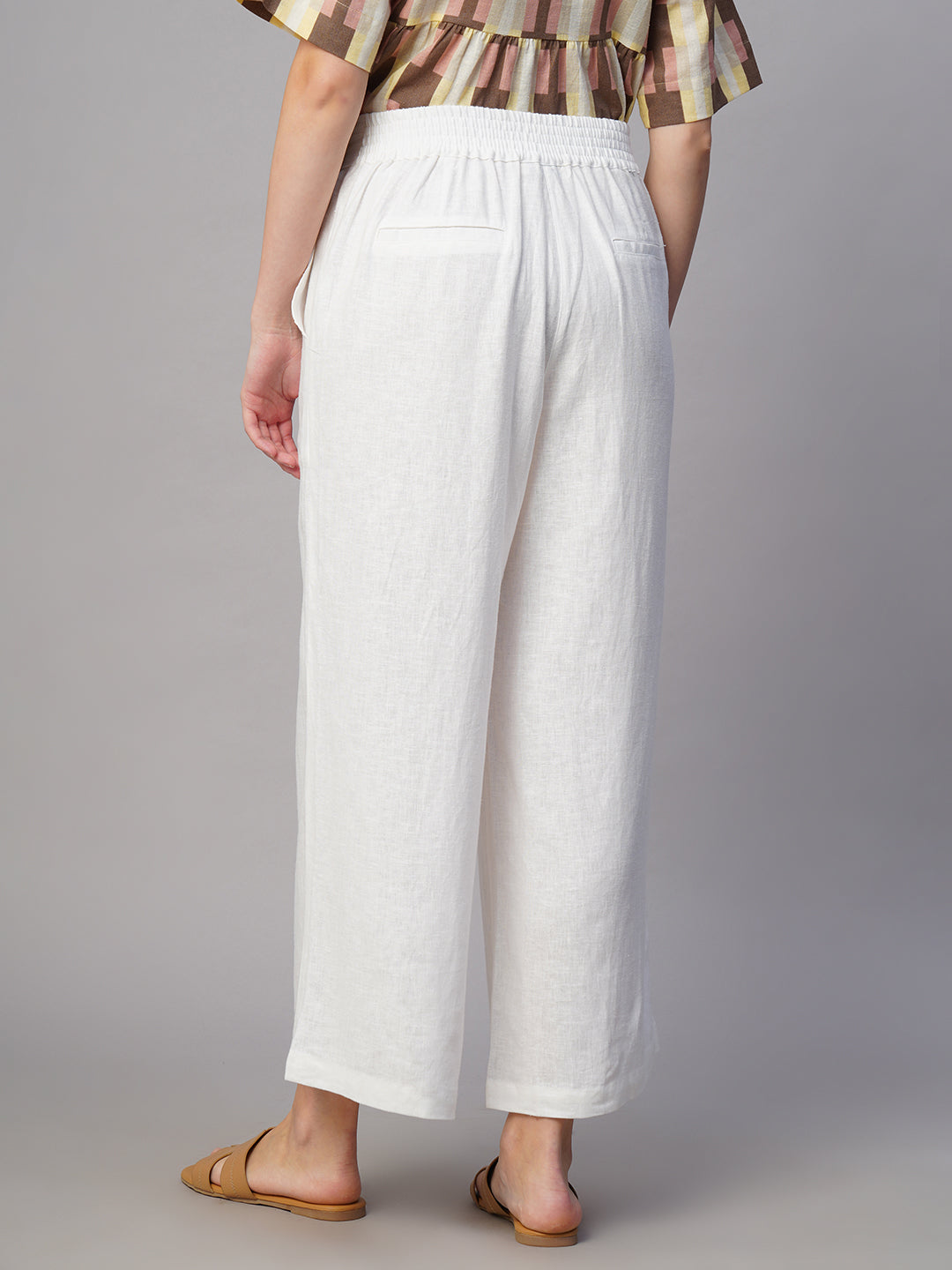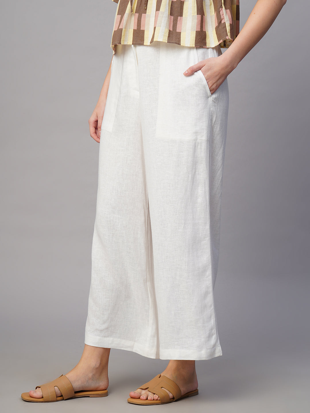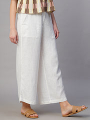 Women's White Linen Viscose Regular Fit Culotte