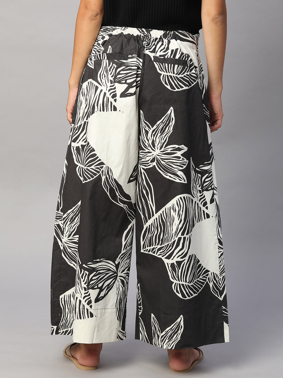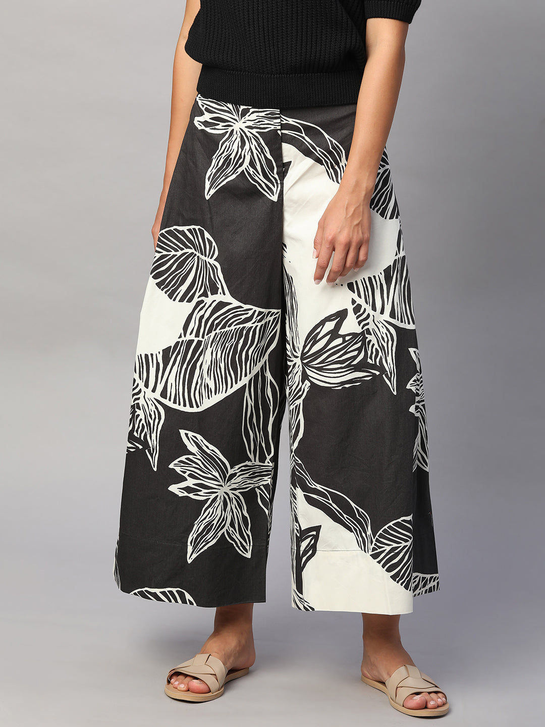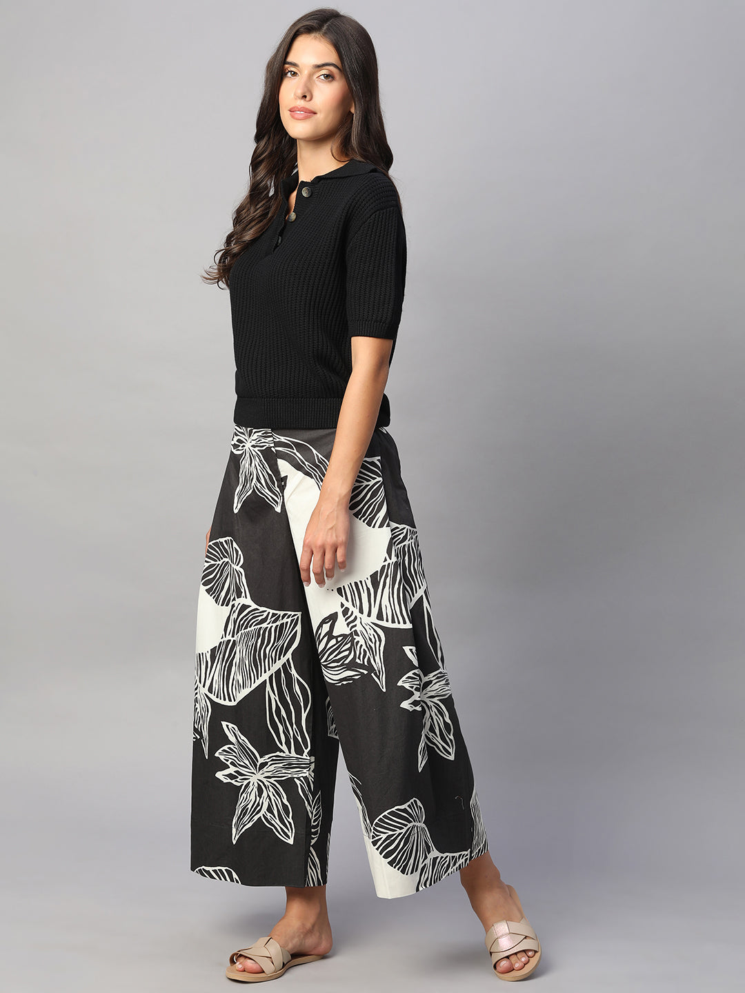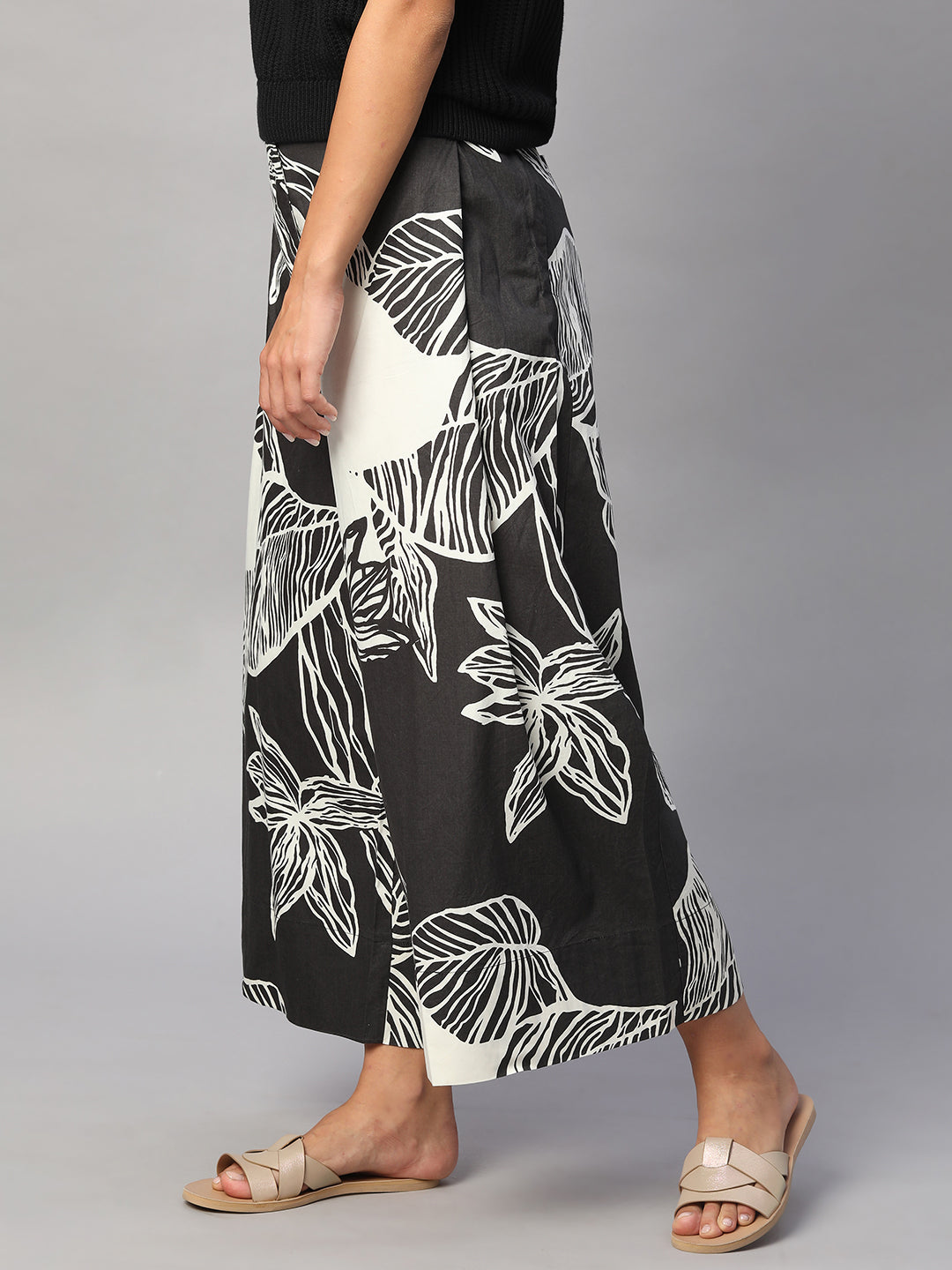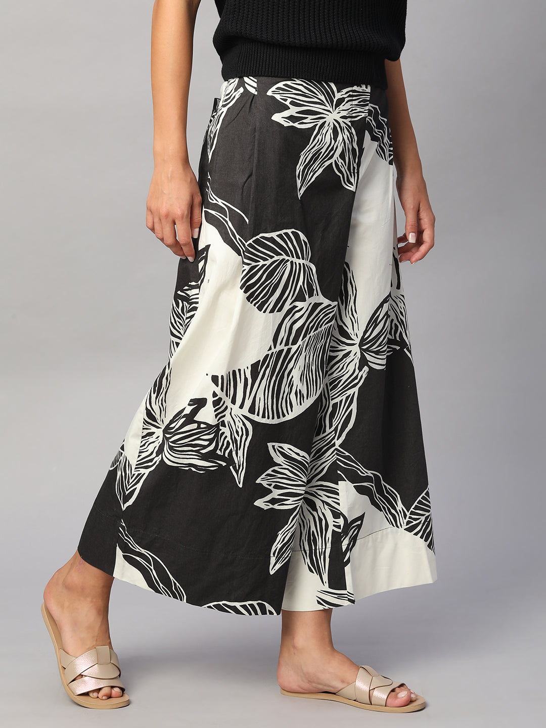 Women's White/Black 100% Cotton Regular Fit Culotte
