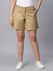 Women's Khaki Cotton Lycra Regular Fit Shorts