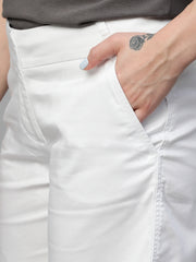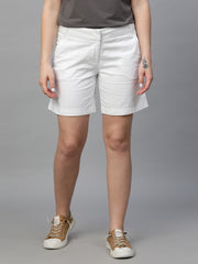 Women's White Cotton Elastane Regular Fit Shorts