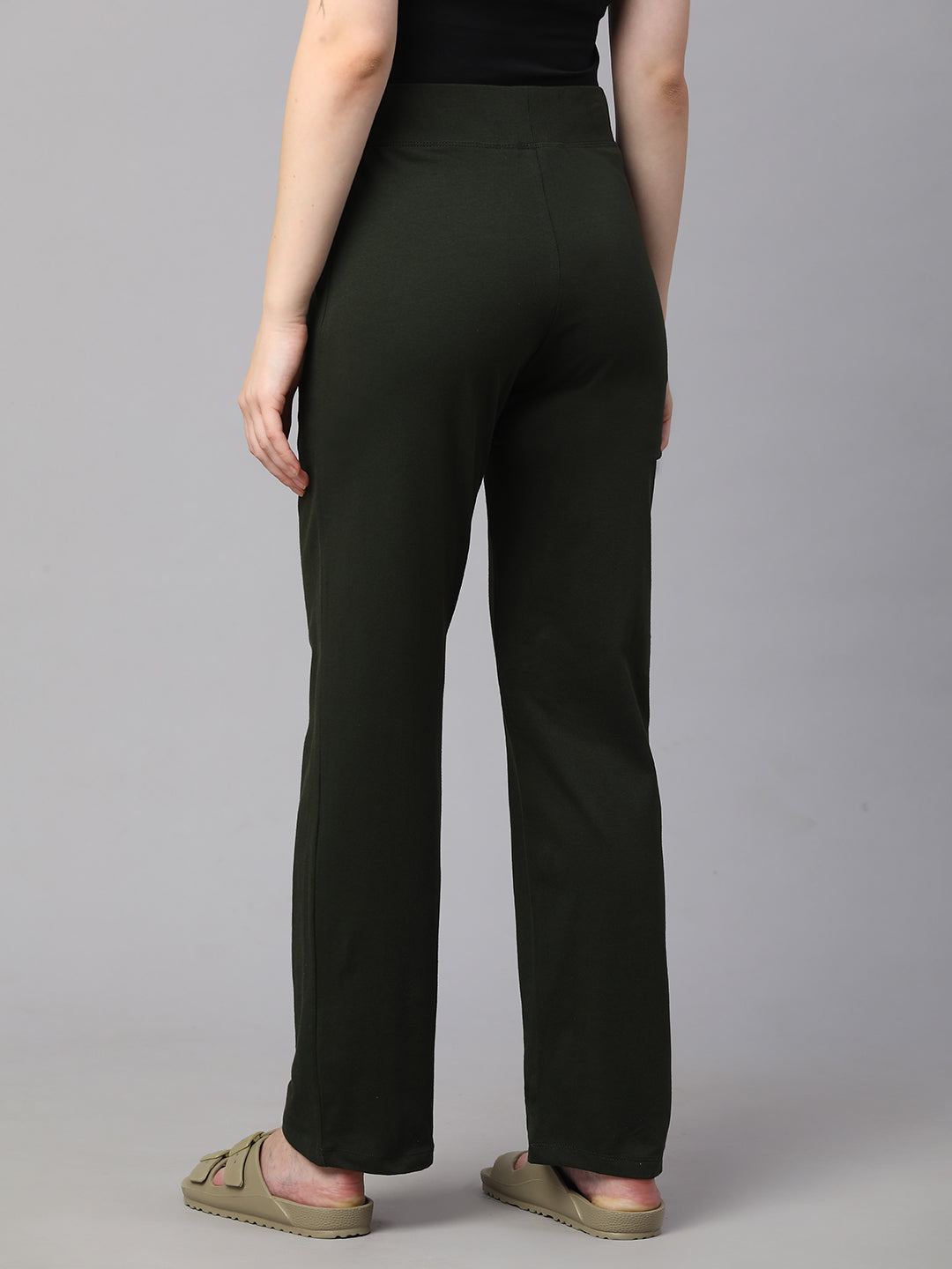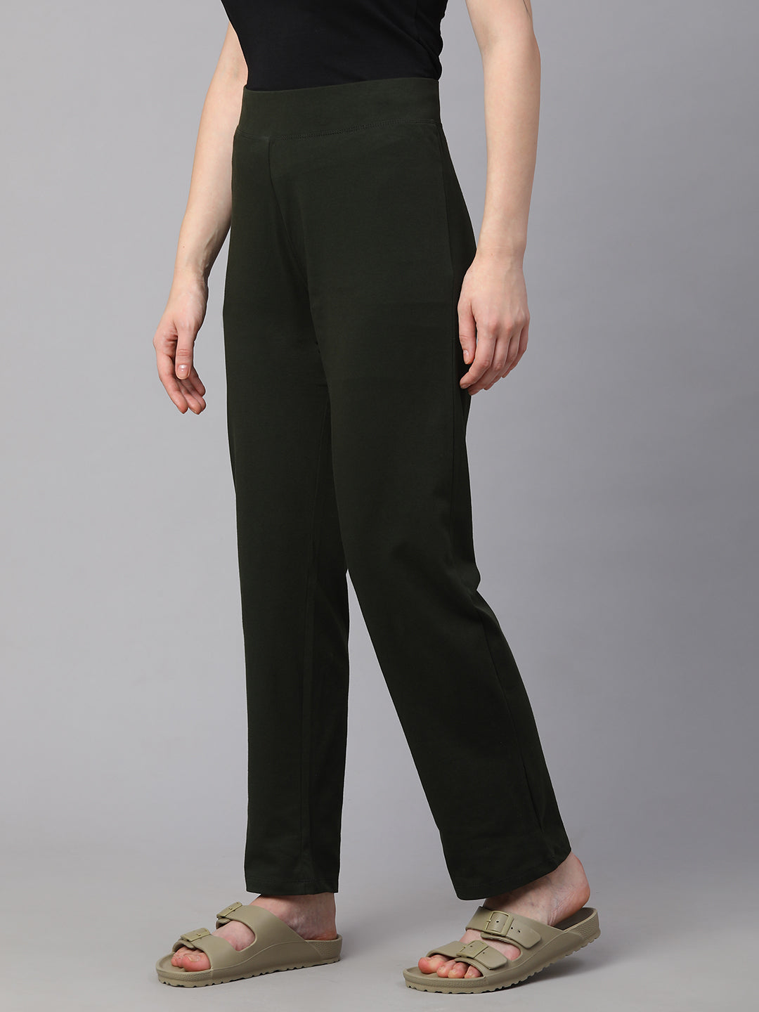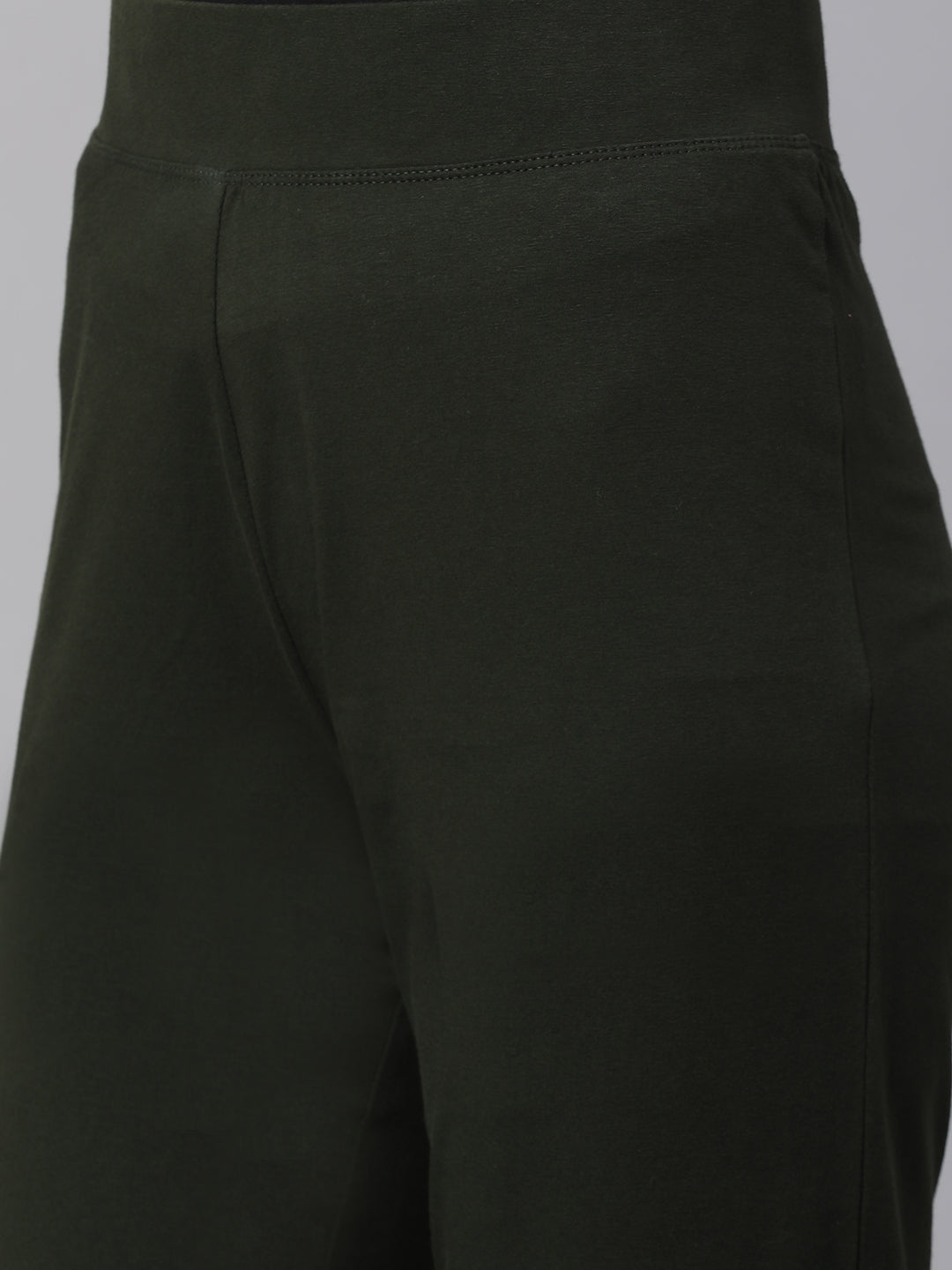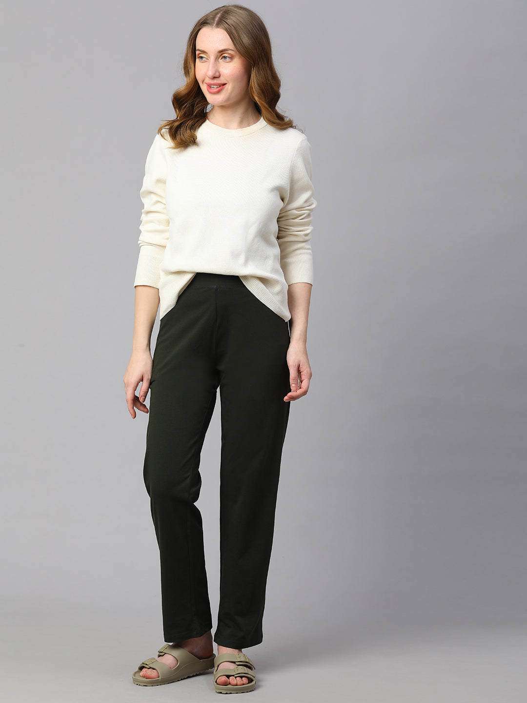 Women's Green Cotton Elastane Regular Fit Knit Pant