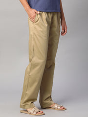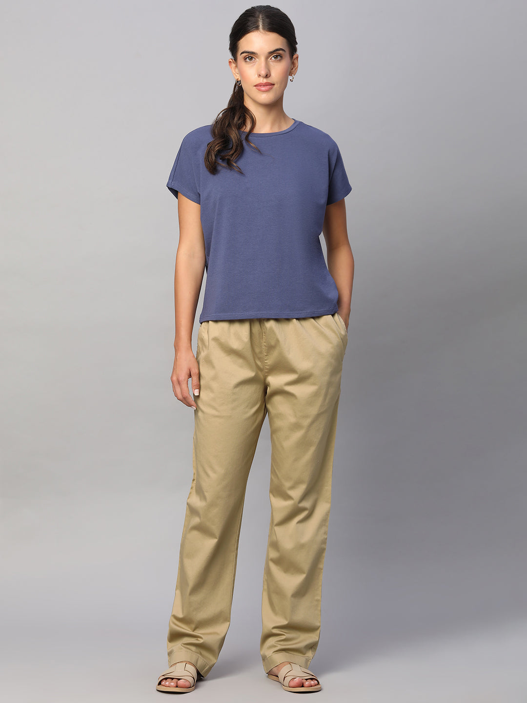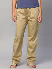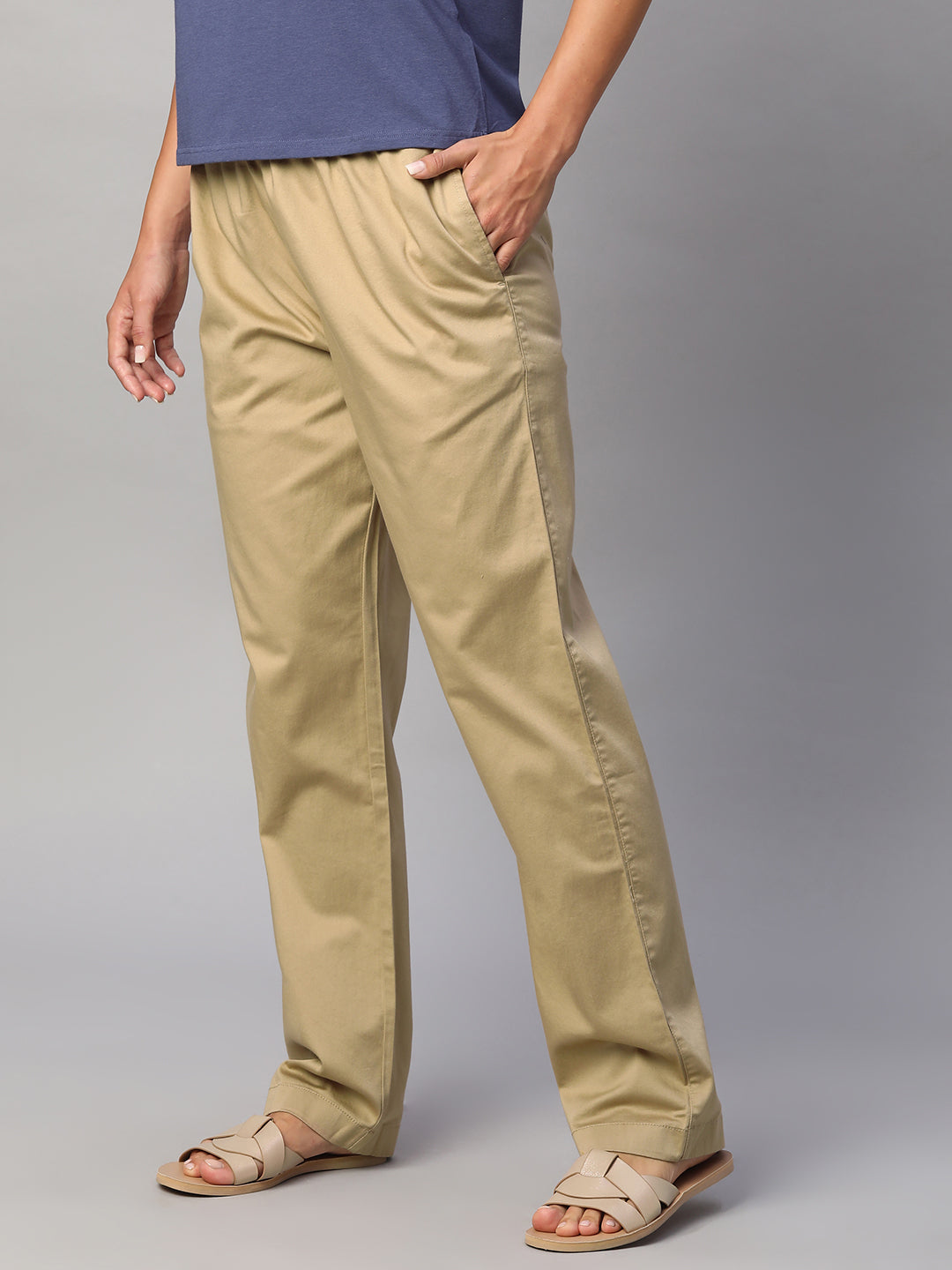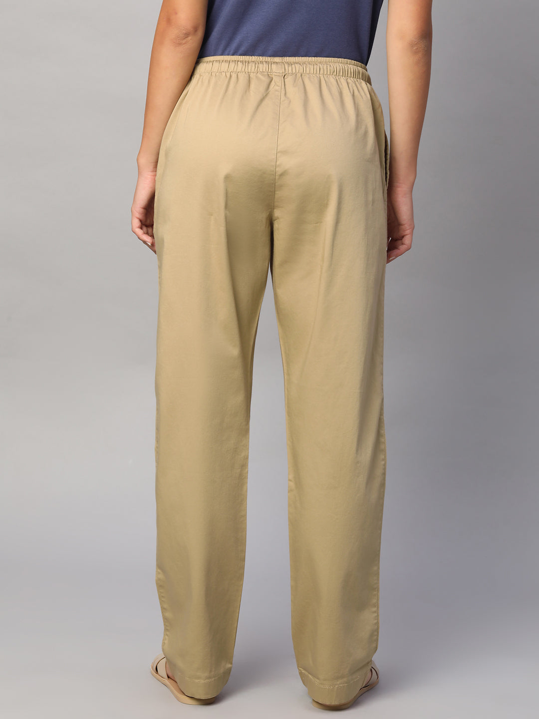 Women's Khaki Cotton Lycra Regular Fit Pant