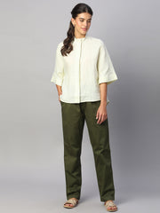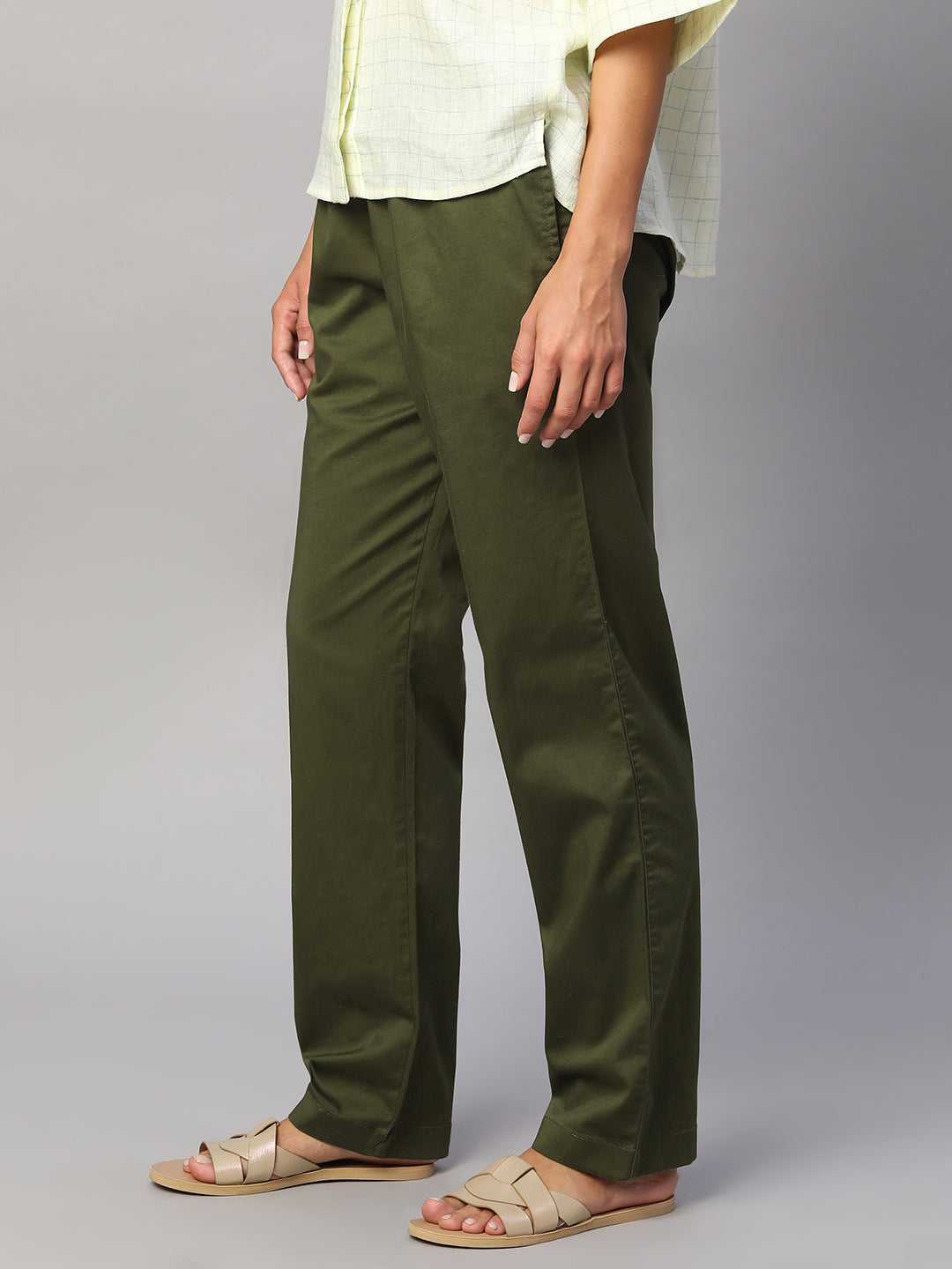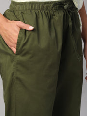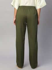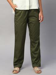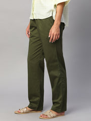 Women's Olive Cotton Lycra Regular Fit Pant