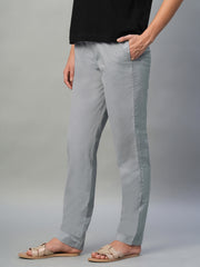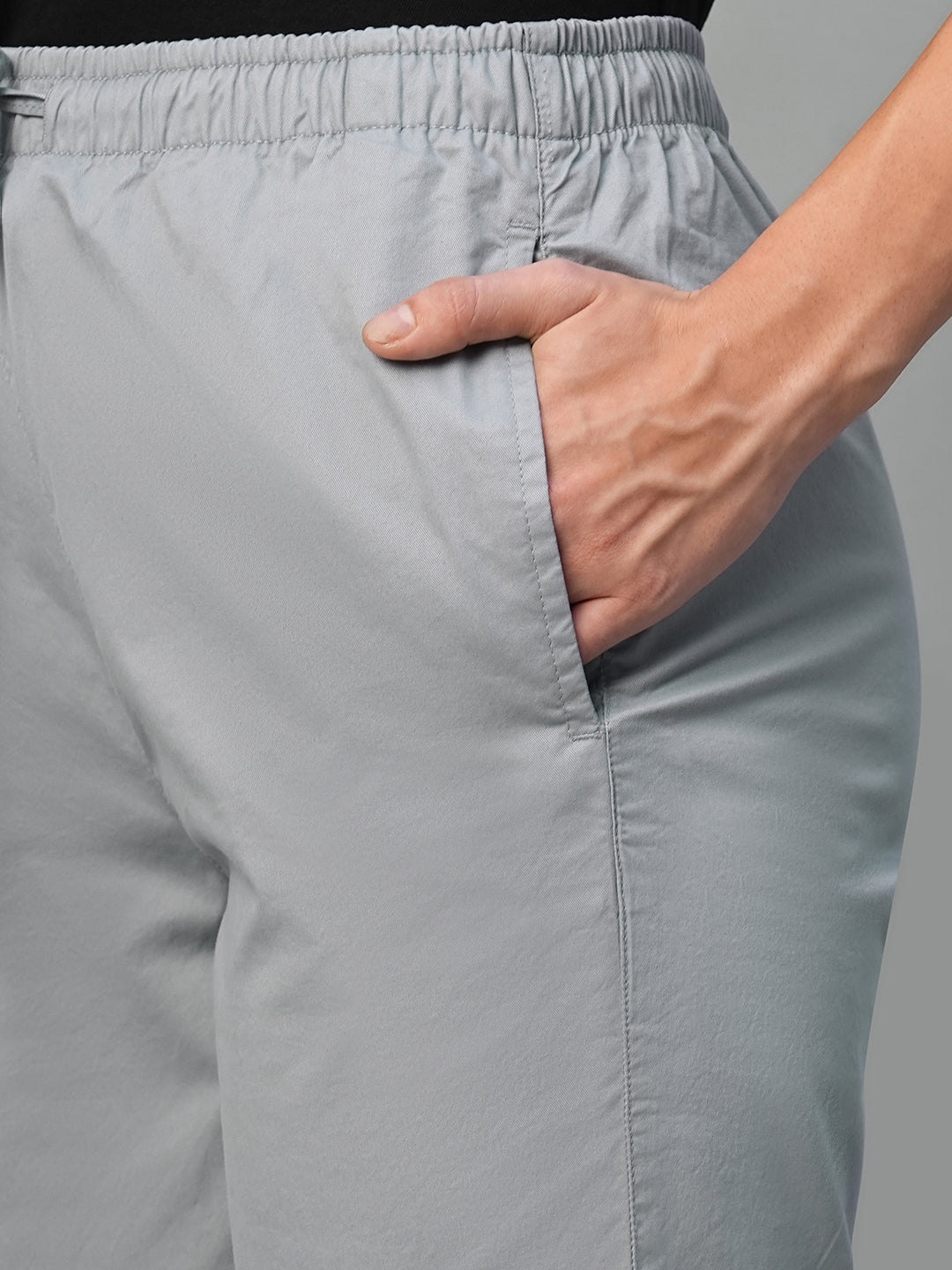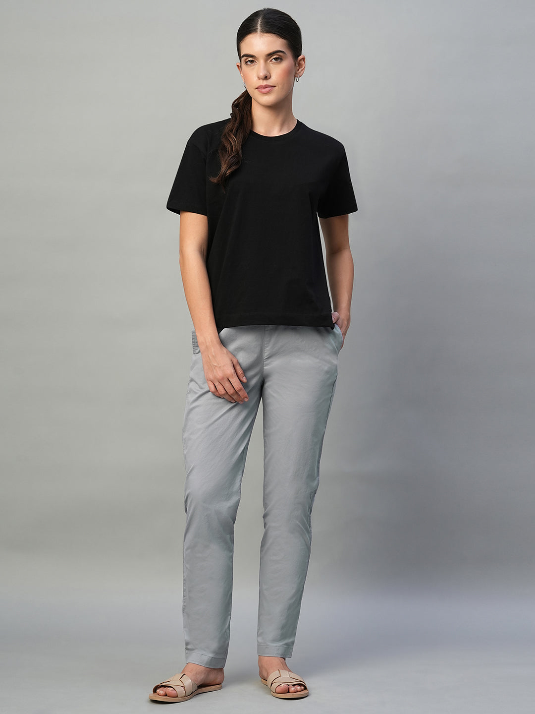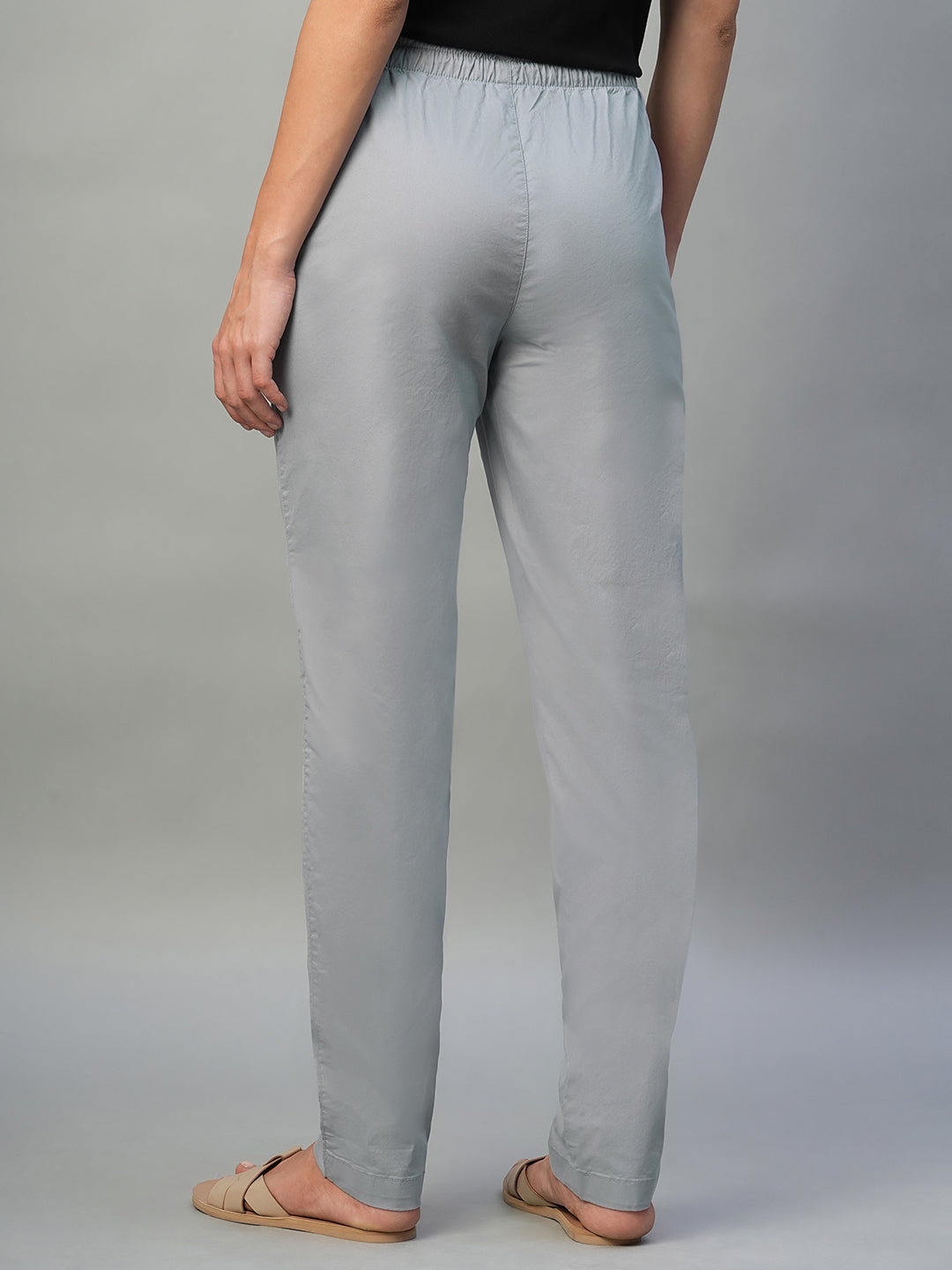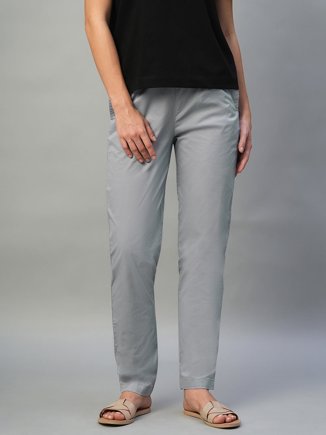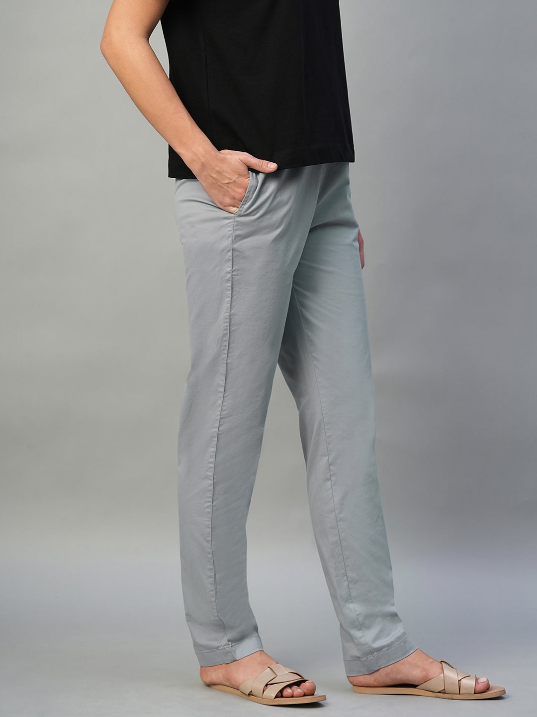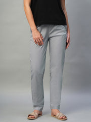 Women's Light Grey Cotton Lycra Regular Fit Pant