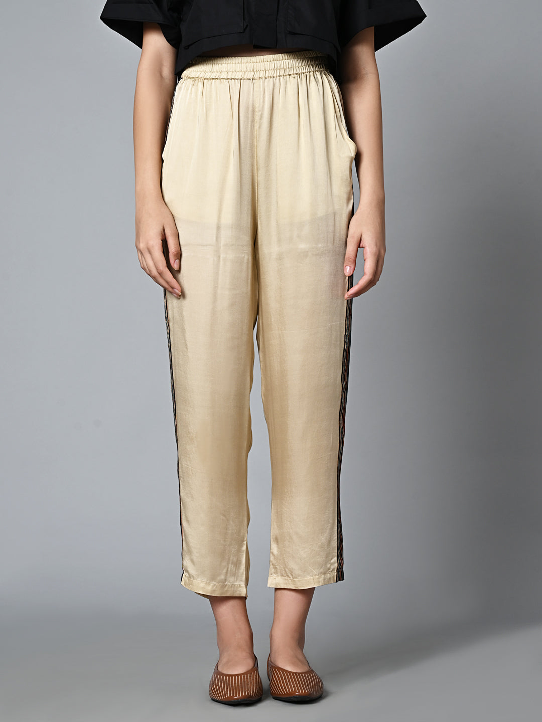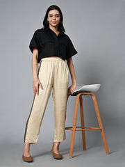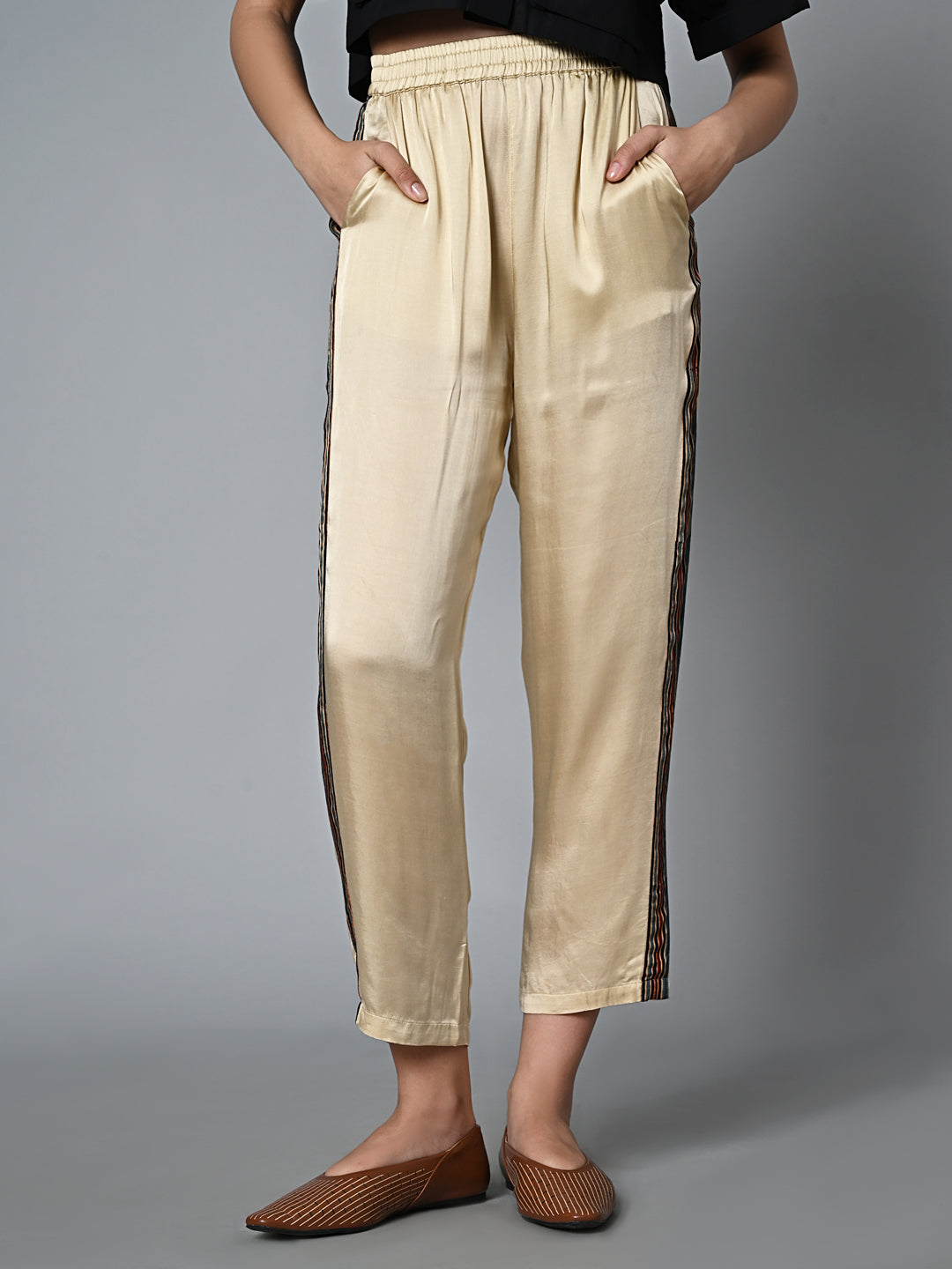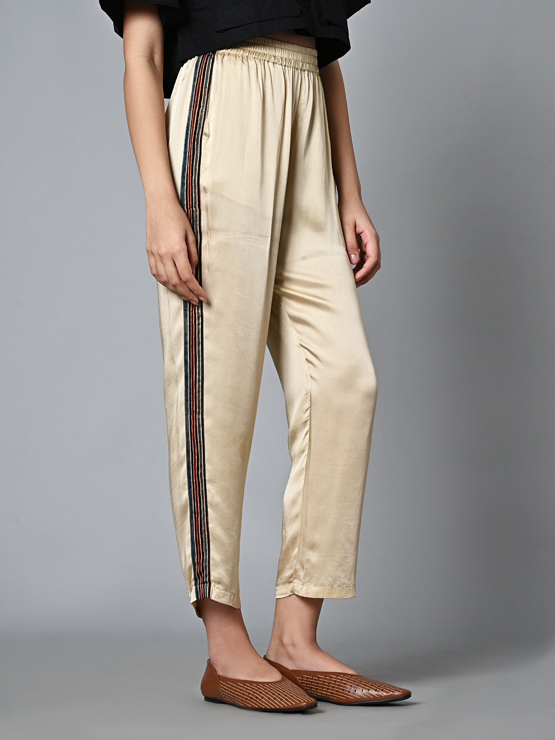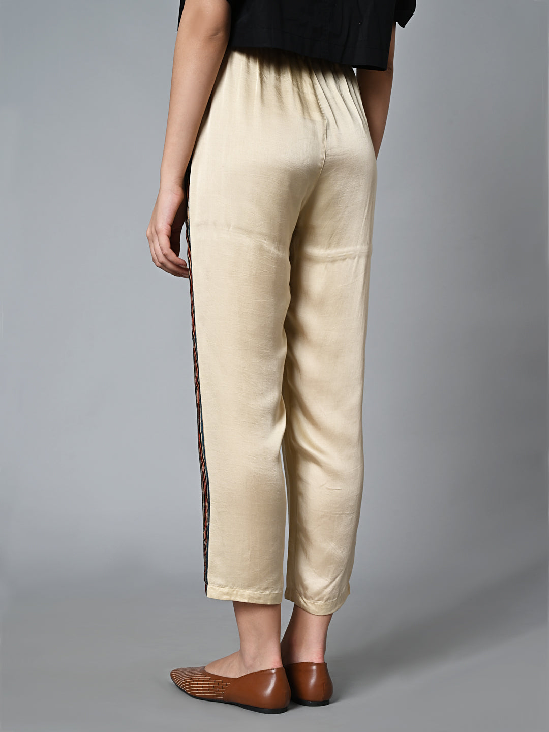 Women's Ajrak Hand Block Printed Regular Fit Modal Offwhite Pant