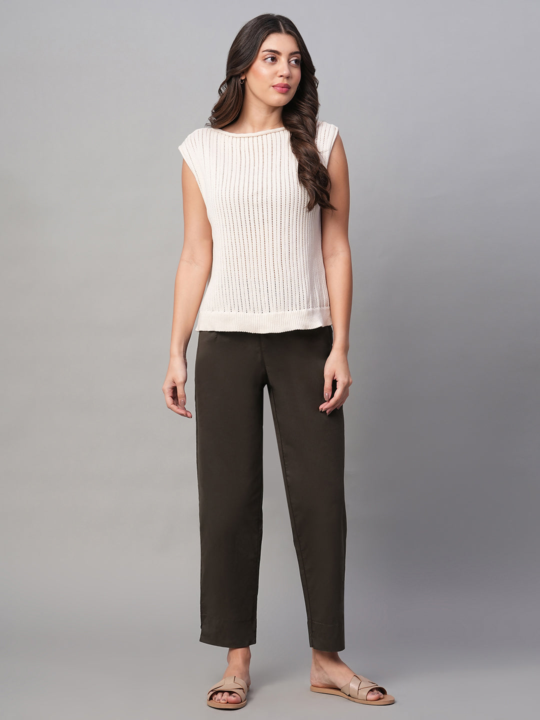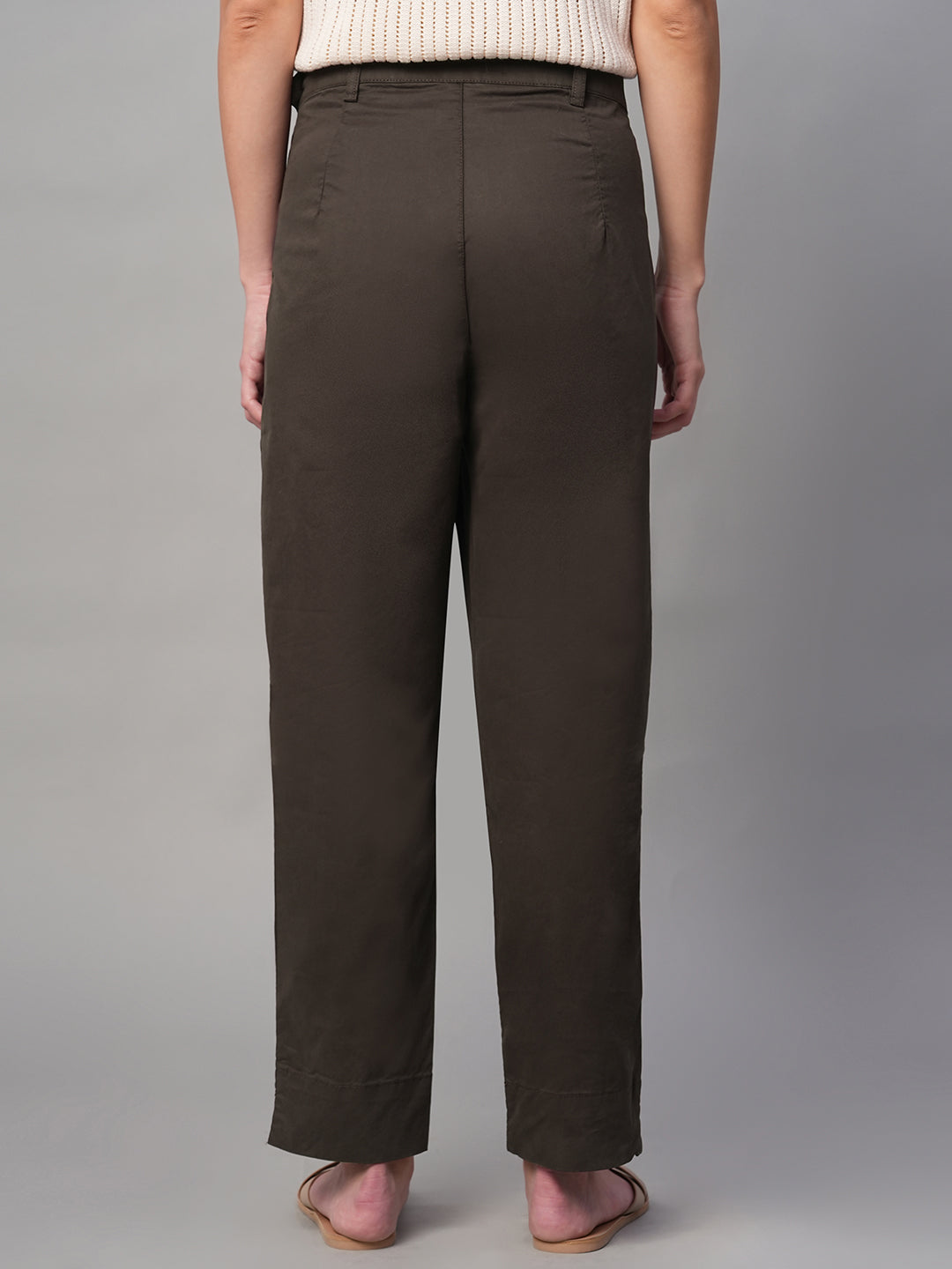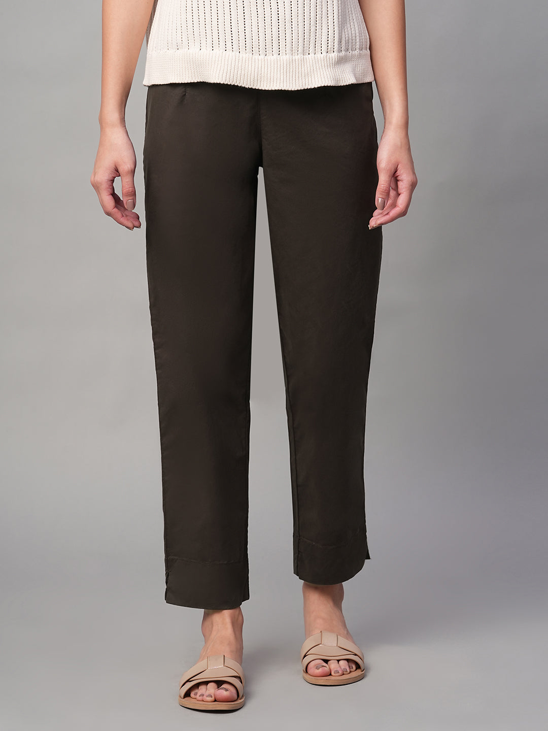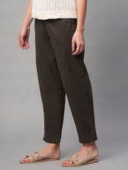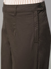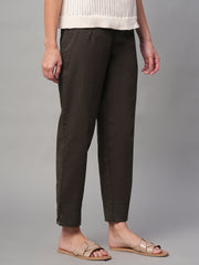 Women's Brown Cotton Lycra Regular Fit Pant