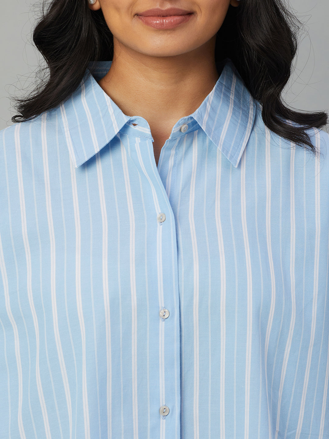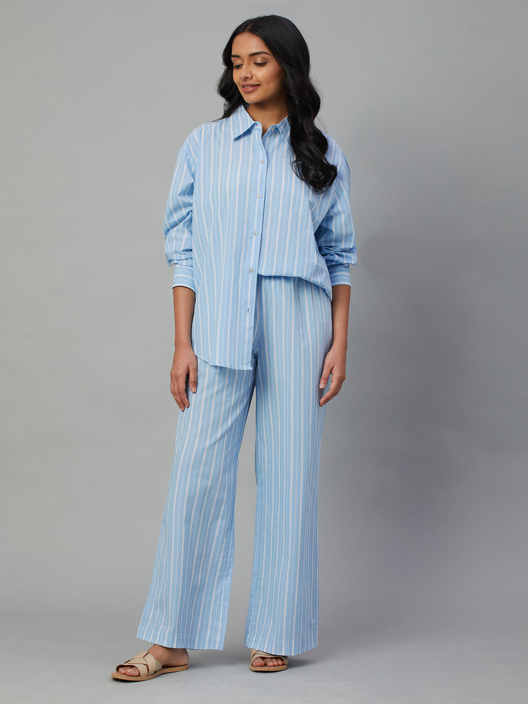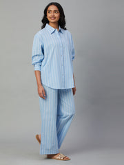 Women's Blue 100% Cotton Boxy Fit Pyjama Suit
