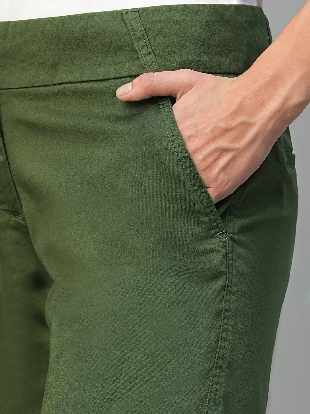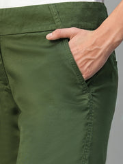 Women's Olive Cotton Lycra Regular Fit Shorts