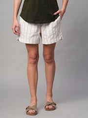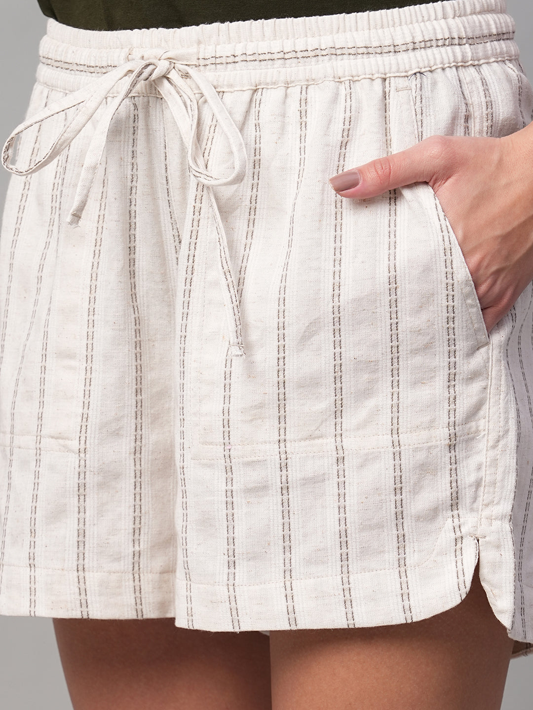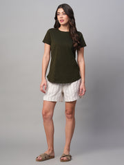 Women's Olive Cotton Linen Regular Fit Shorts