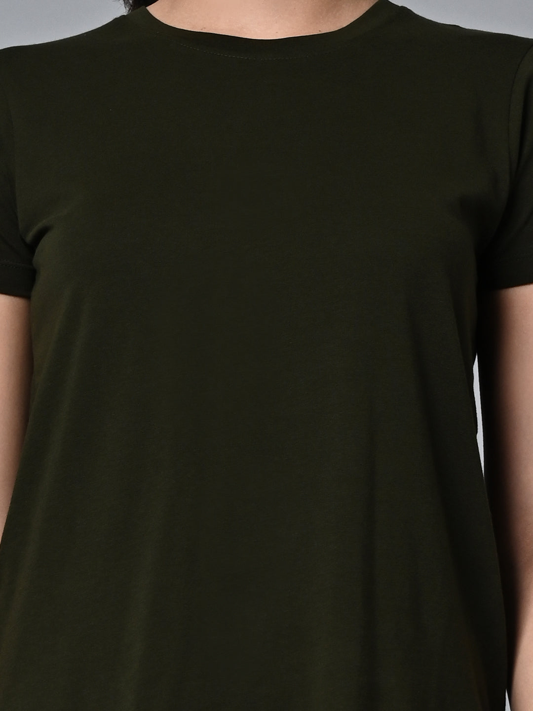 Women's Darkgreen Cotton Regular Fit Tshirt