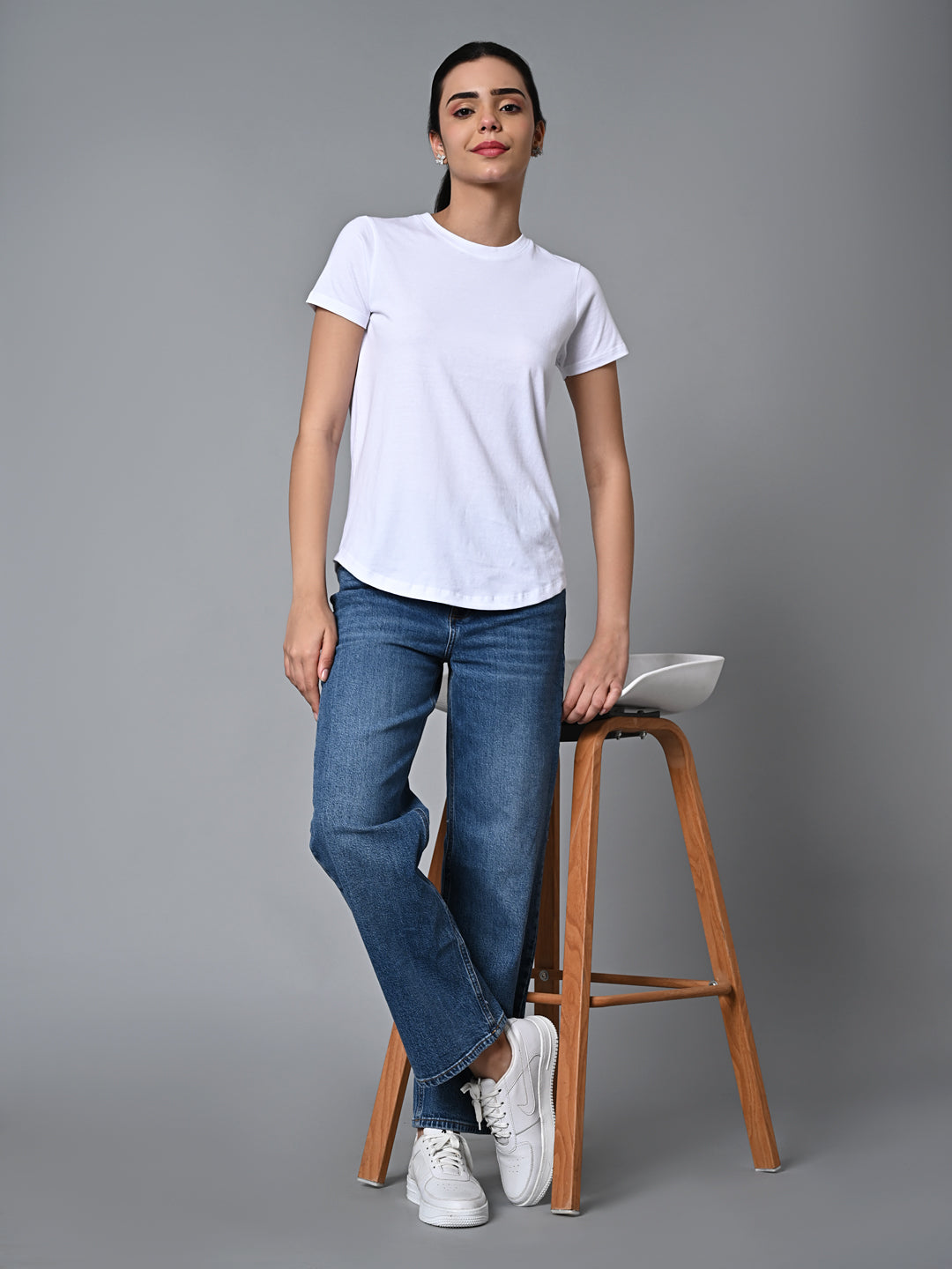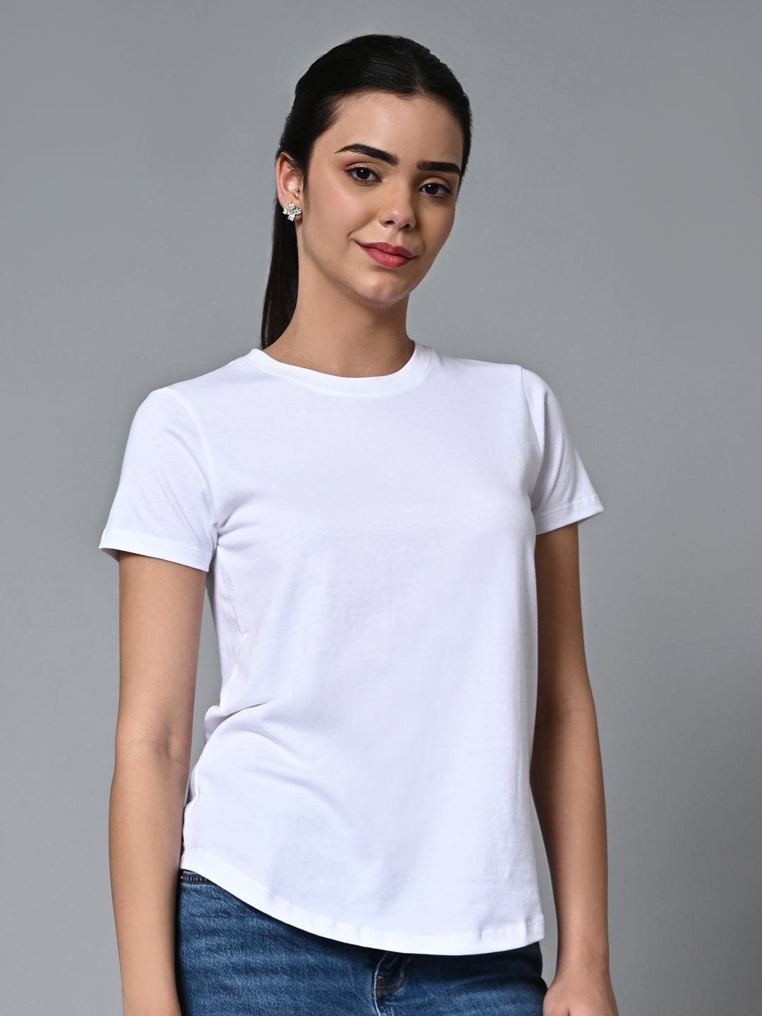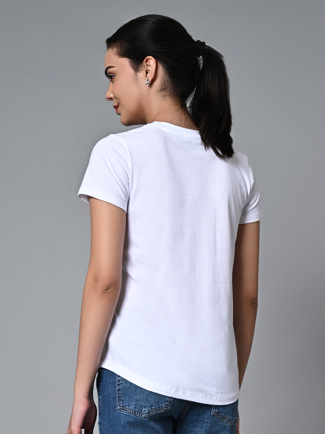 Women's White Cotton Regular Fit Tshirt