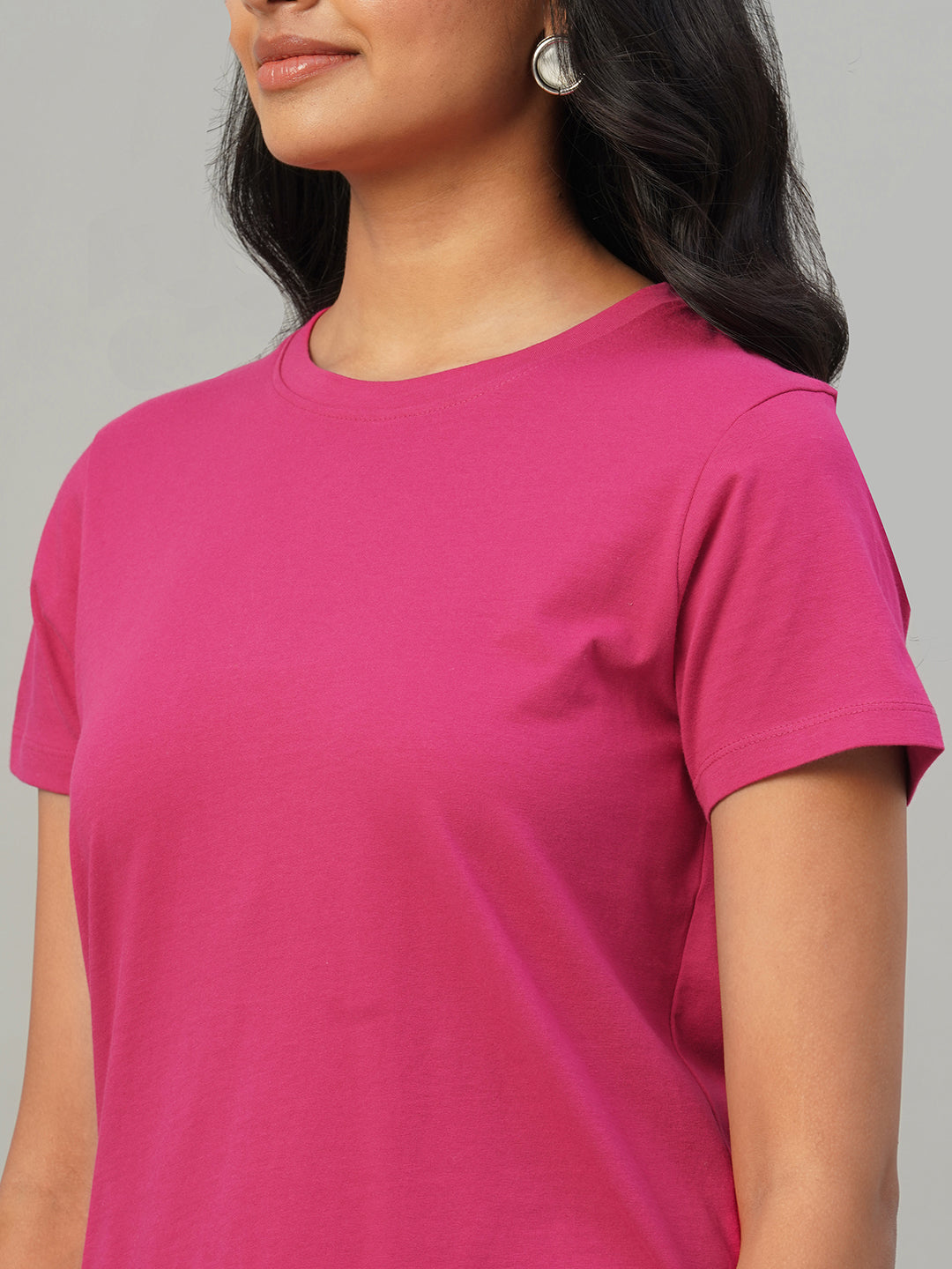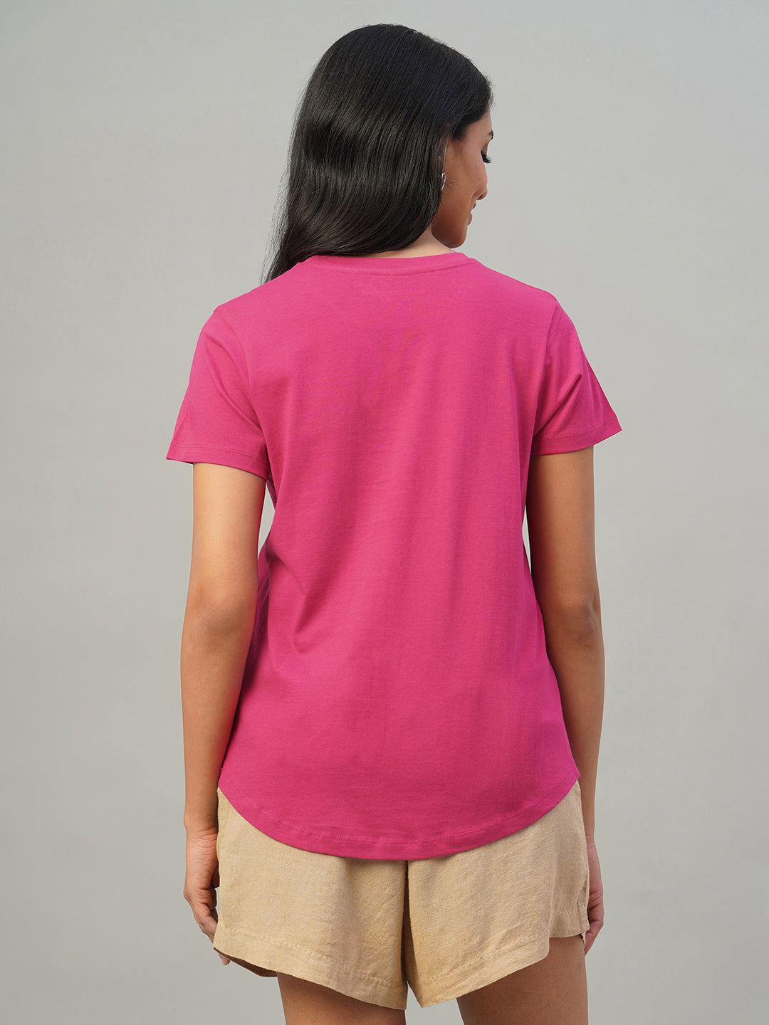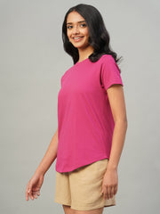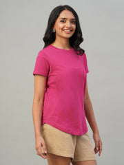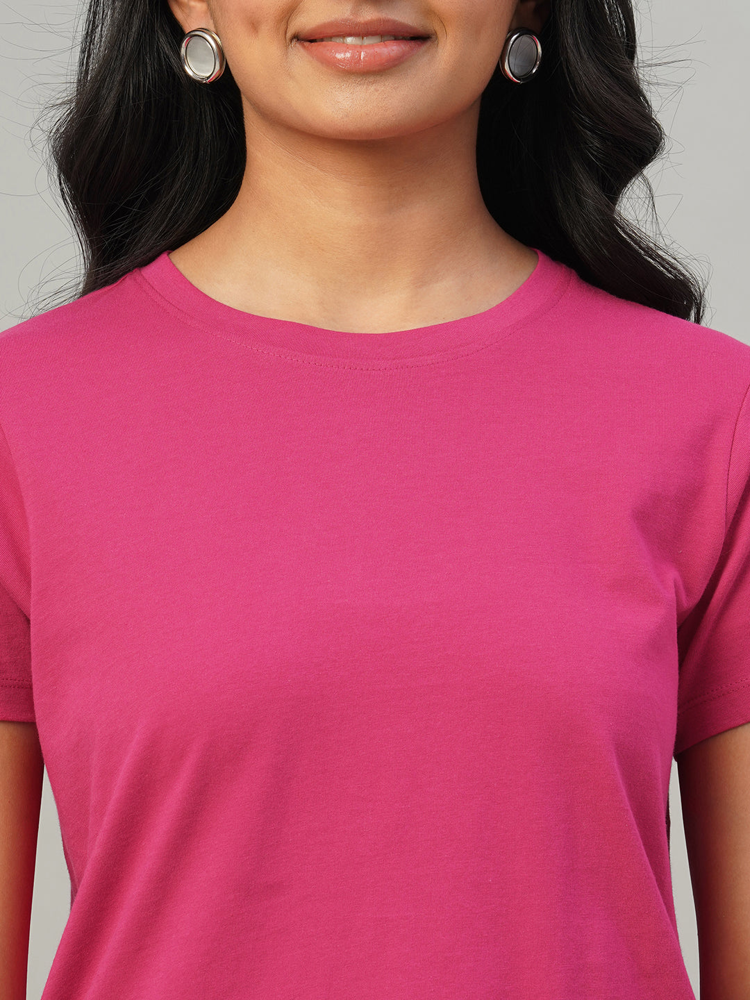 Women's Pink 100% Cotton Slim Fit Tshirt