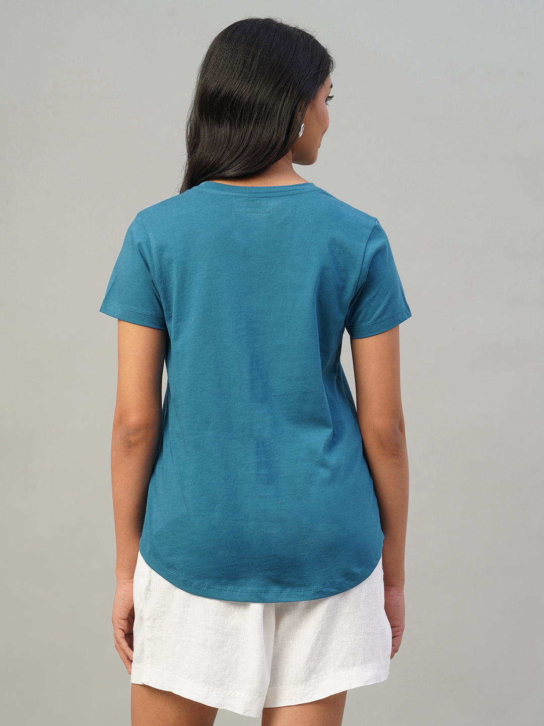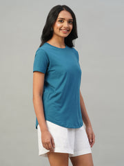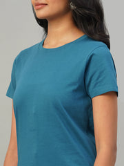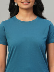 Women's Teal Blue 100% Cotton Slim Fit Tshirt