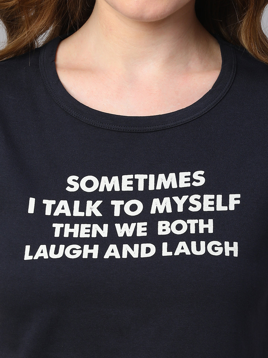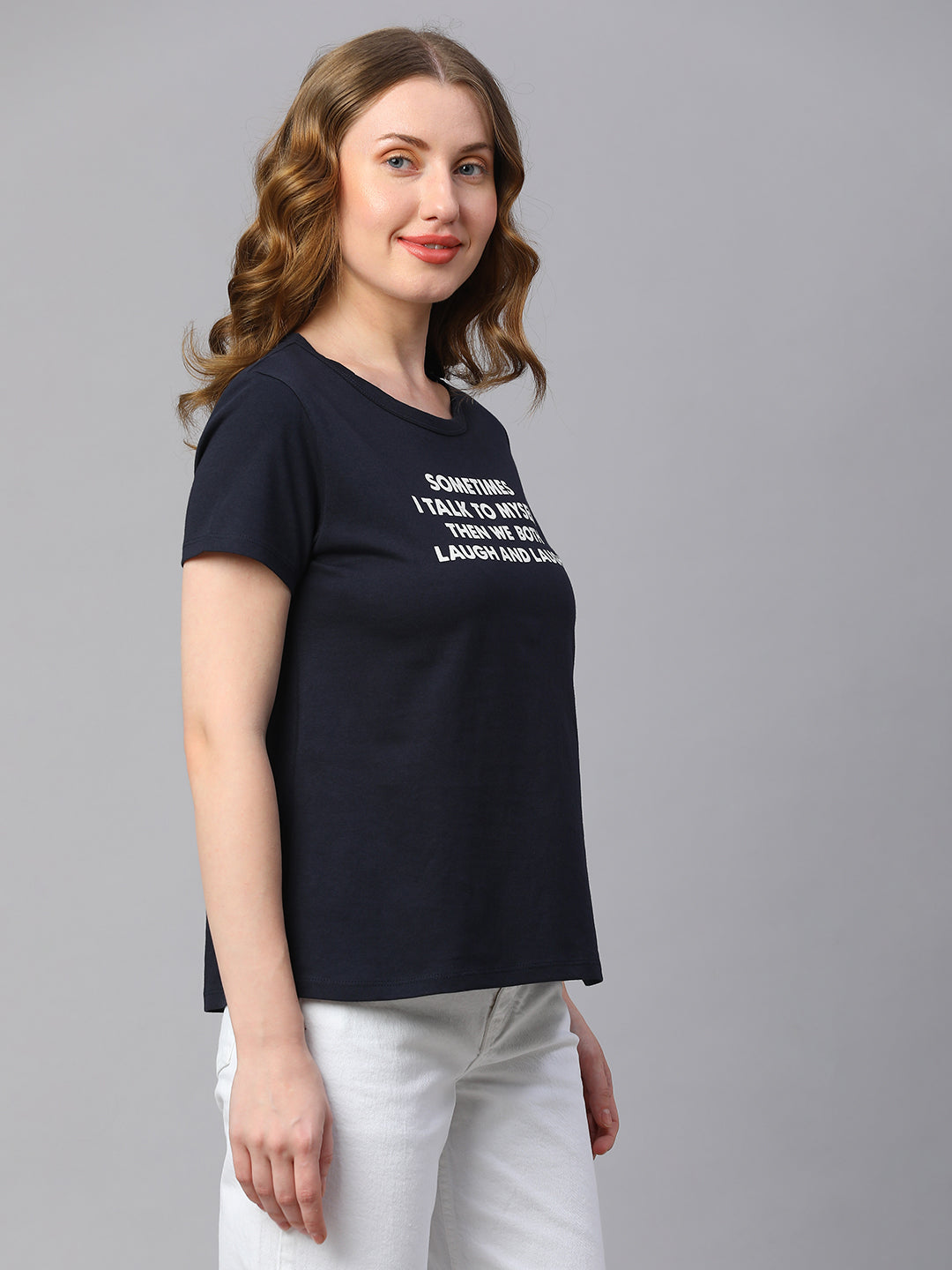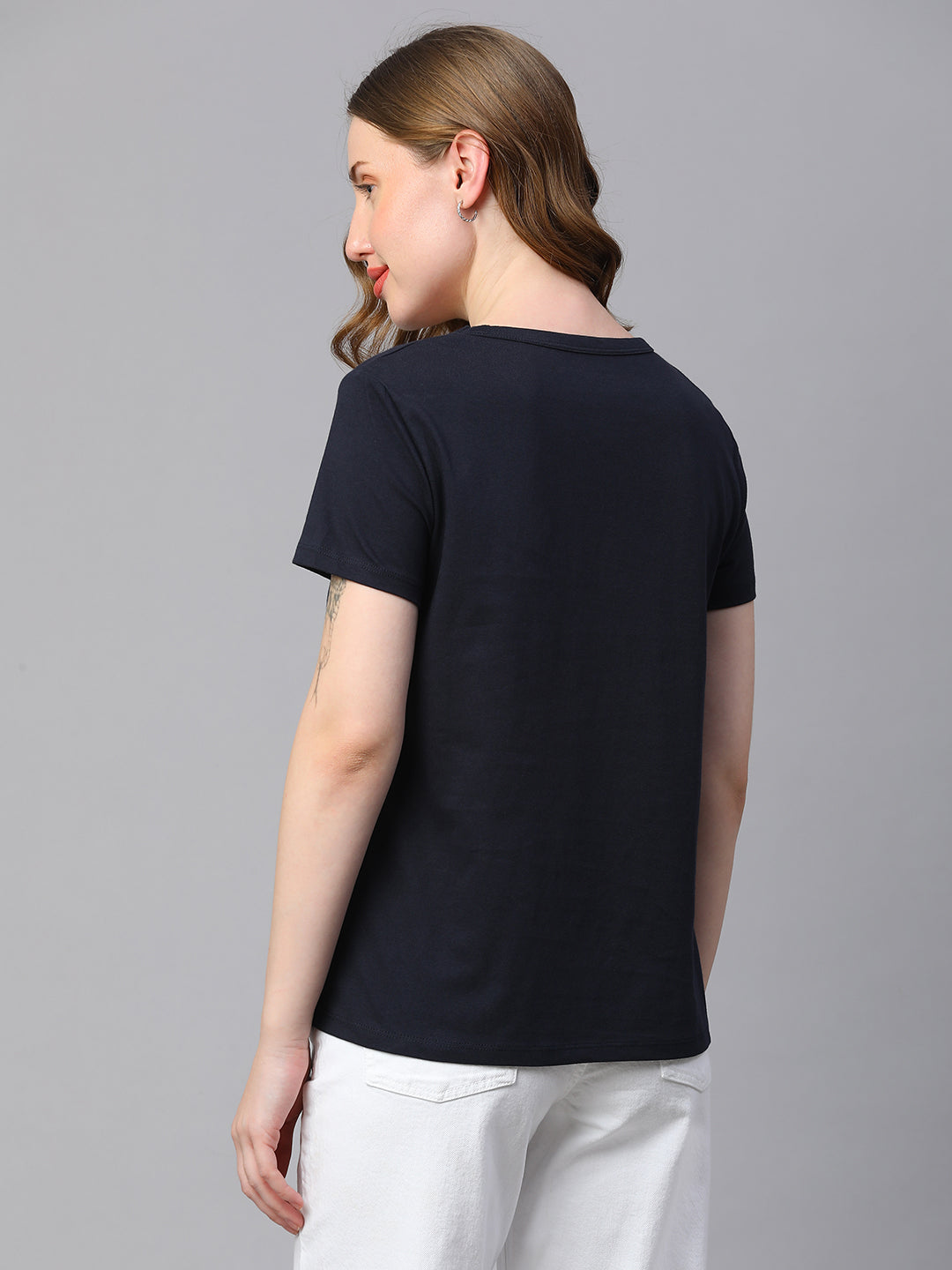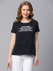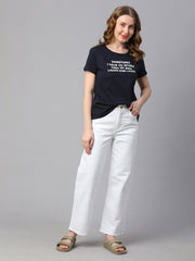 Women's Navy Cotton Regular Fit Tshirt