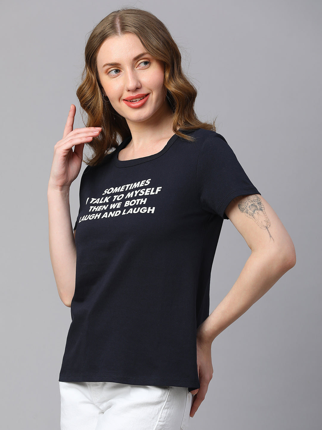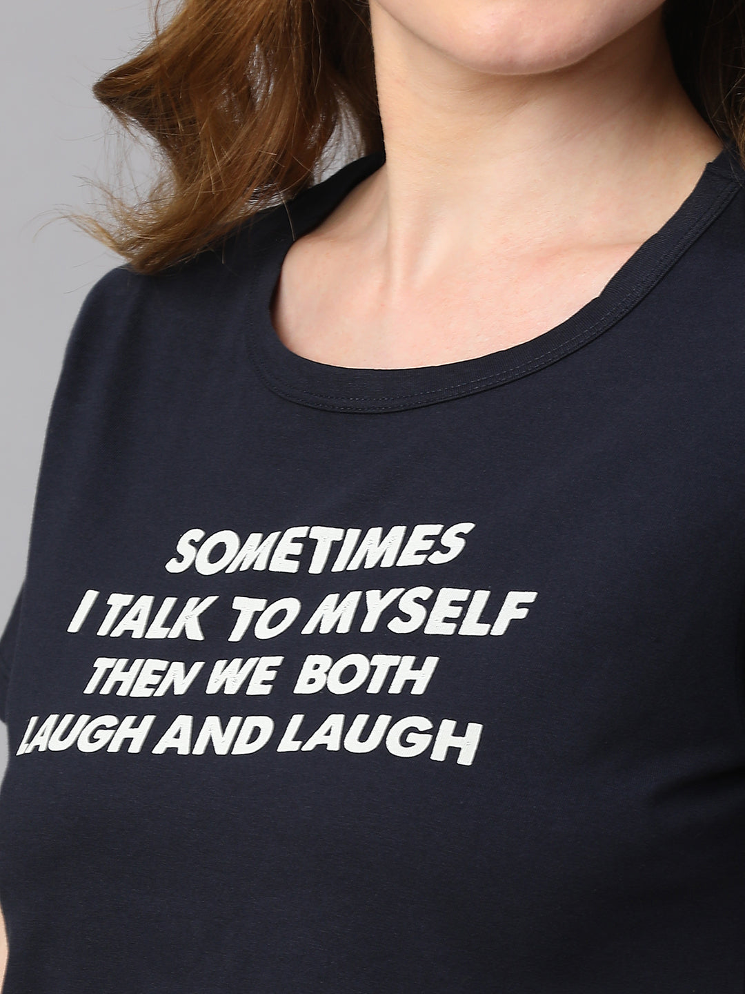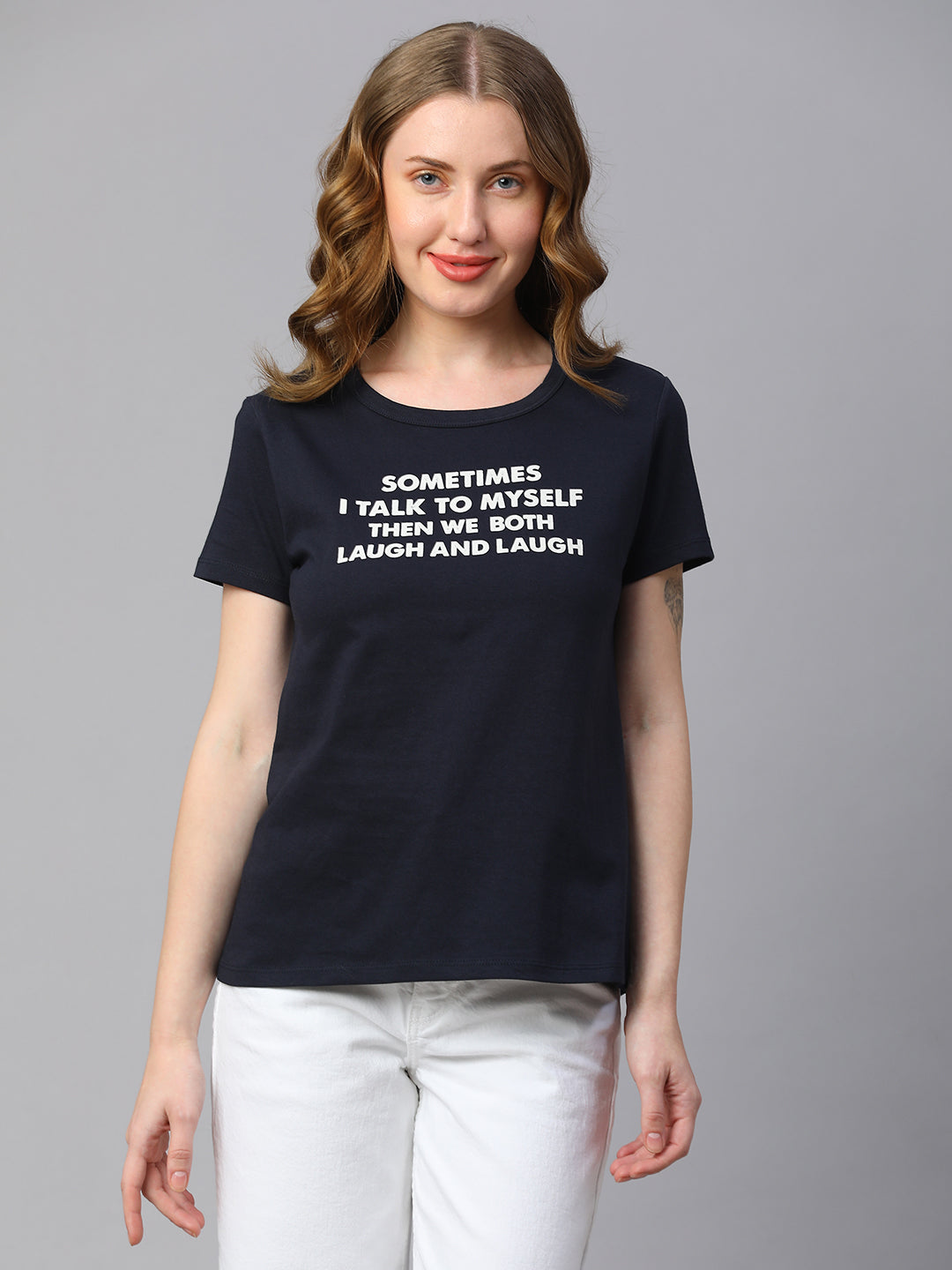 Women's Navy Cotton Regular Fit Tshirt