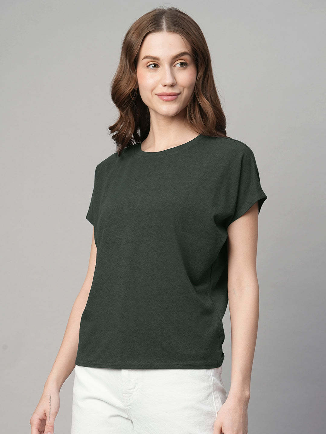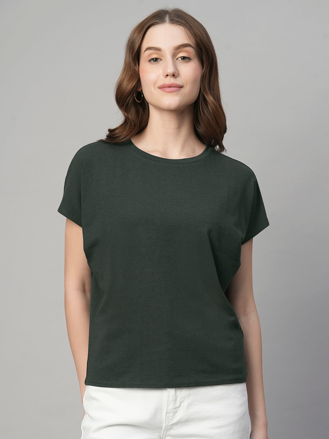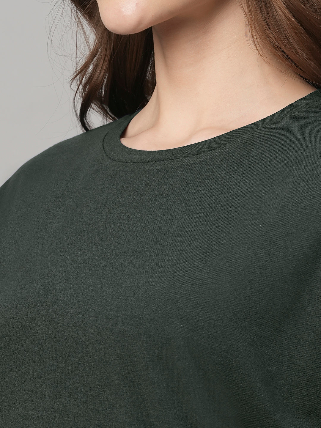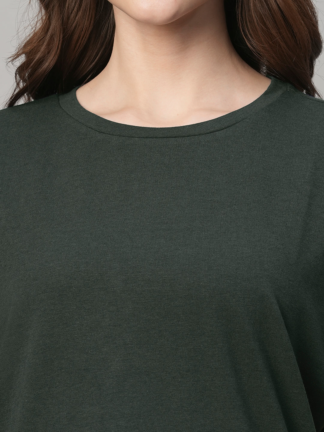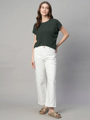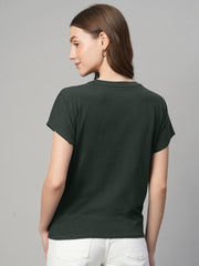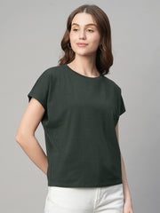 Women's Olive Cotton Bamboo Elastane Regular Fit Tshirt