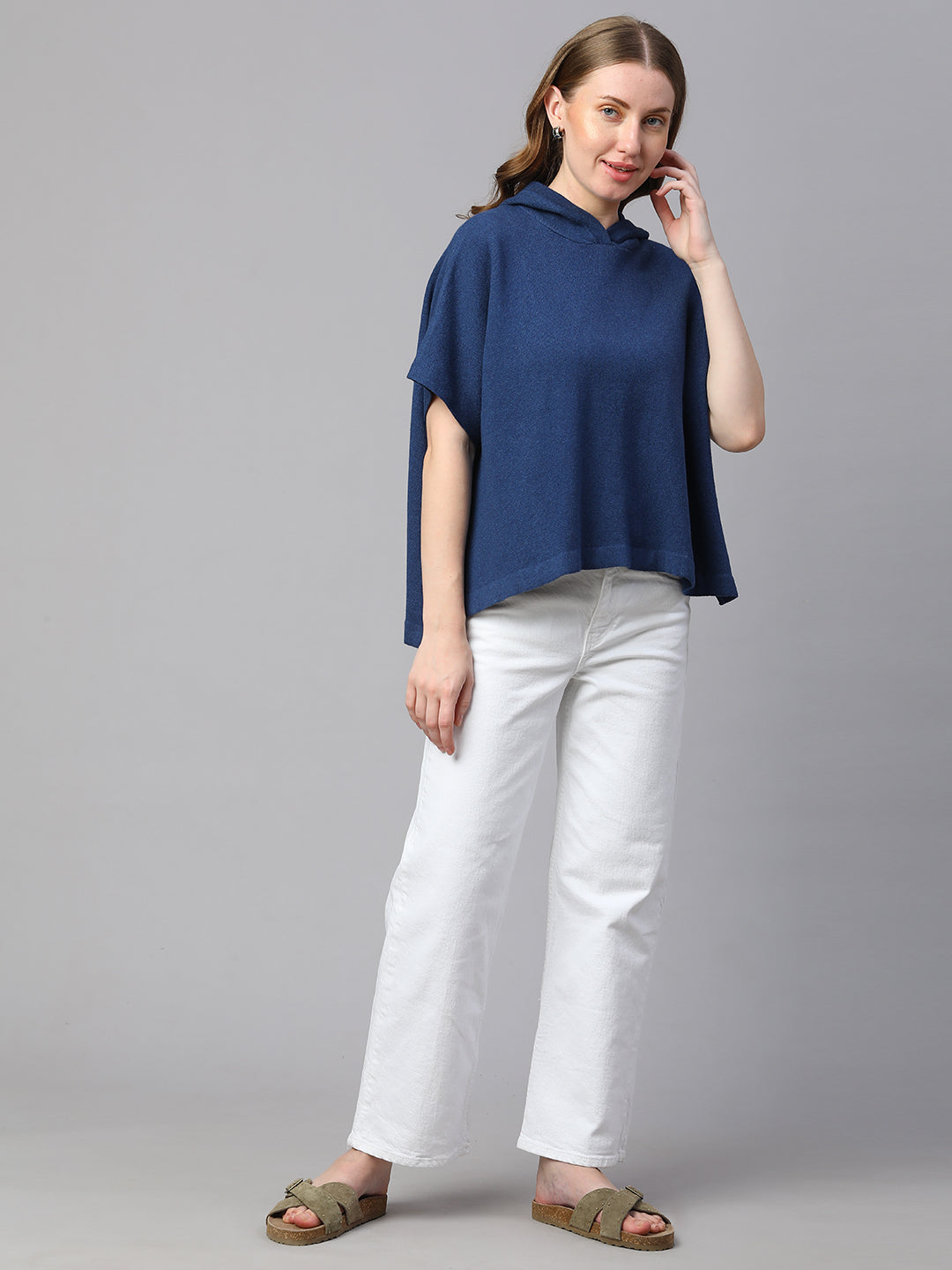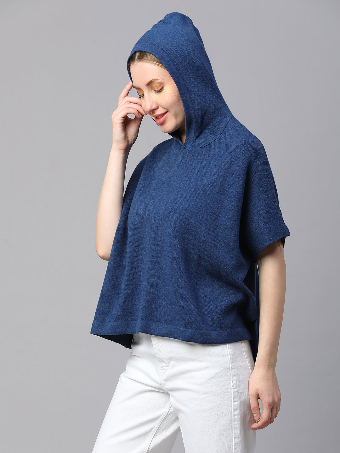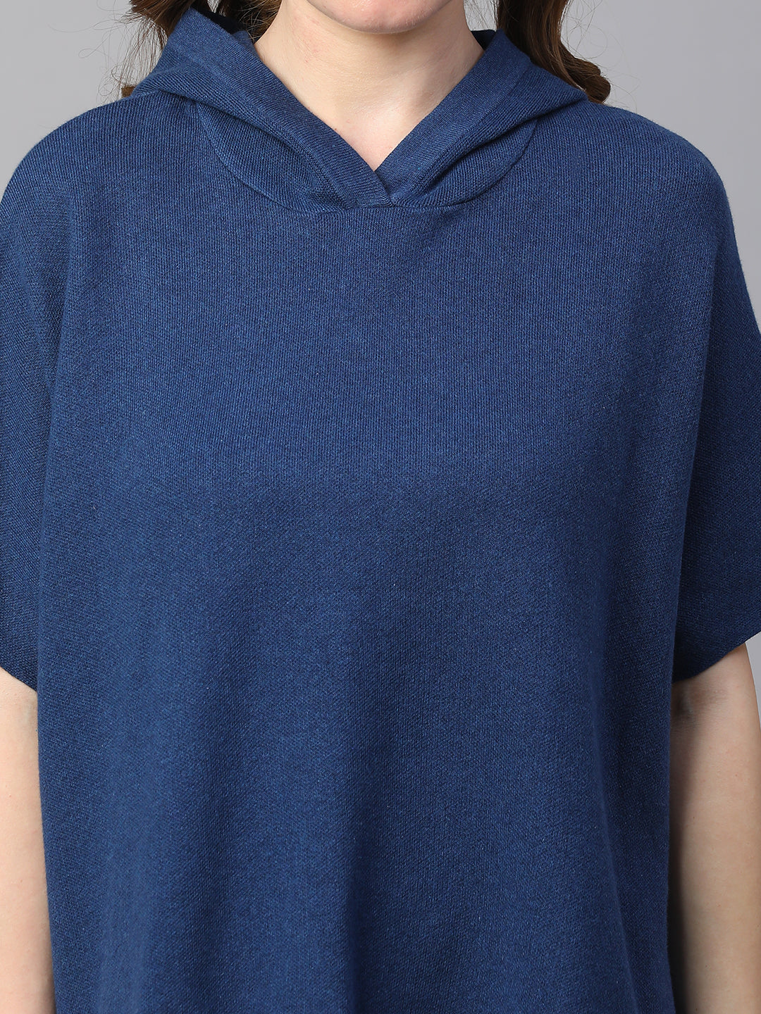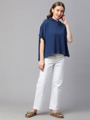 Women's Blue Melan Cotton Boxy Fit Tshirt
