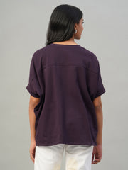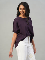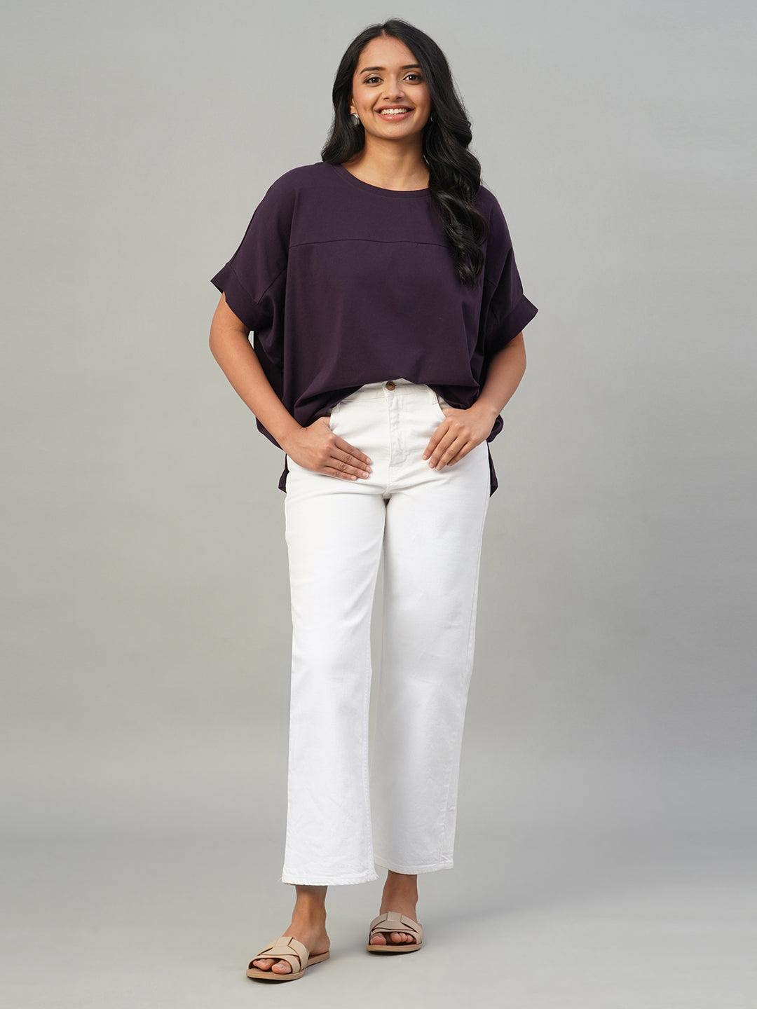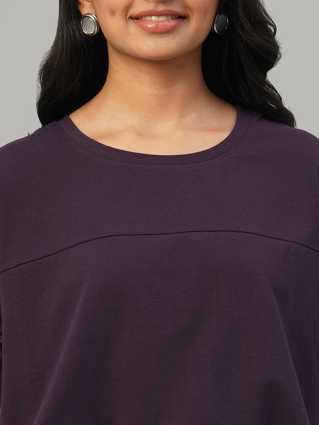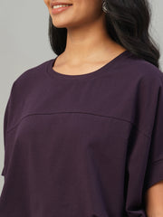 Women's Purple Cotton Elastane Loose Fit Tshirt