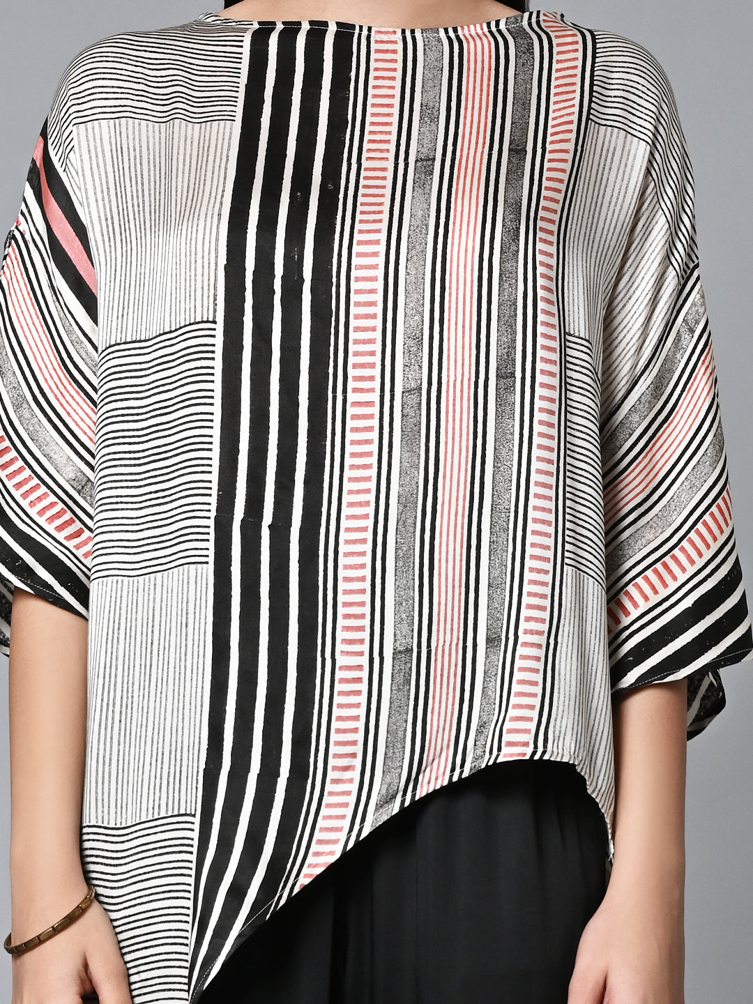 Women's Hand Block Printed Loose Fit Modal Offwhite Blouse
