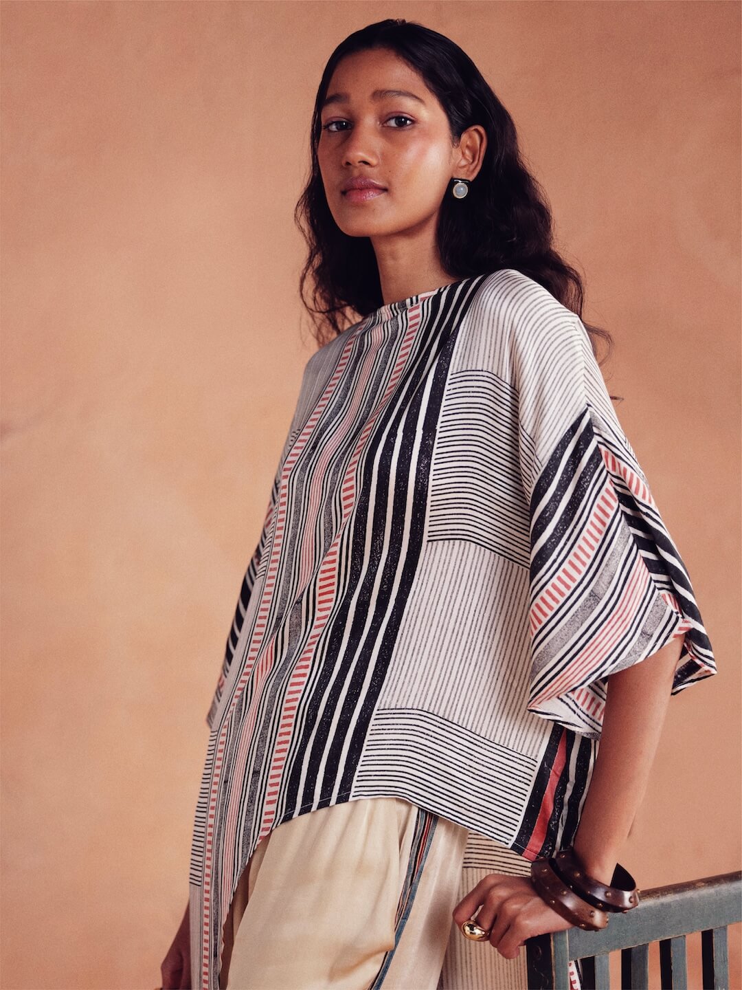 Our Rooted collection is a true blend of comfort and heritage. These loose-fit blouses are crafted from lightweight, viscose modal and celebrates traditional Indian craftsmanship of handblock printing in beautiful colours and patterns. Any subtle imperfections in the print highlight the handcraft's authenticity, adding to its charm and uniqueness.