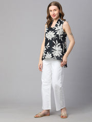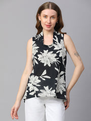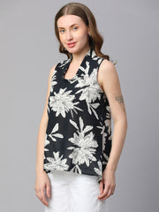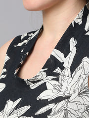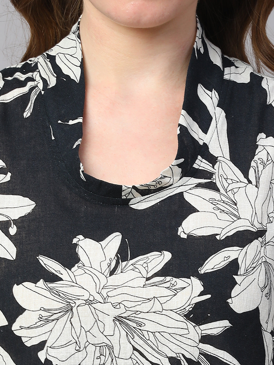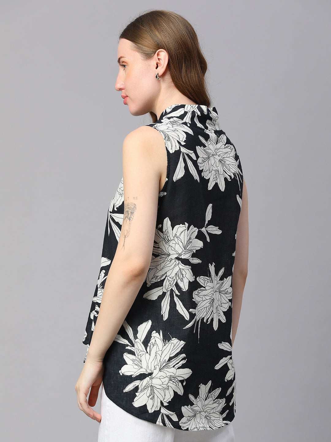 Women's Midnight Blue Cotton Flax Regular Fit Blouse