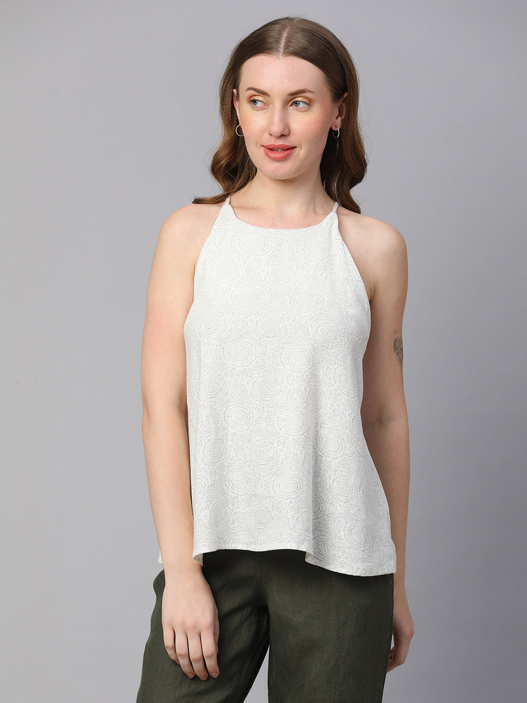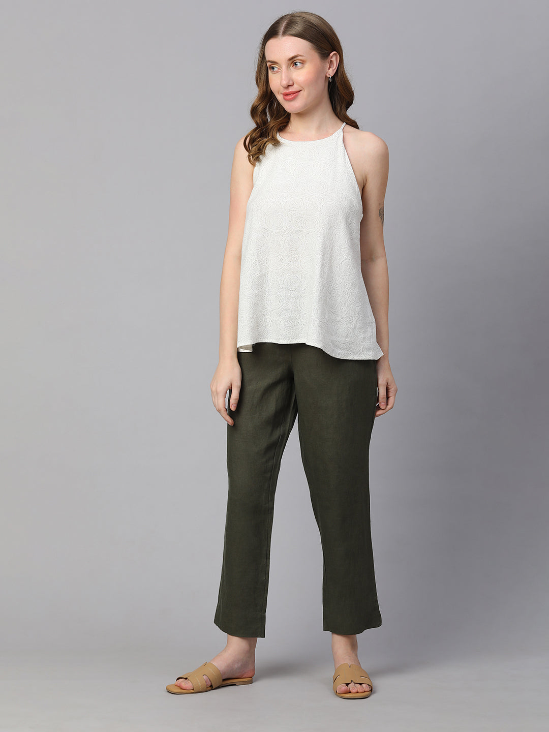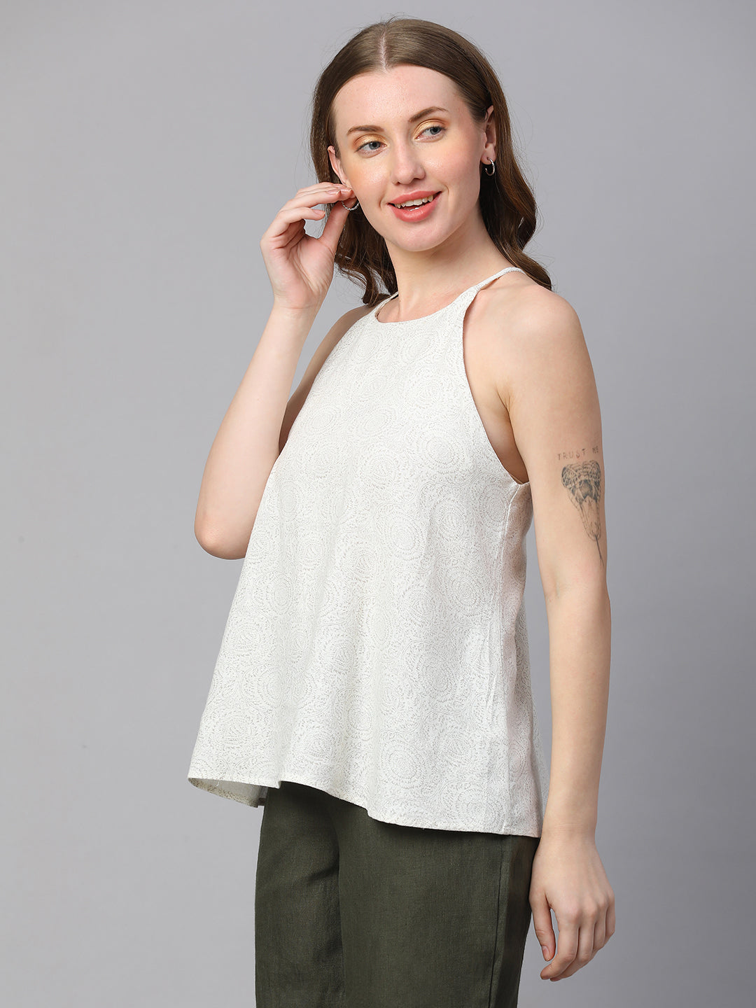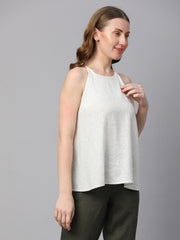 Women's Offwhite Linen Viscose Regular Fit Blouse