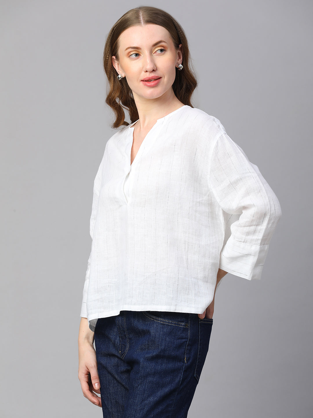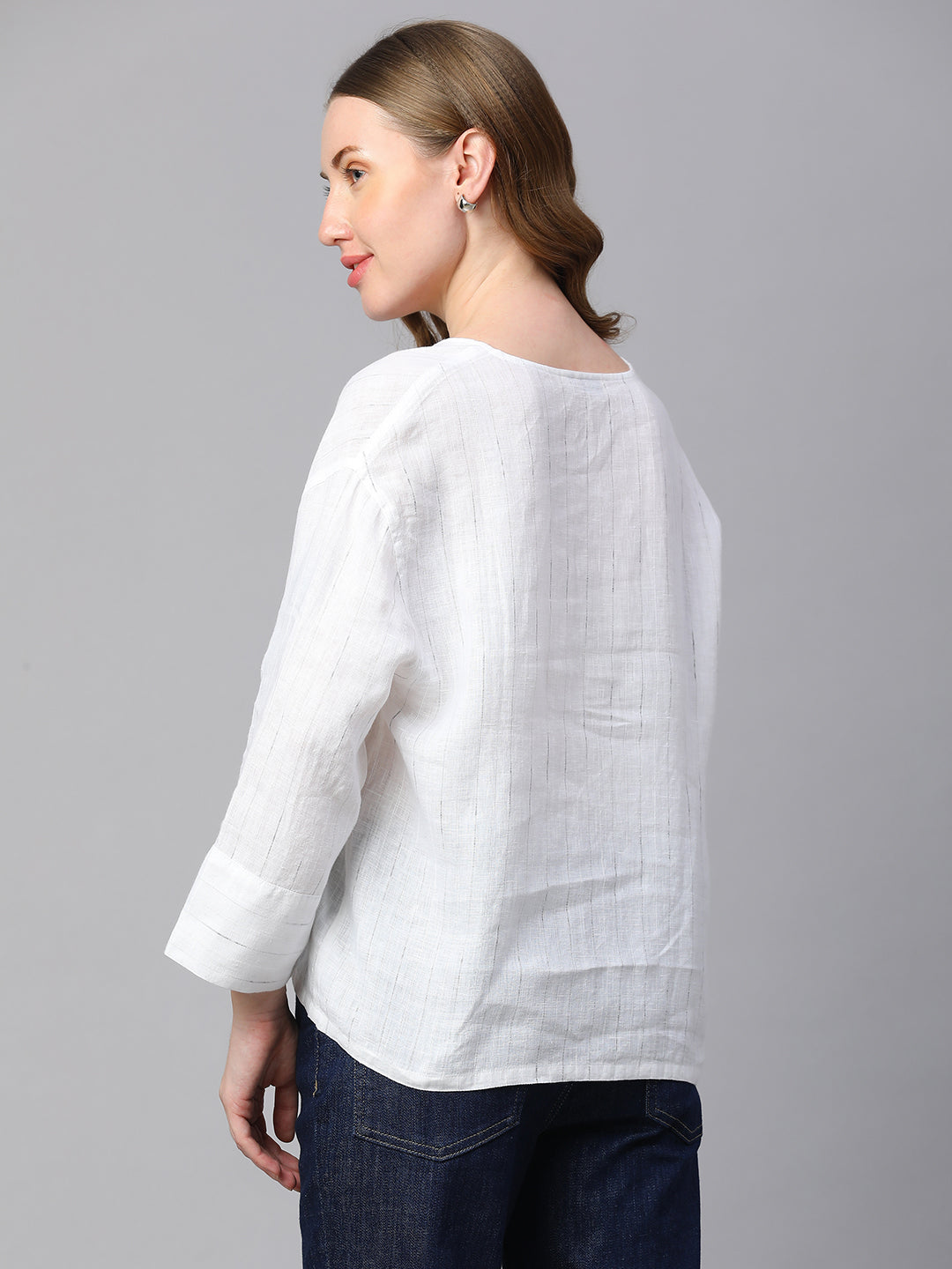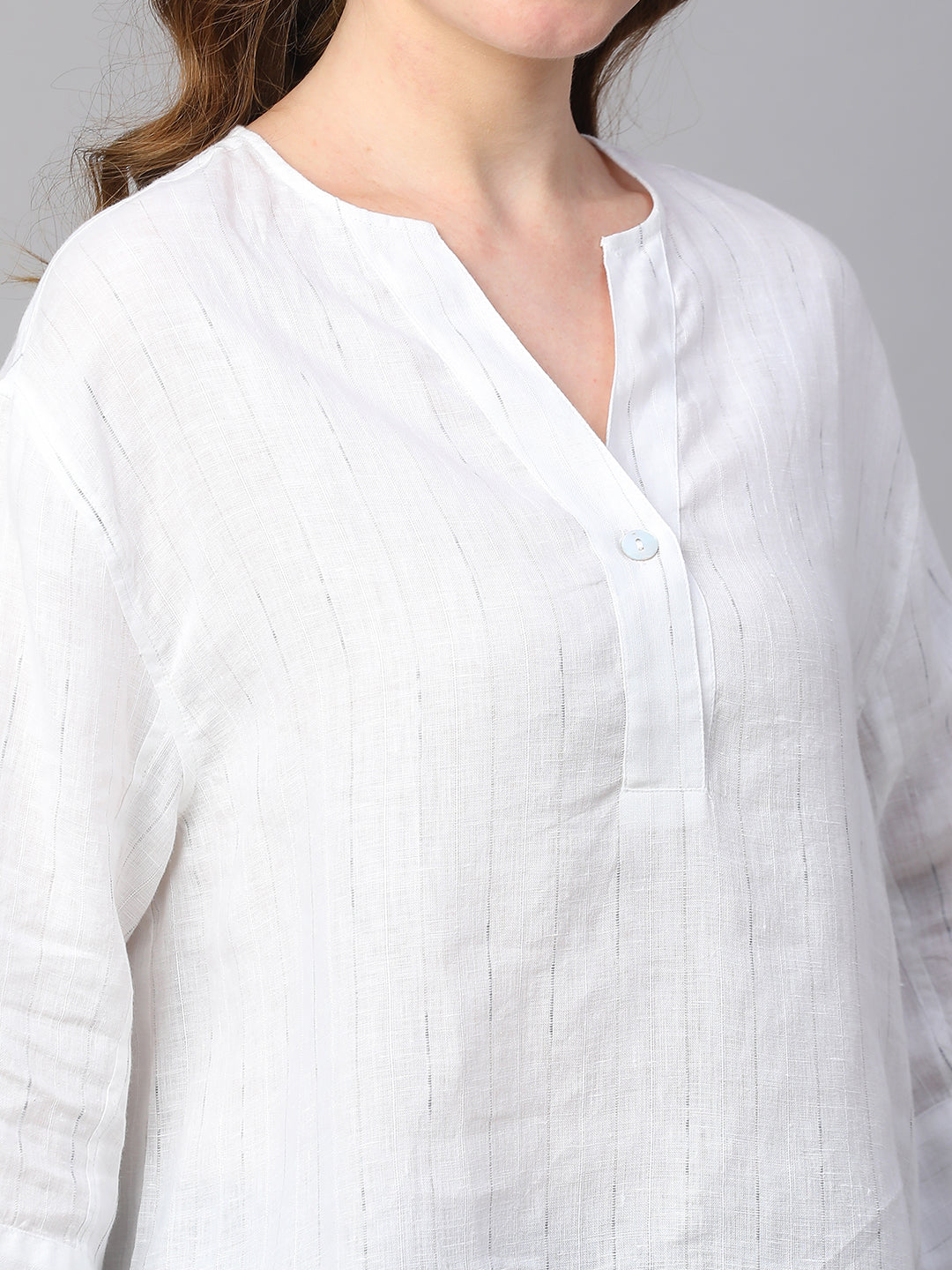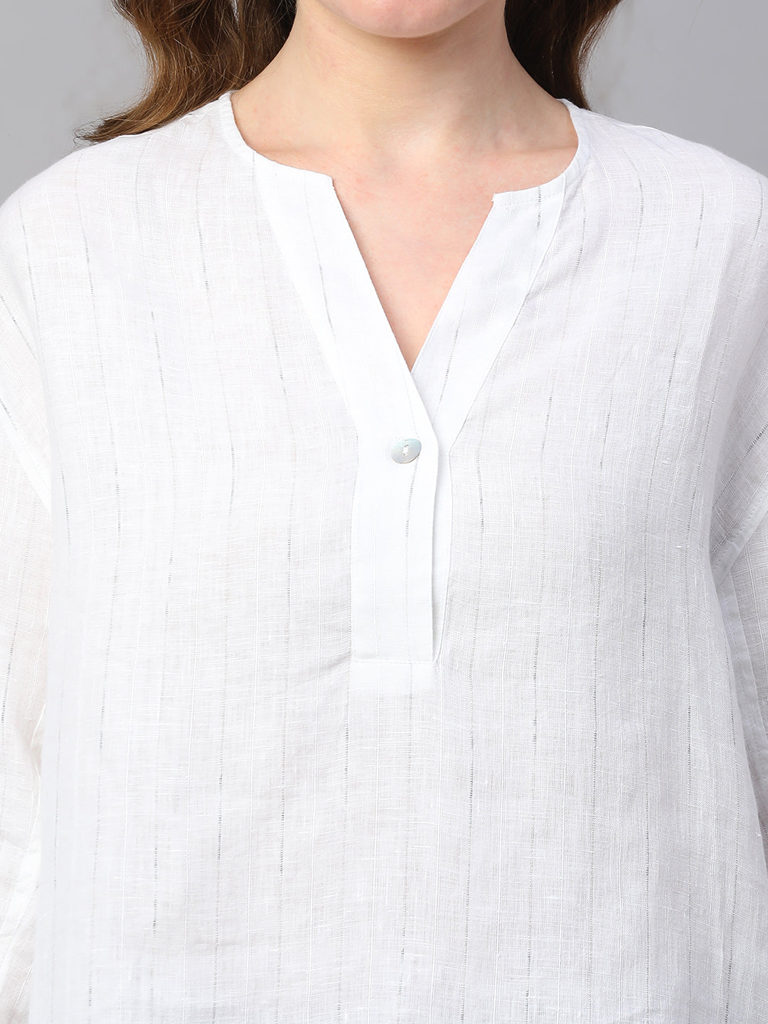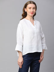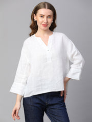 Women's White 100% Linen Boxy Fit Blouse