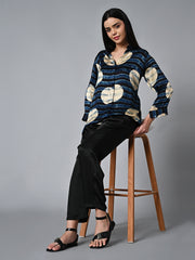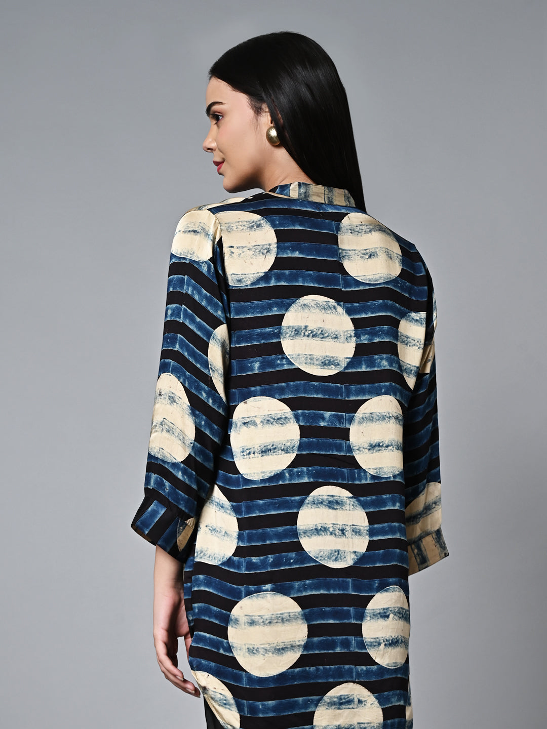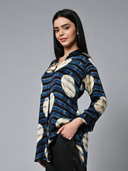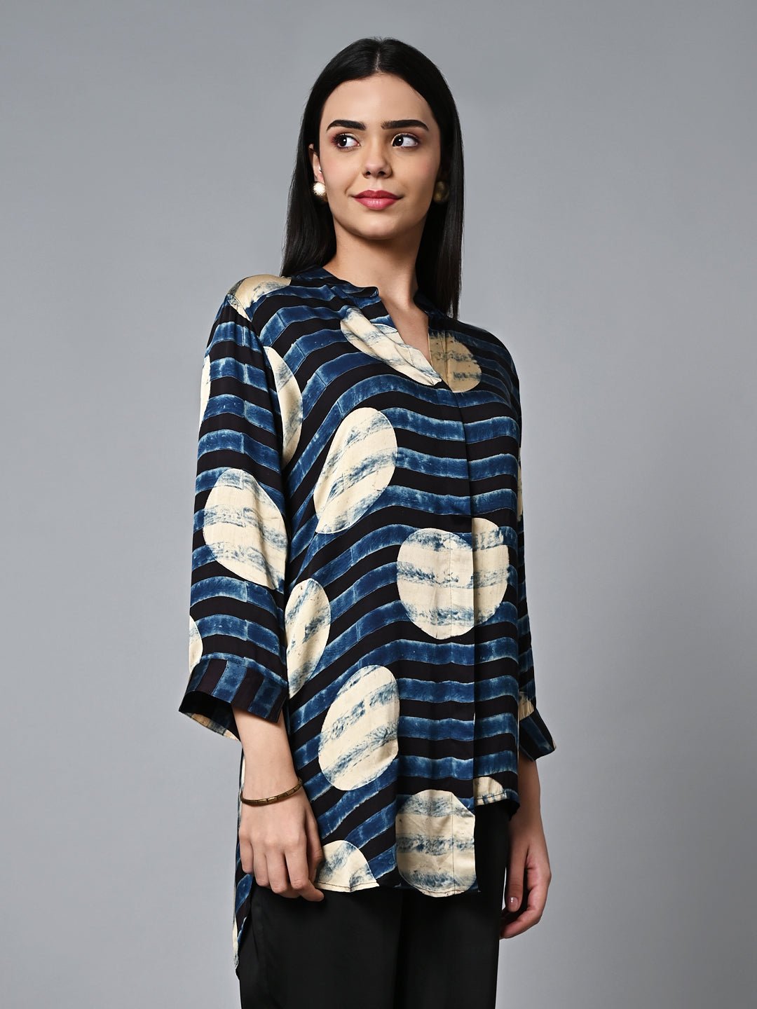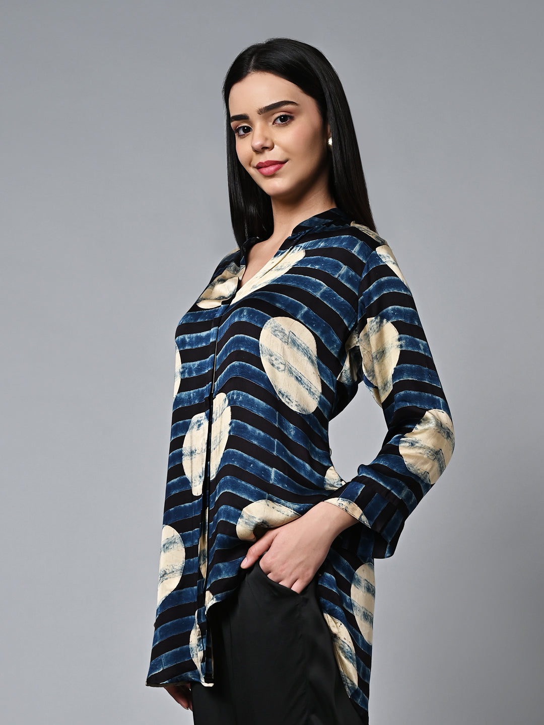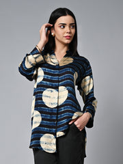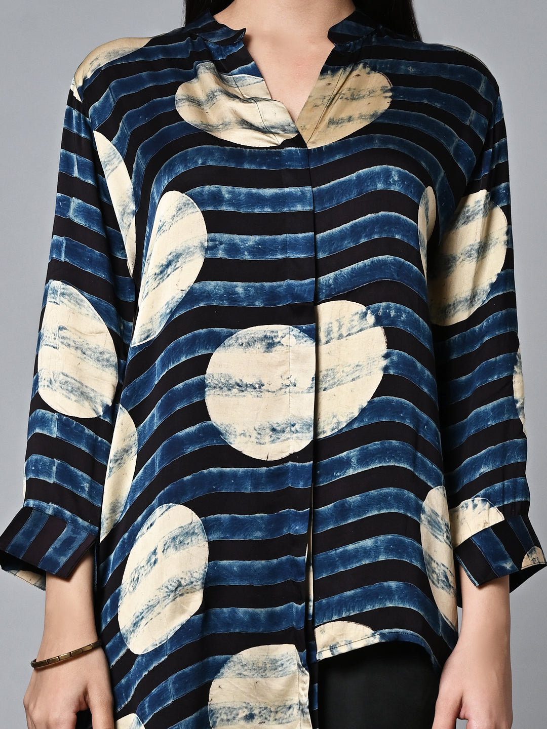 Women's Ajrak Hand Block Printed Loose Fit Modal Blue Blouse