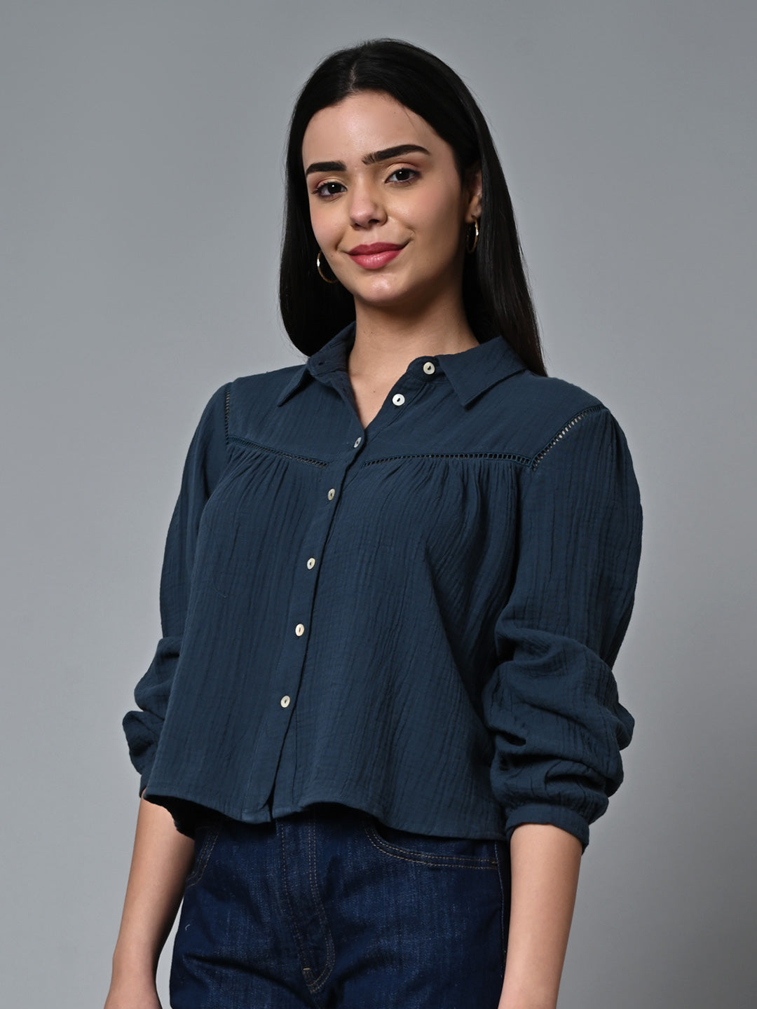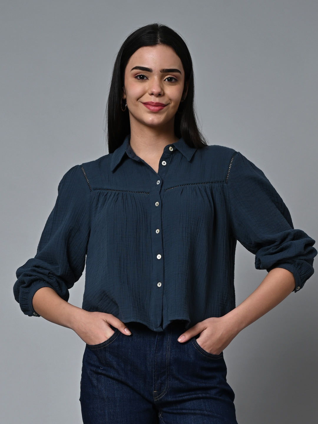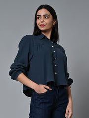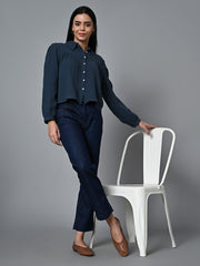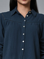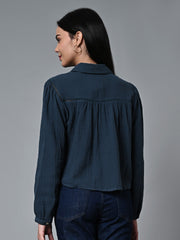 Women's Blue Cotton Regular Fit Blouse