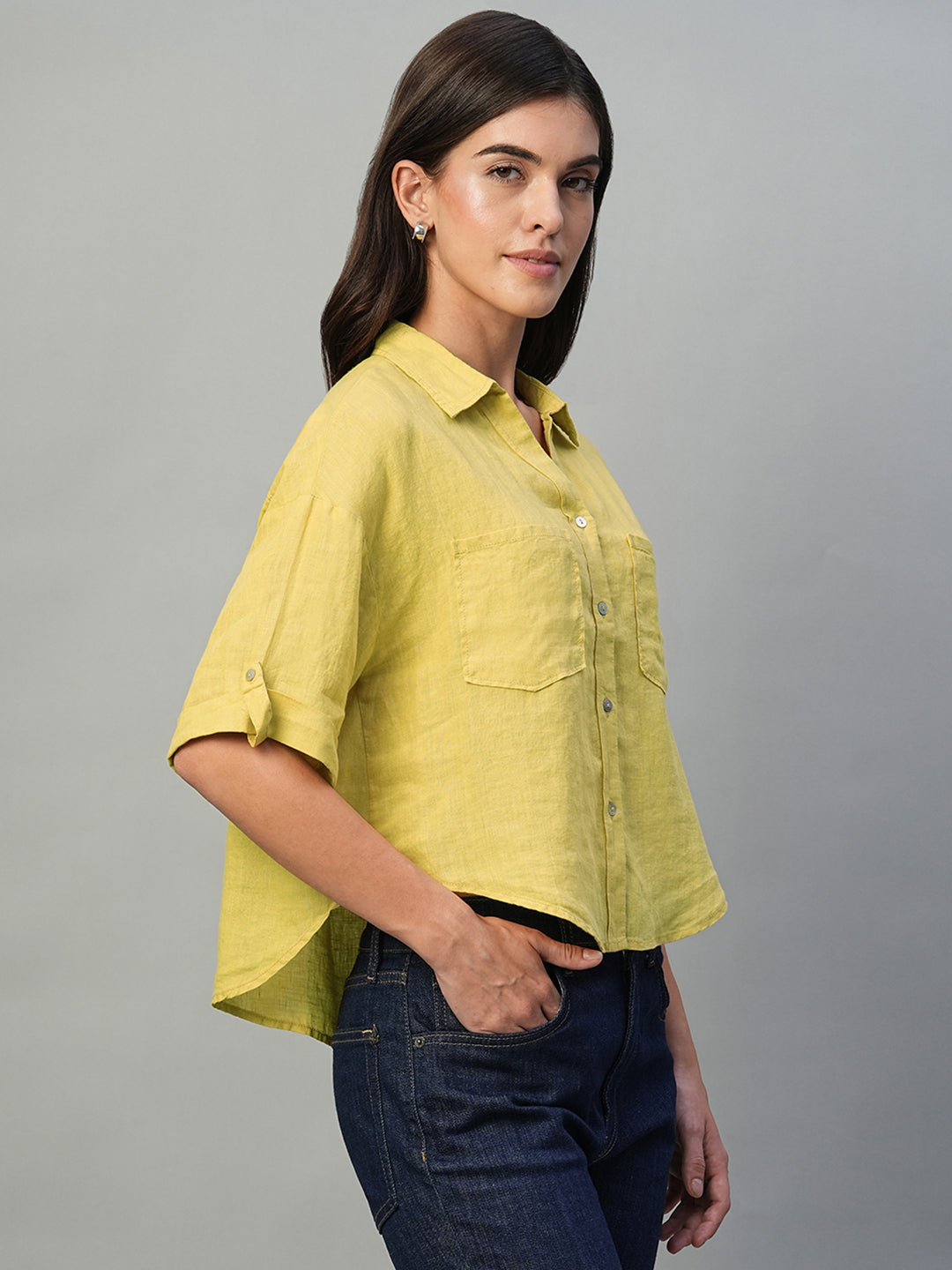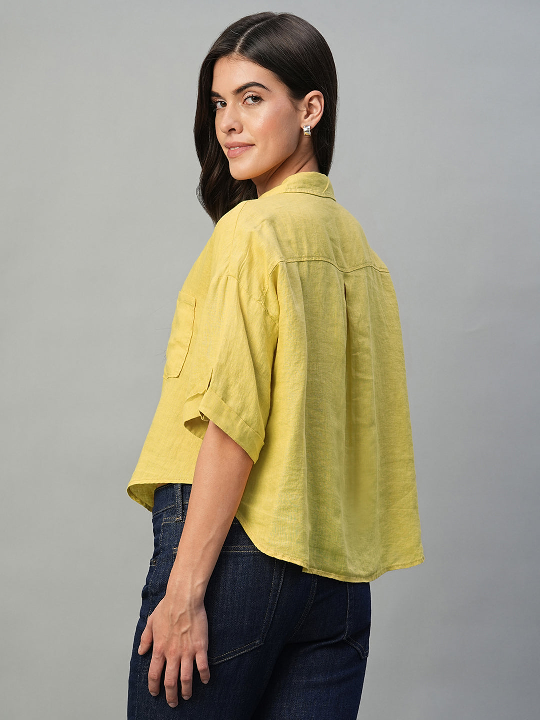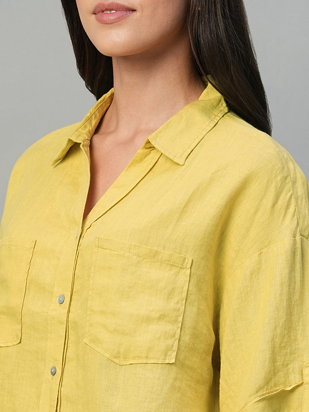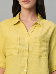 Women's Yellow 100% Linen Boxy Fit Blouse