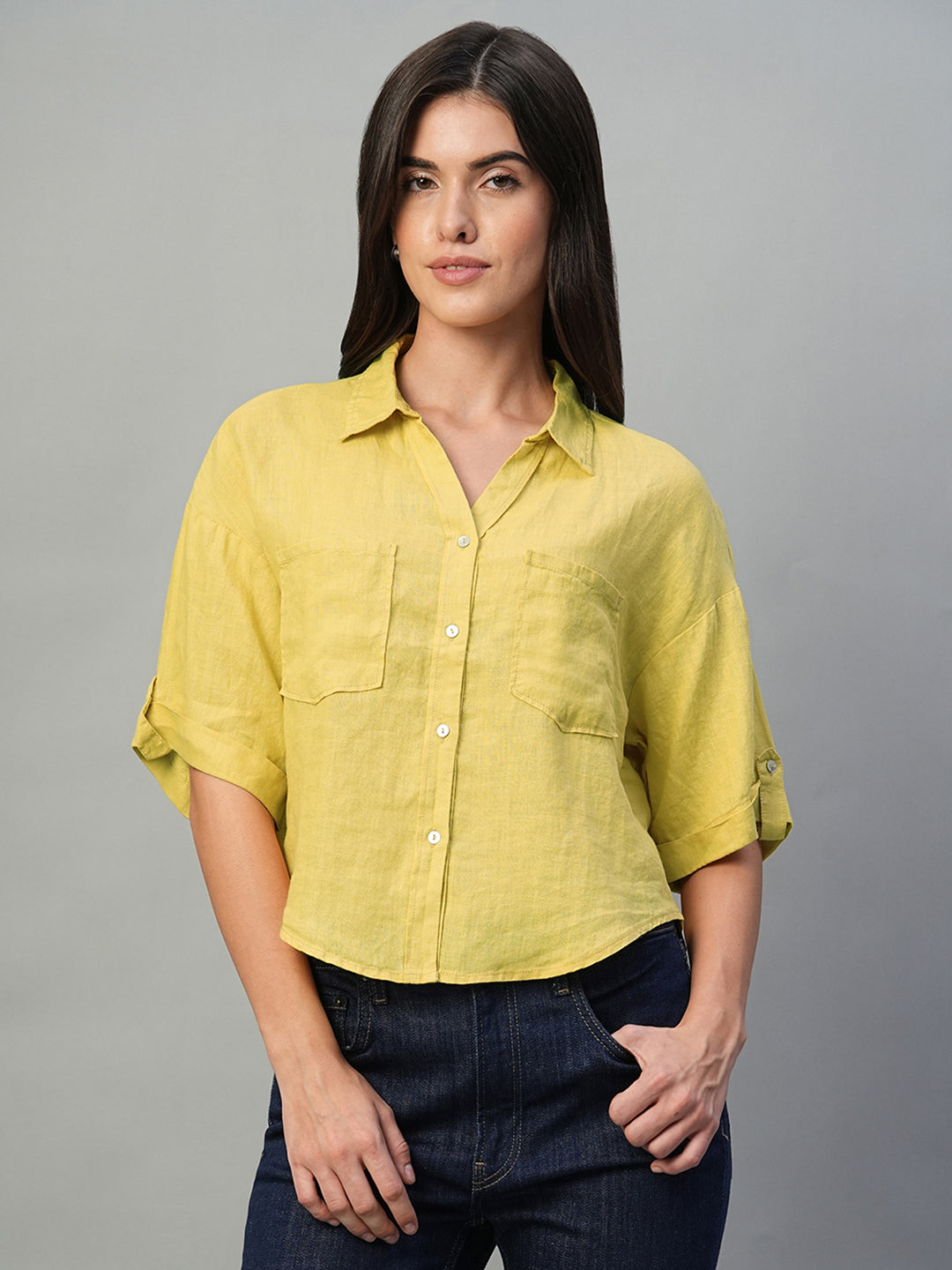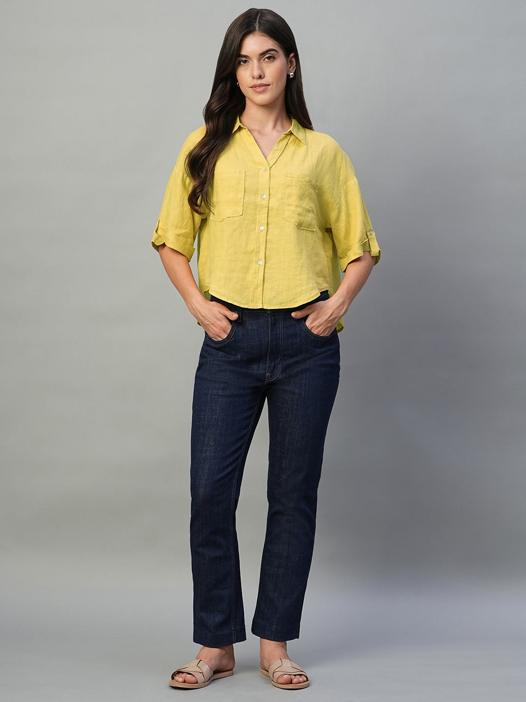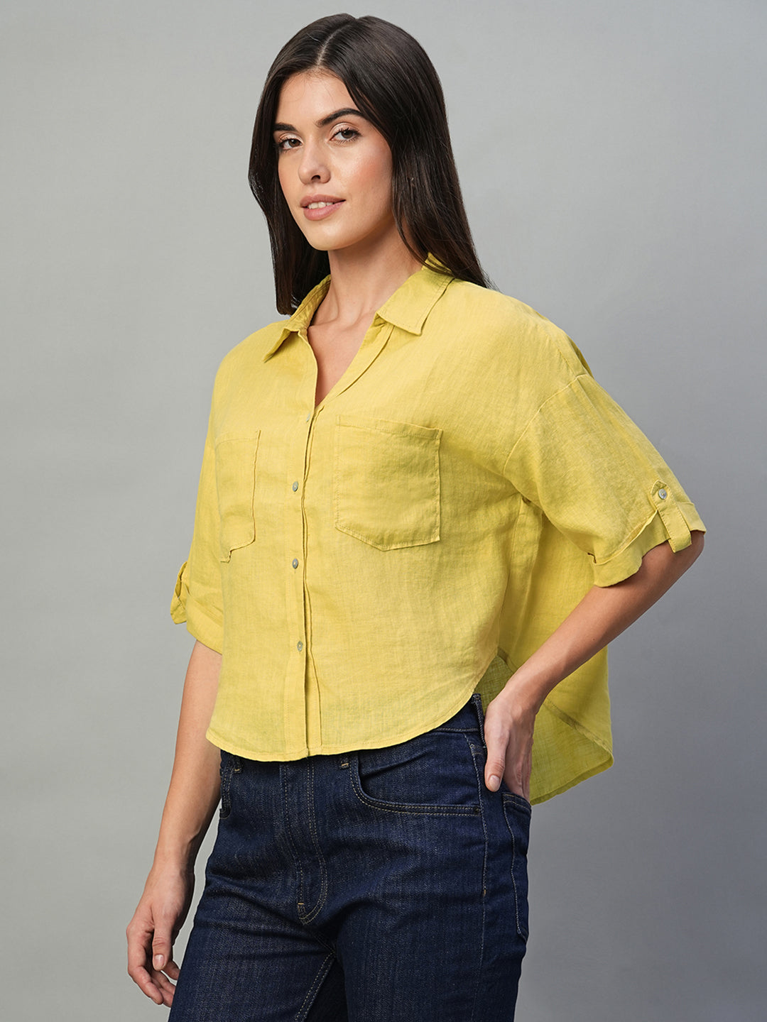 Women's Yellow 100% Linen Boxy Fit Blouse