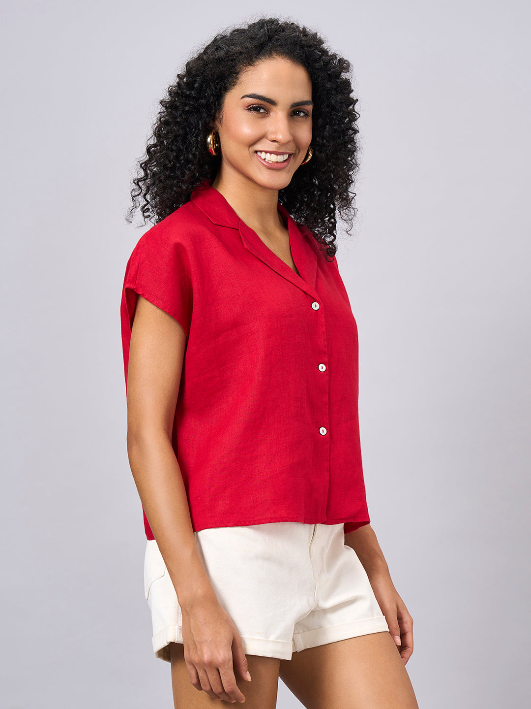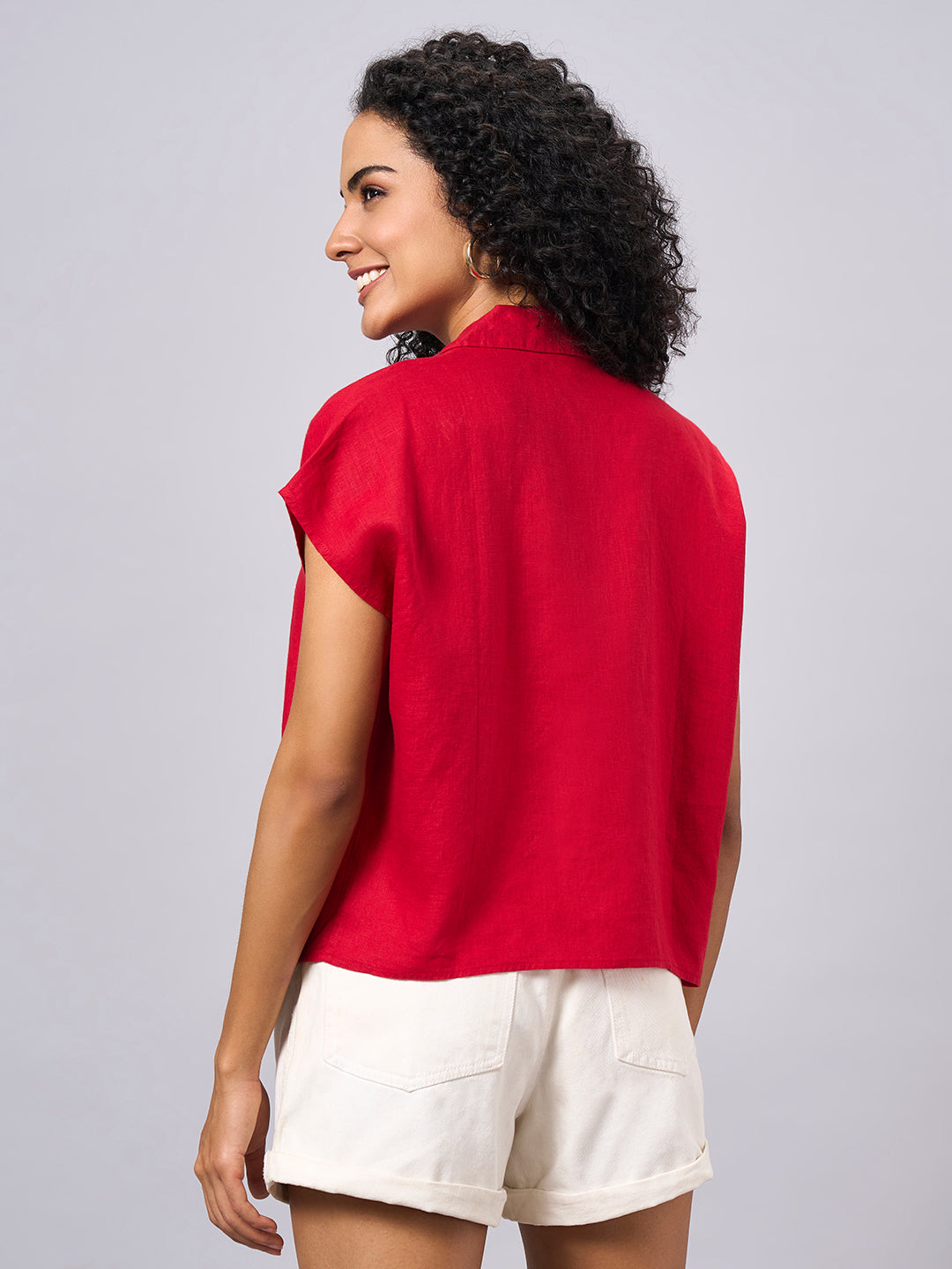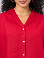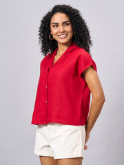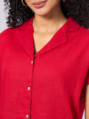 Women's Red 100% Linen Regular Fit Blouse