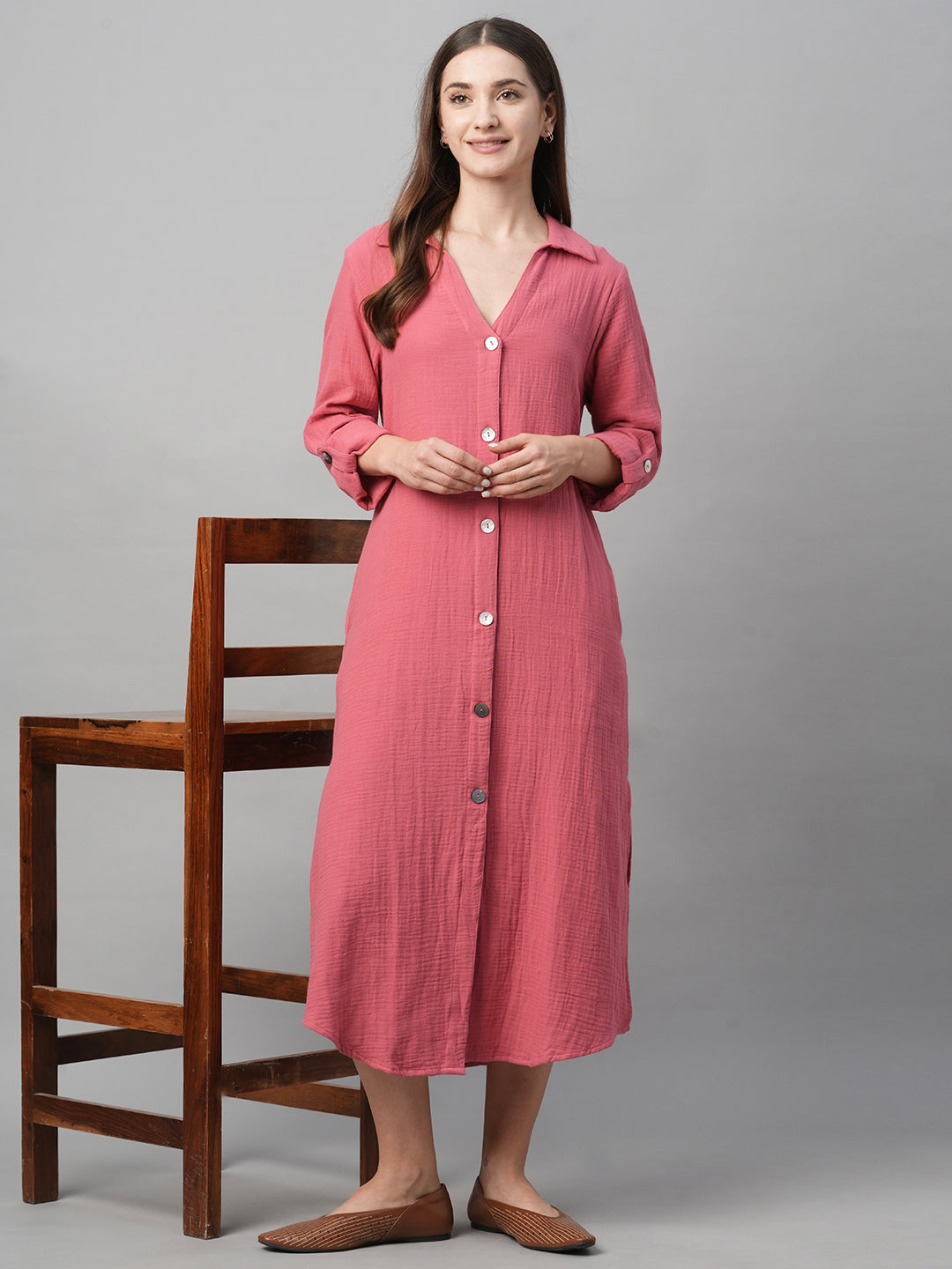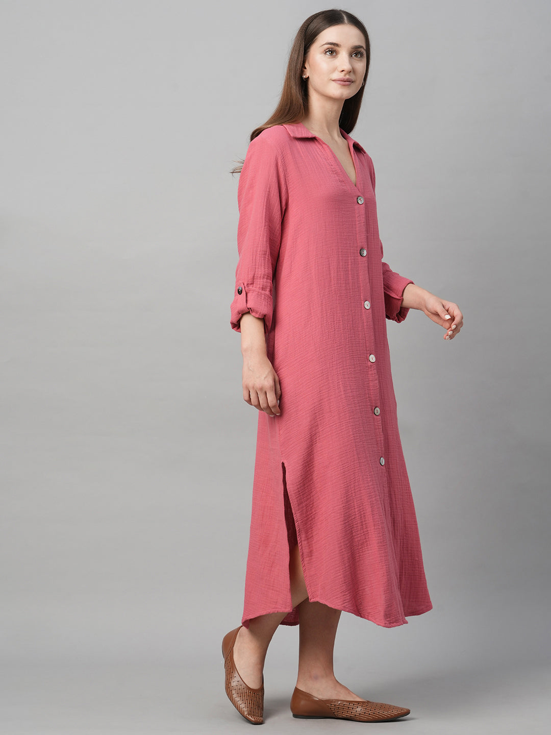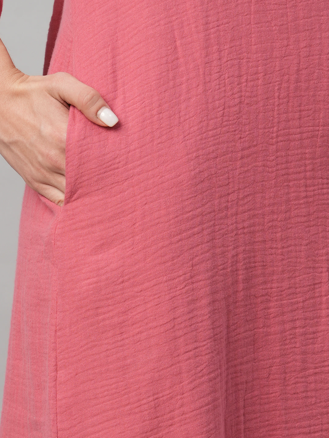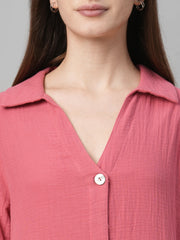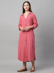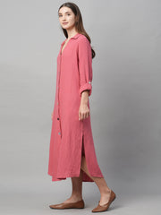 Women's Pink Cotton Boxy Fit Dress